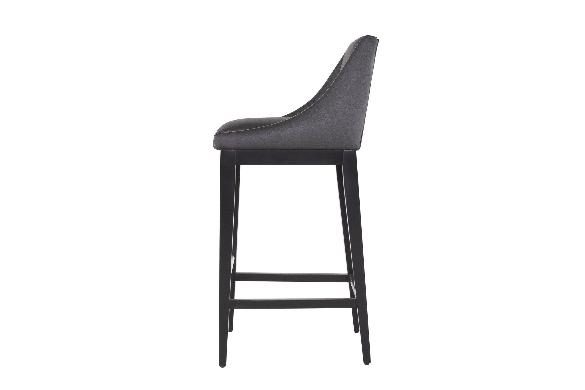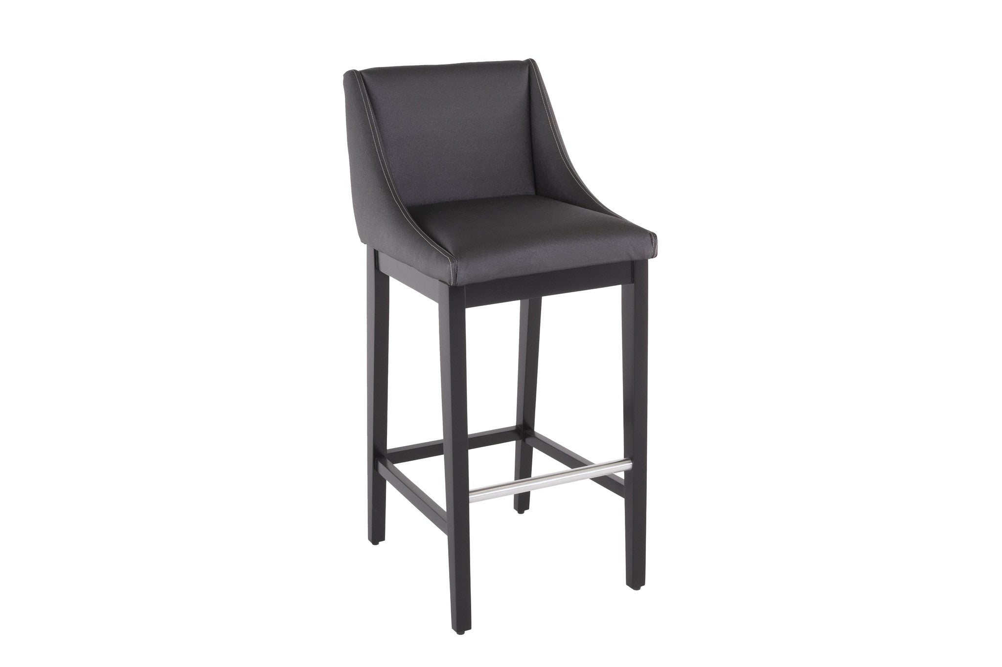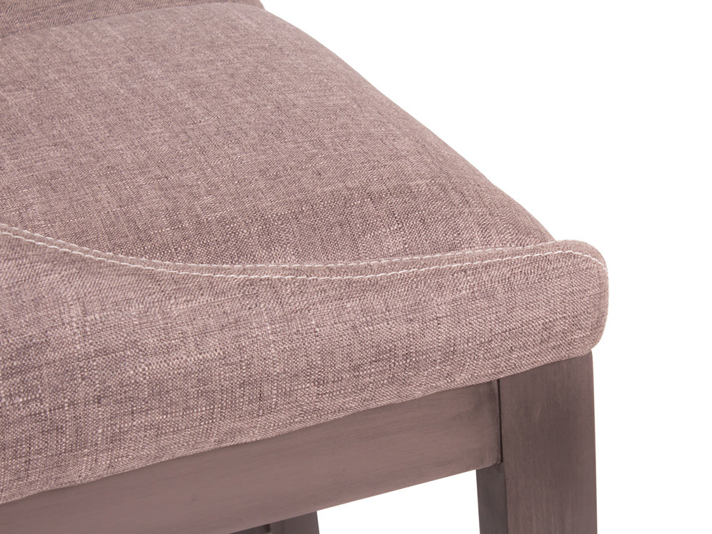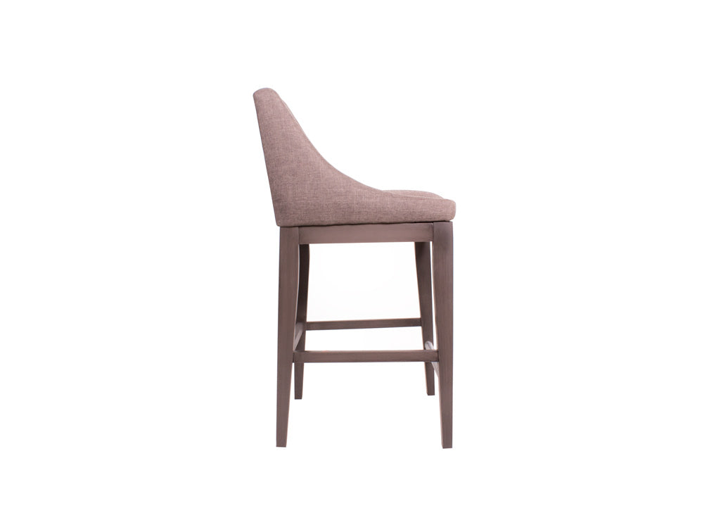 Encontrará este banco alto con la base en color nogal, y el tapiz con la opción en color gris oscuro o beige.