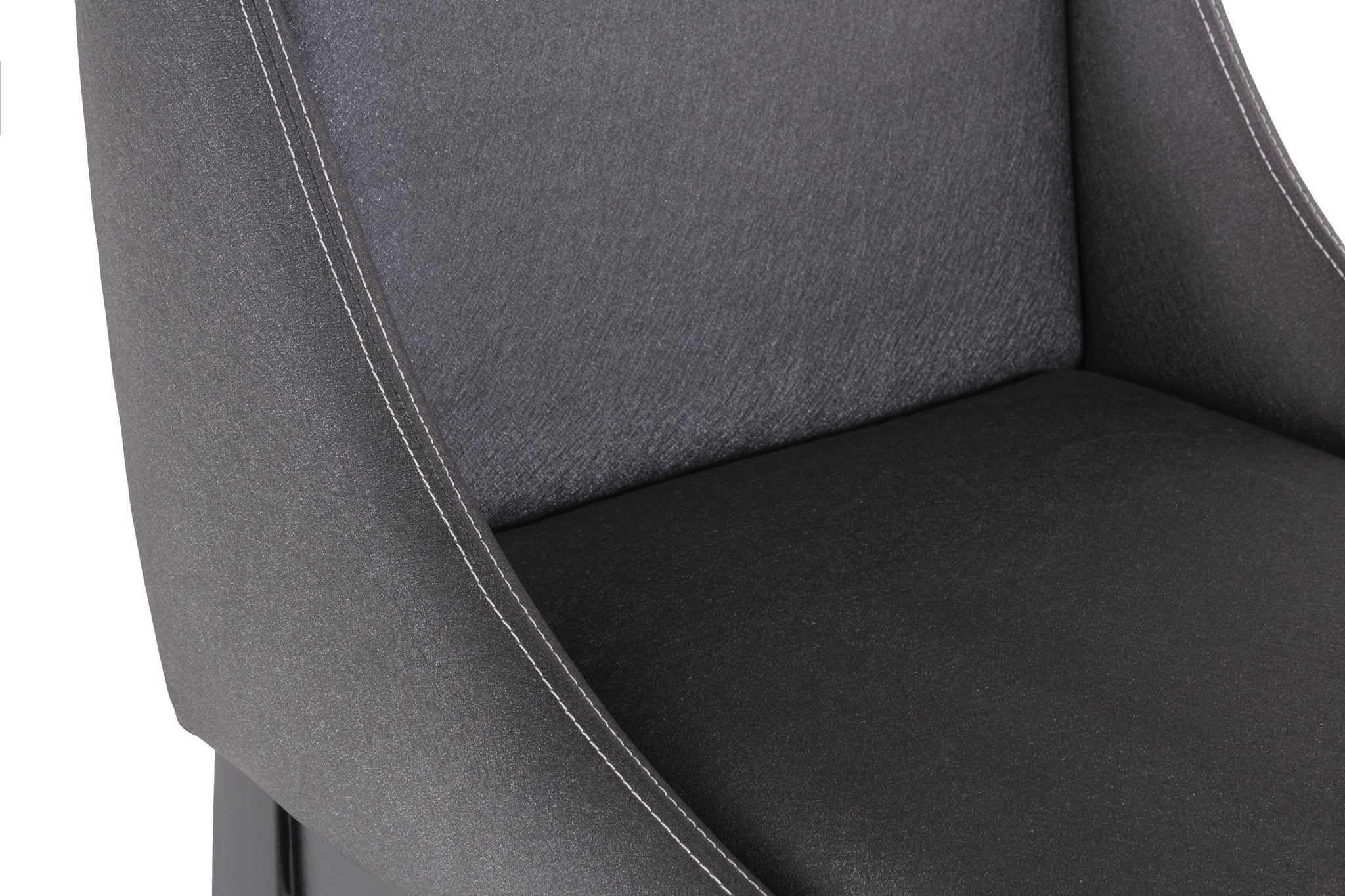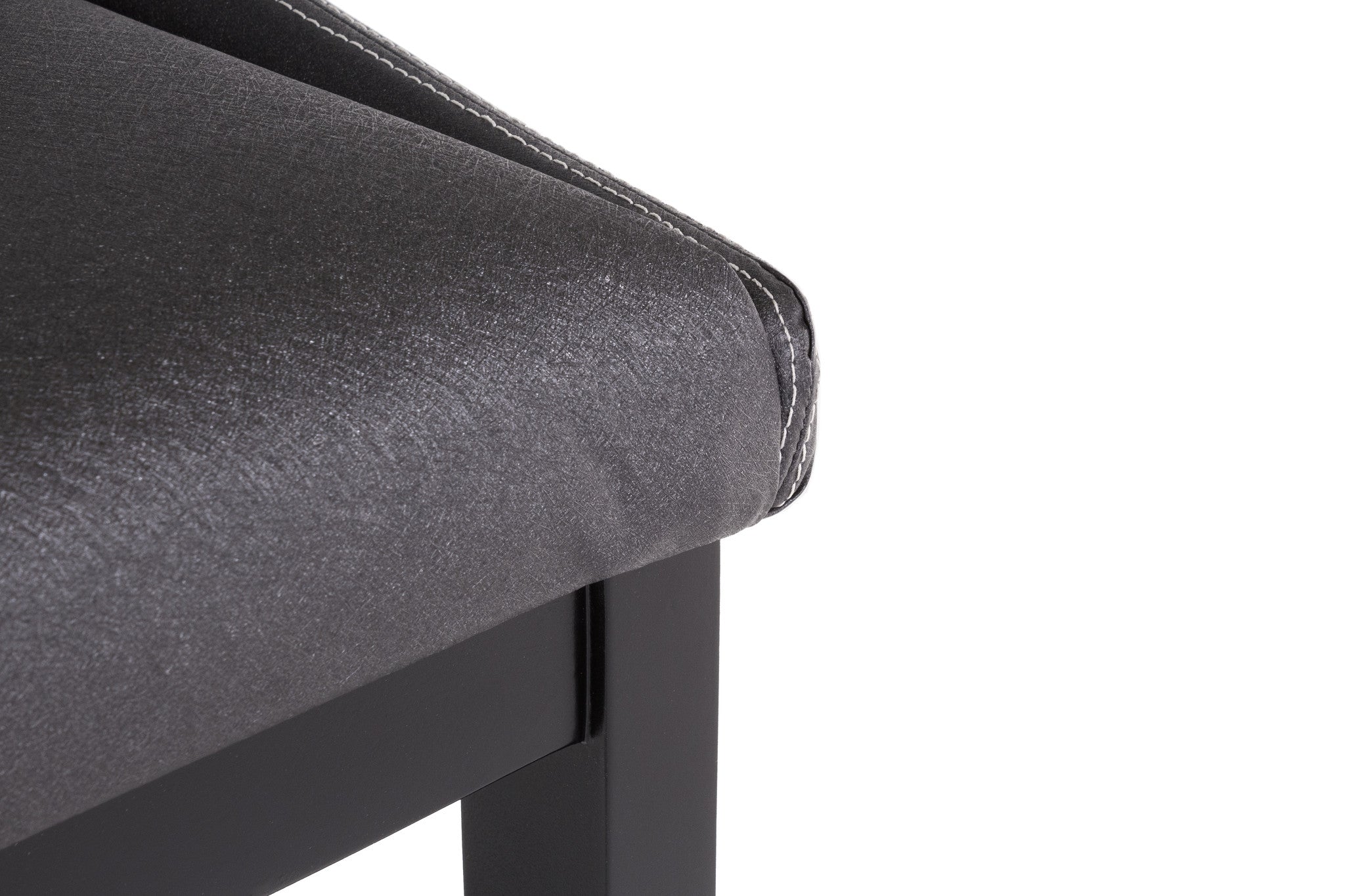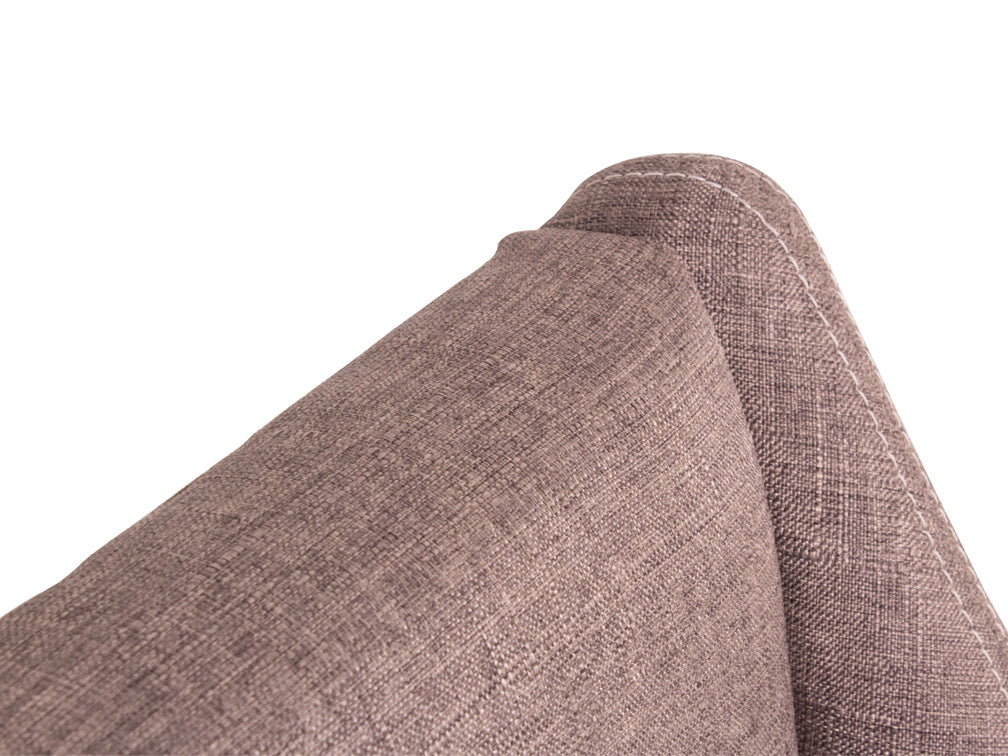 Su estructura es de madera de poplar con descansa pie de metal, y el tapiz en el asiento de tela, con opción en tacto piel.