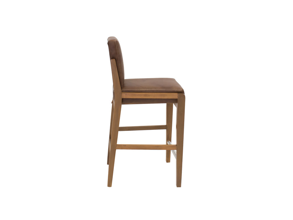 Podrá encontrar este moderno banco en una excelente combinación de color maple en la estructura con color canela en el tapiz.