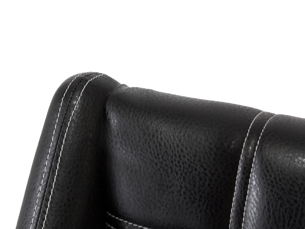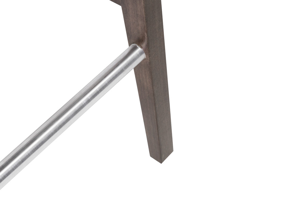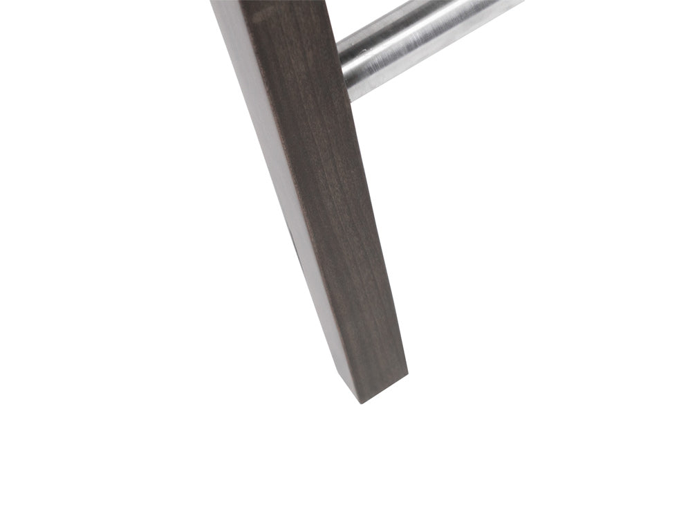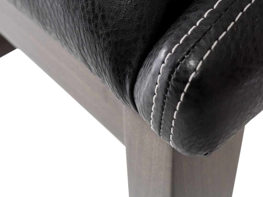 Este banco Banco Contempo Face Con Costura es de madera de poplar en color gris con aluminio rayado y tapiz negro.