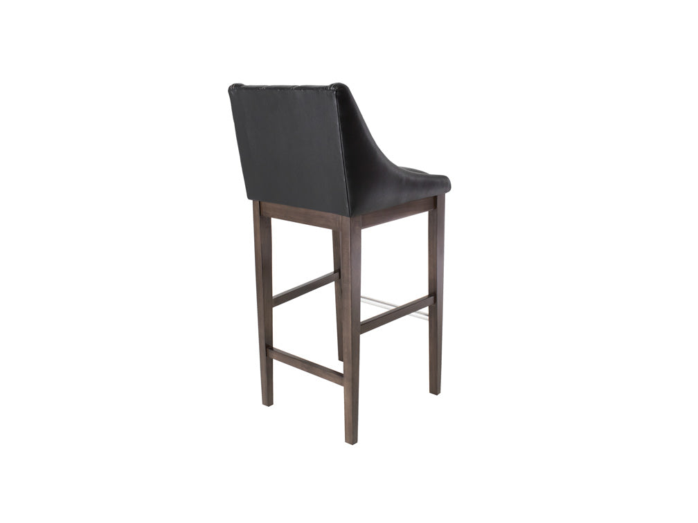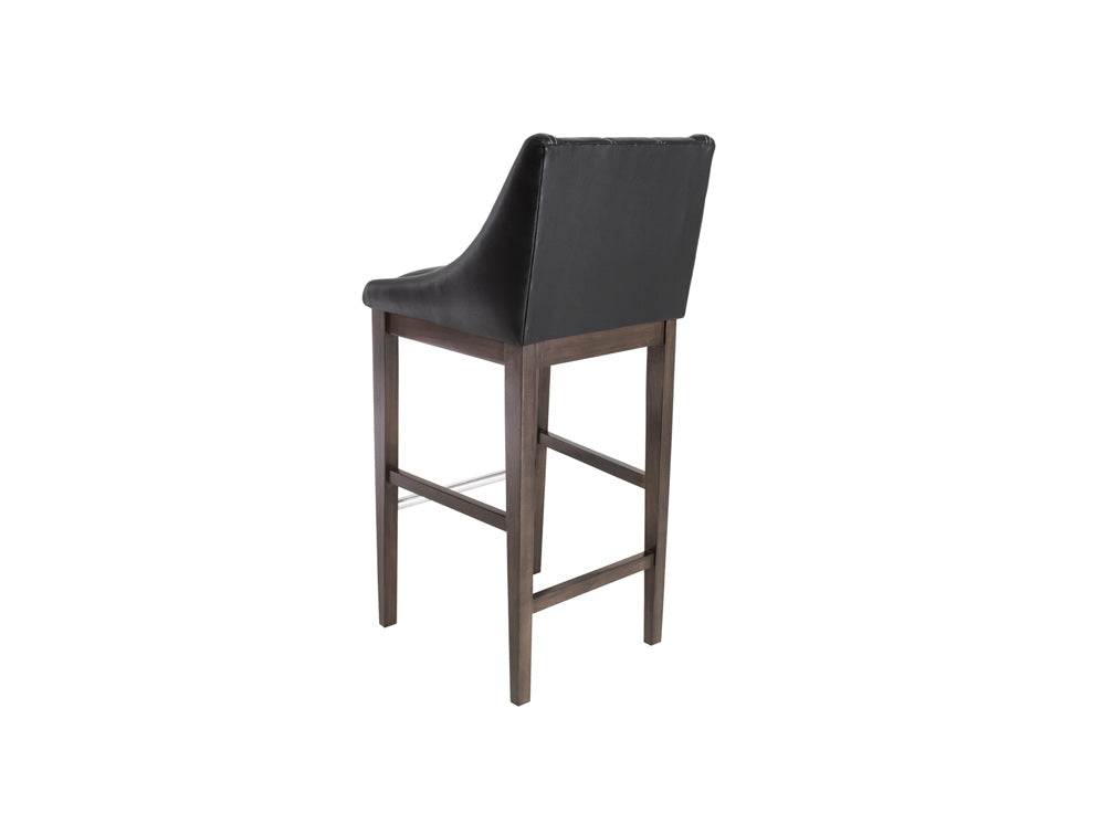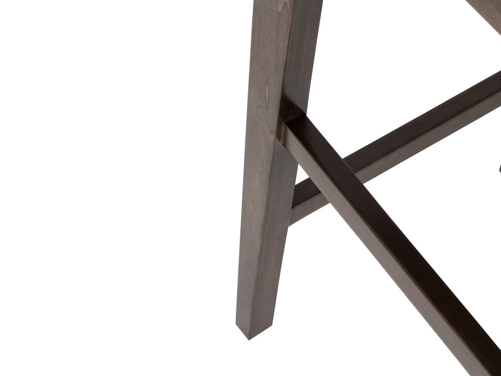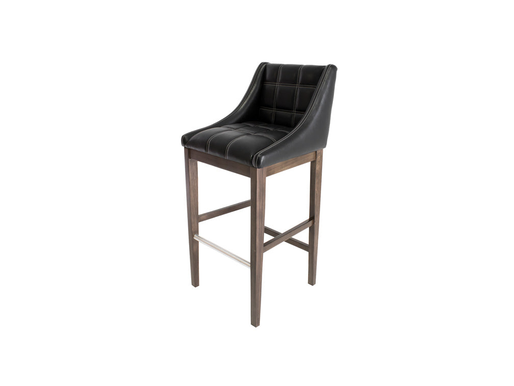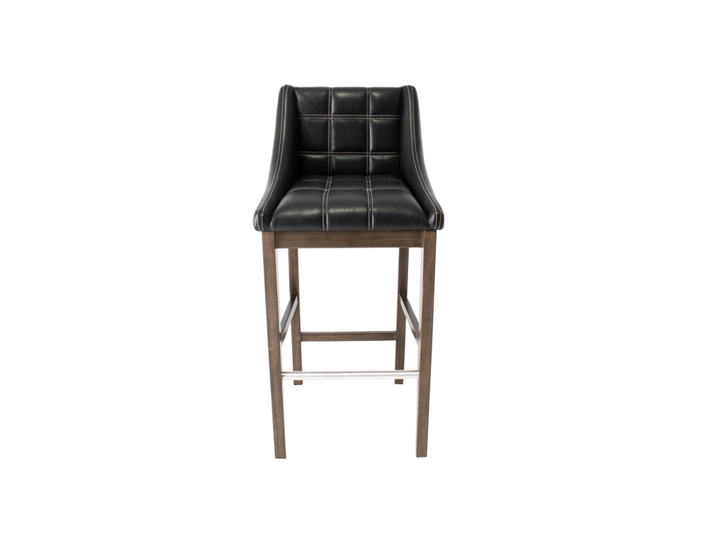 Este banco Banco Contempo Face Con Costura es de madera de poplar en color gris con aluminio rayado y tapiz negro.