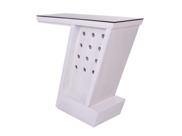 Su estructura es fabricada en MDF, para ser más resistente y duradera. Y la cubierta de cristal le da el toque elegante.