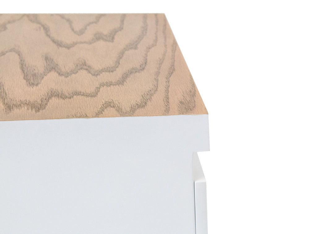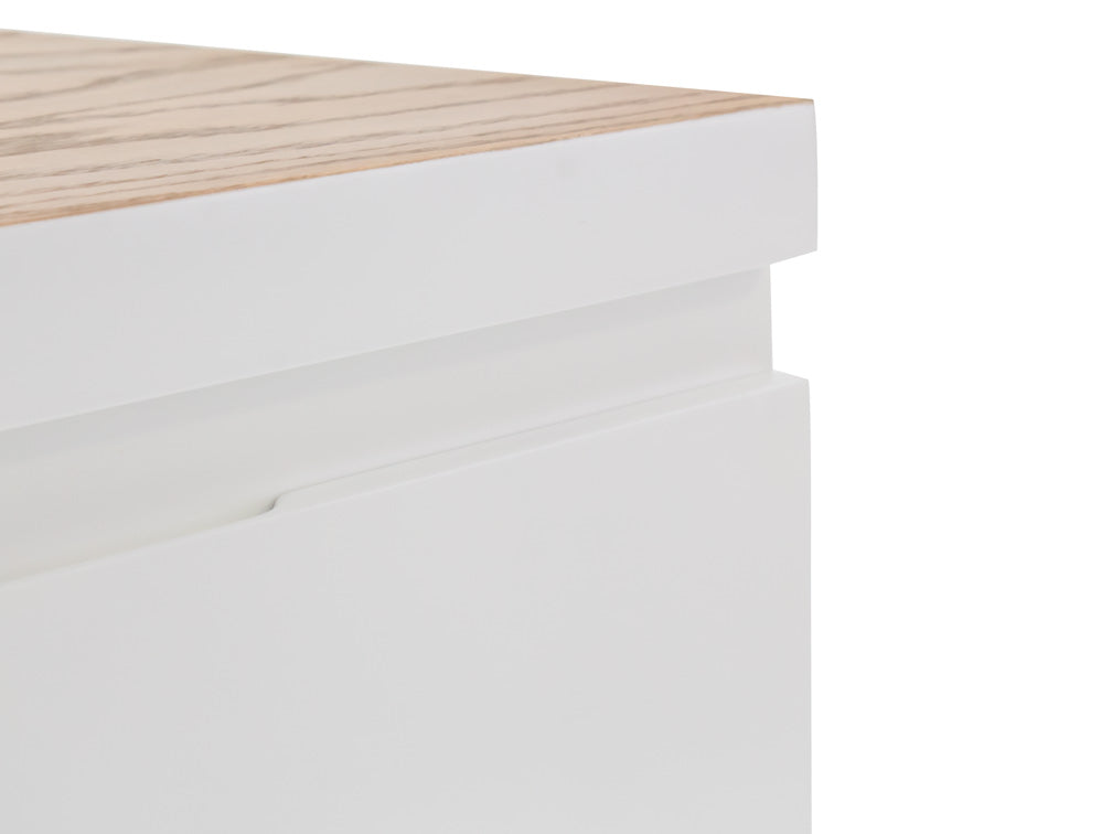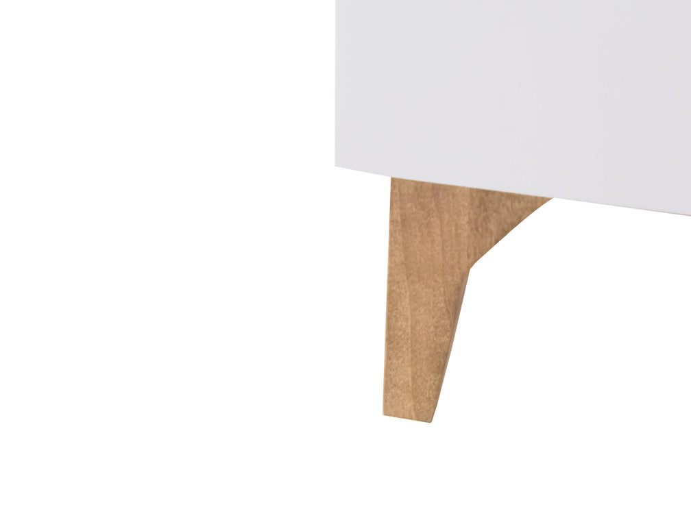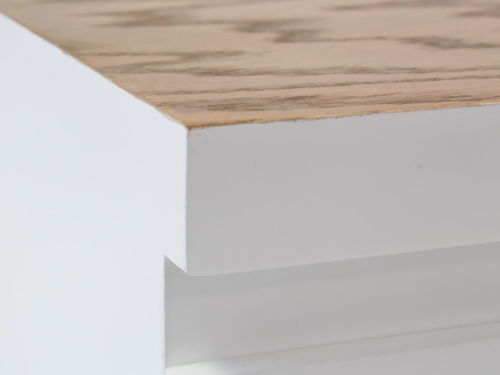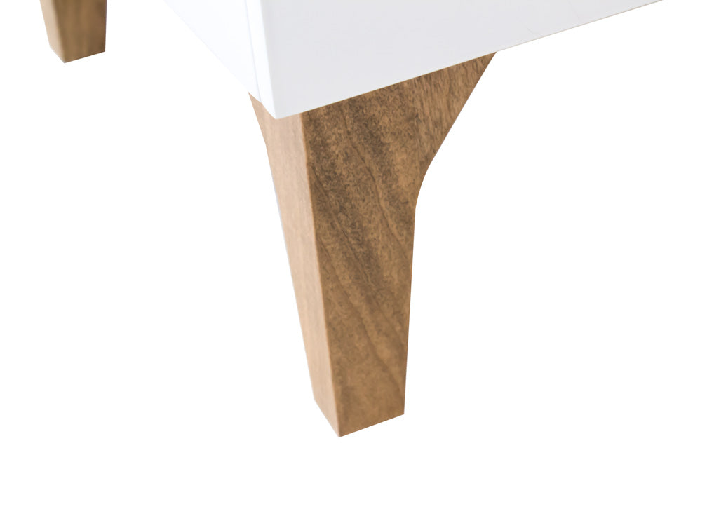 Podrá encontrar disponible este elegante buró con la estructura en color blanco, y la parte superior y las patas en color miel.