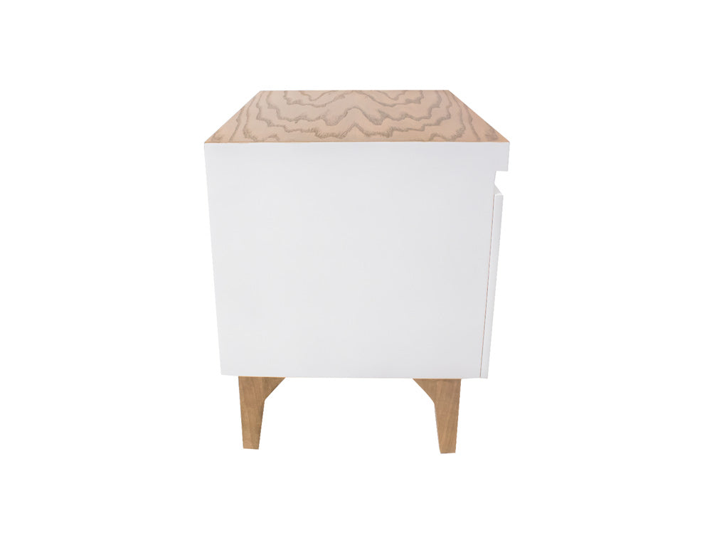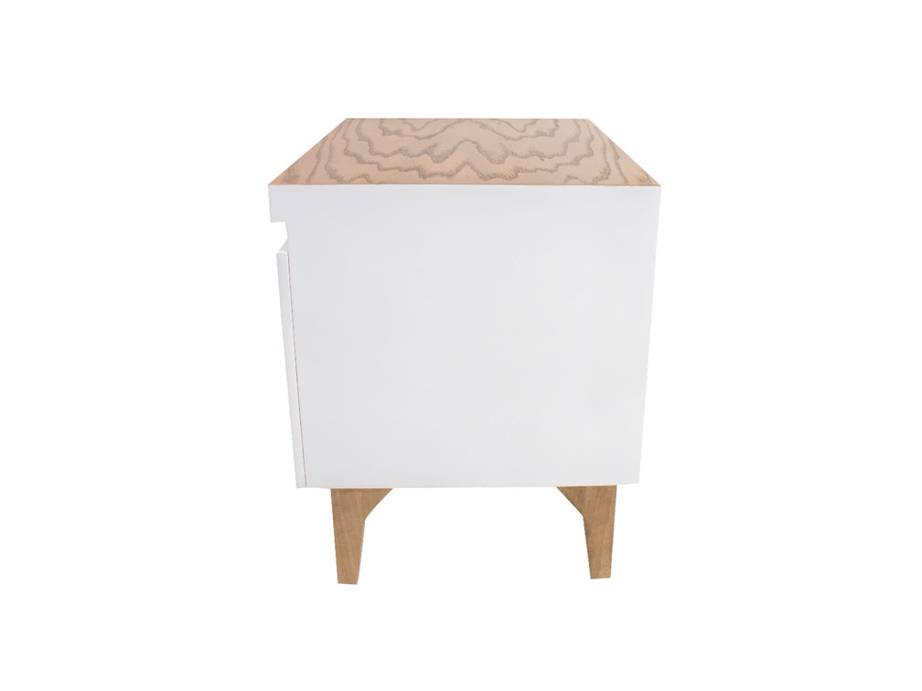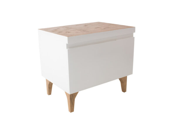 Este moderno buró de madera es ideal para colocarlo junto a su cama, pues tiene un tamaño práctico que no le quitará mucho espacio.