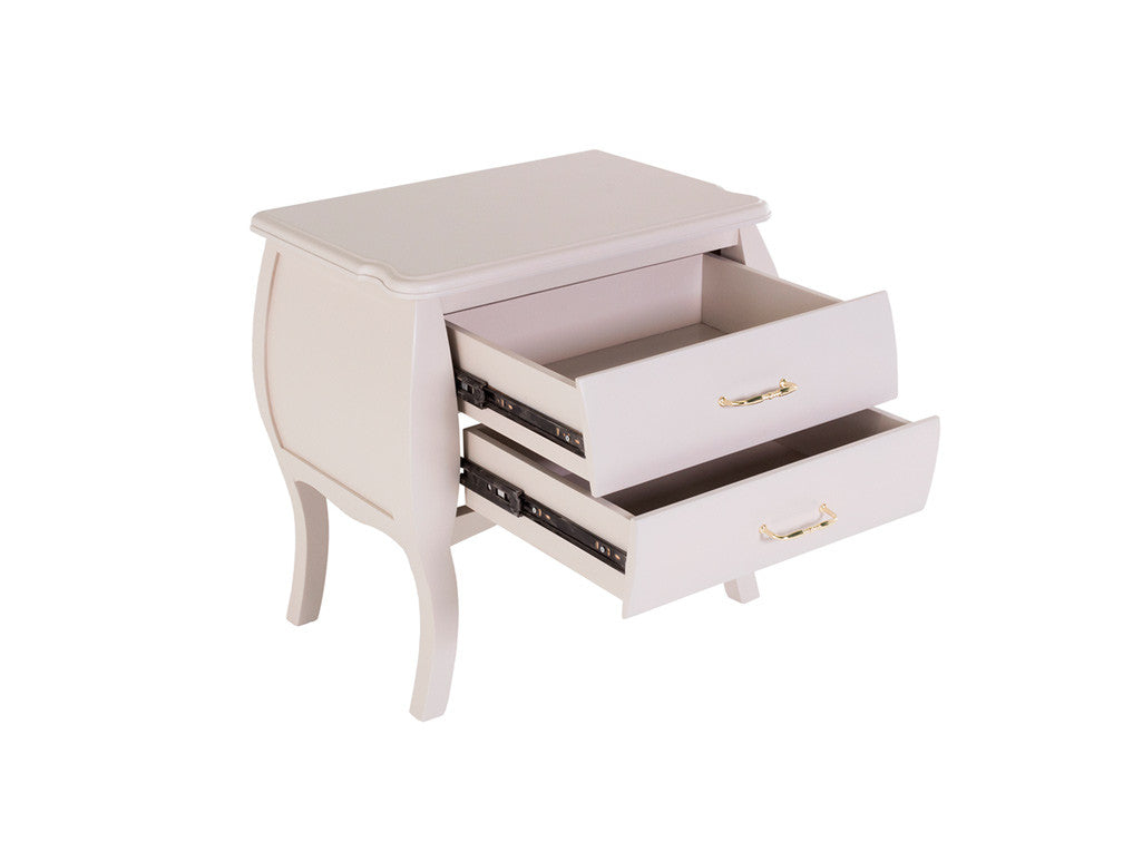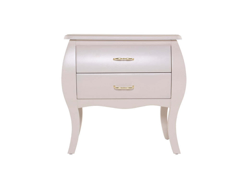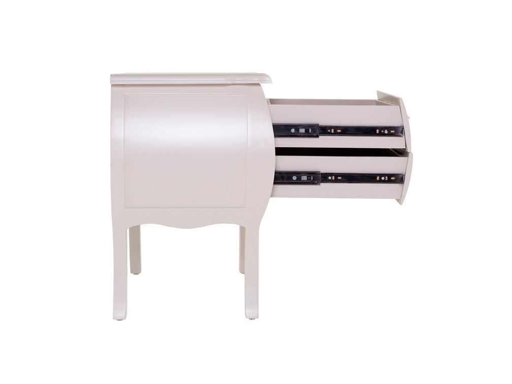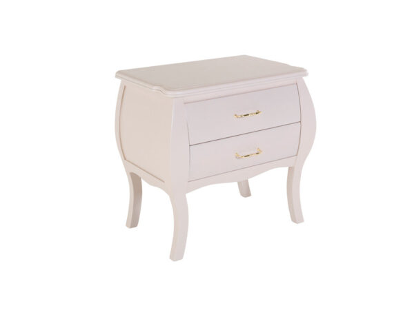Buró para recámara inspirado en estilos clásicos franceses, ideal para recámaras en donde se desea lograr un ambiente elegante y formal. Su funcionalidad es perfecta ya que en su diseño contiene dos cajones, por lo que es perfecto como mesita de noche.