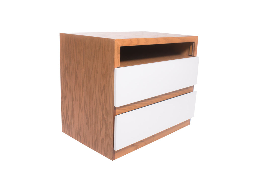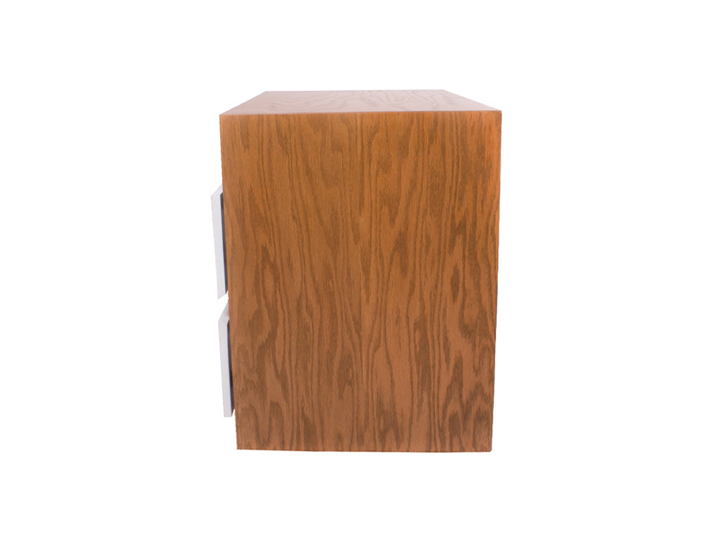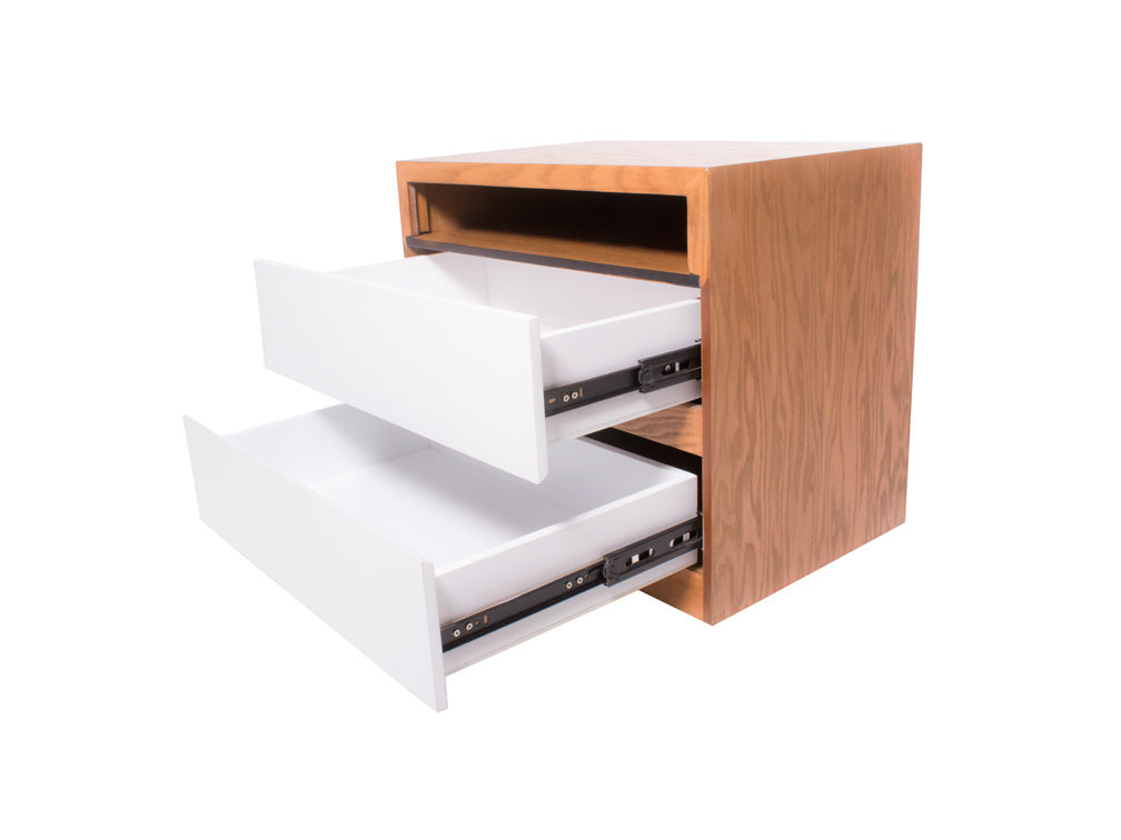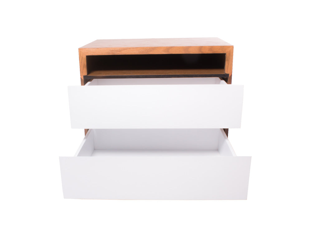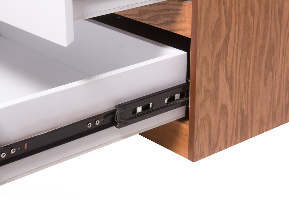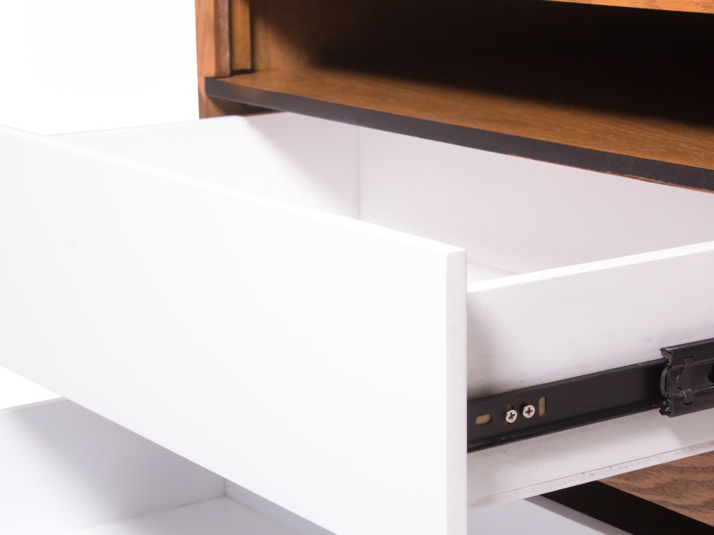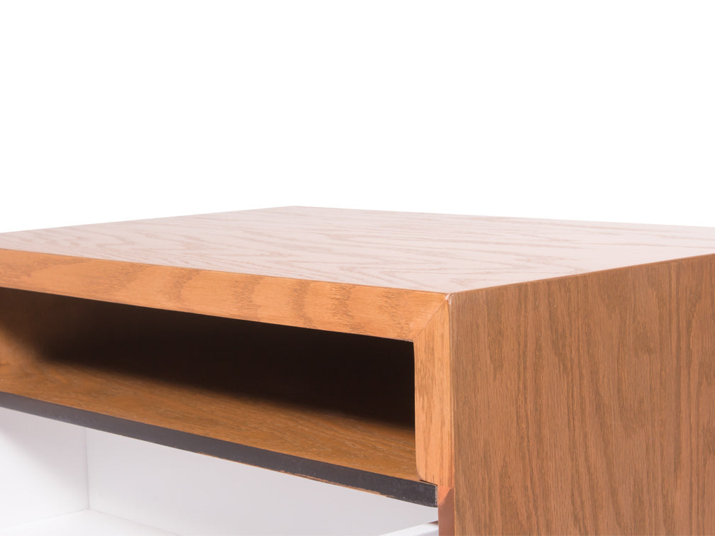El buró BR – 71 cuenta con dos amplios cajones y un espacio abierto en forma rectangular en la parte superior.