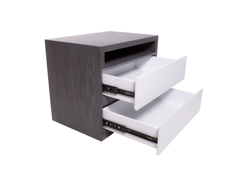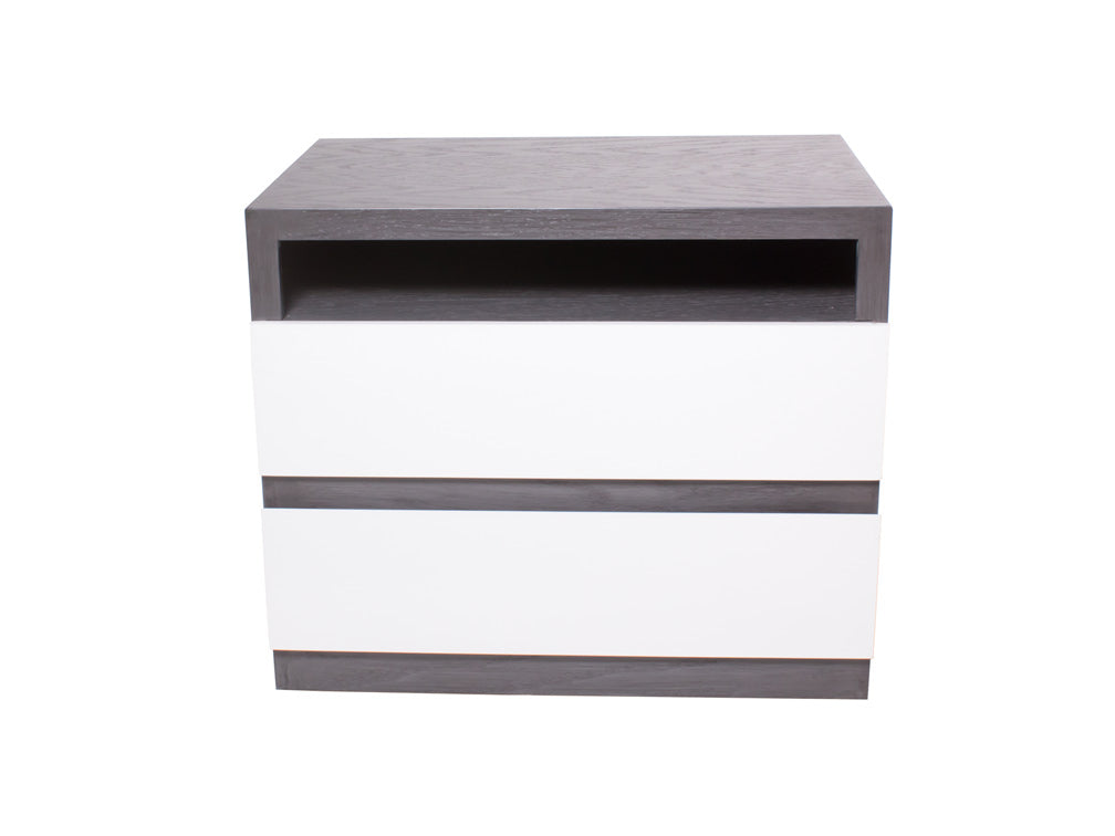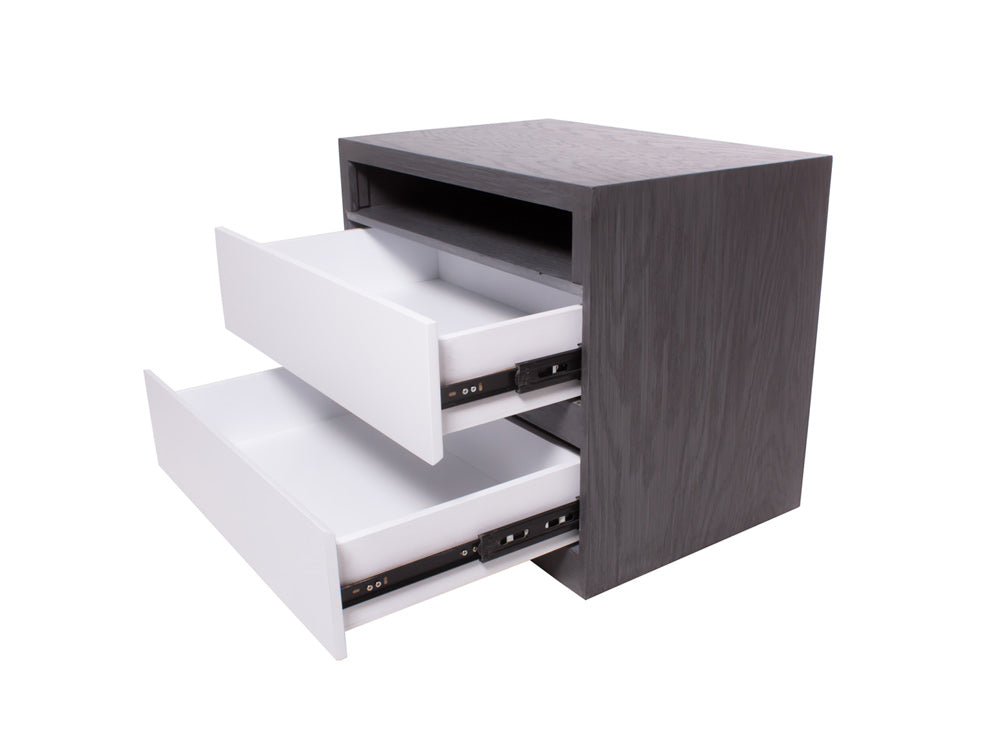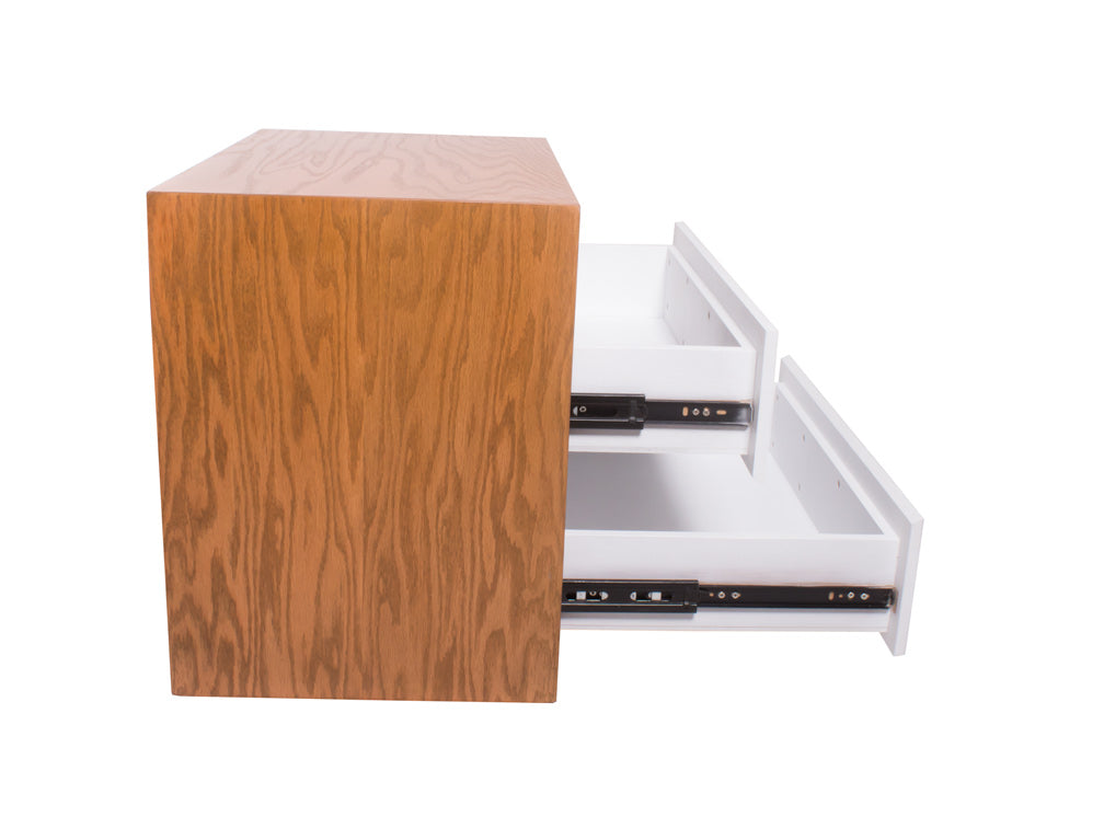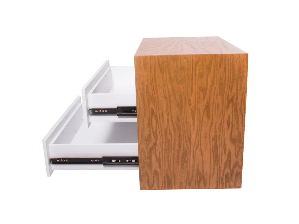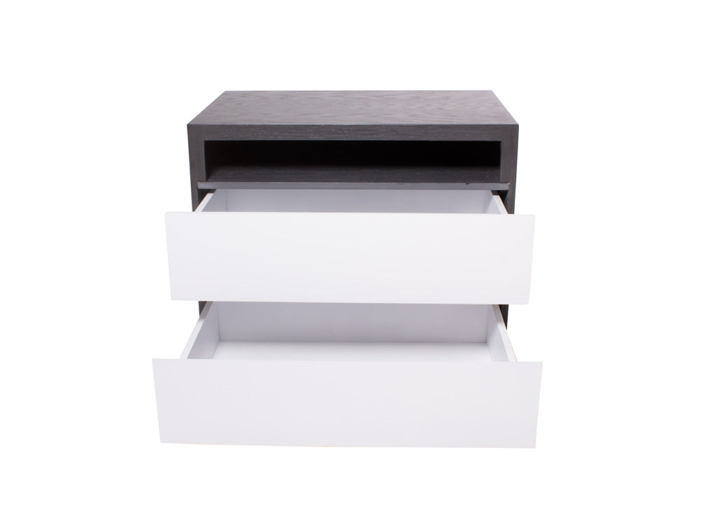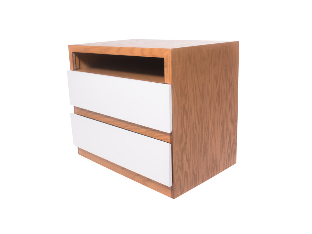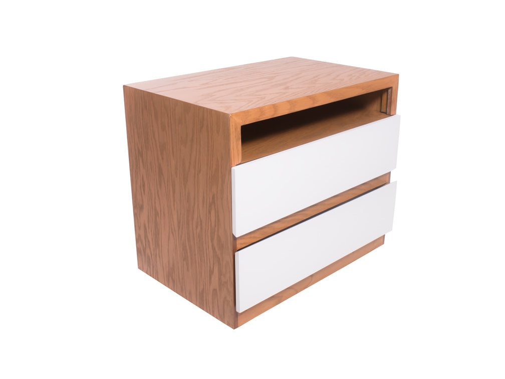 El buró BR – 71 cuenta con dos amplios cajones y un espacio abierto en forma rectangular en la parte superior.