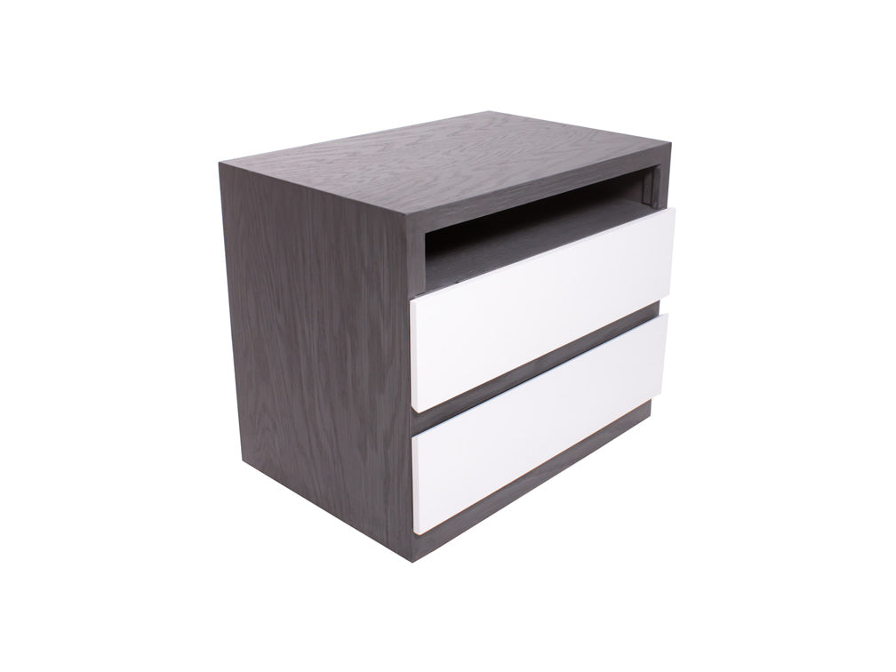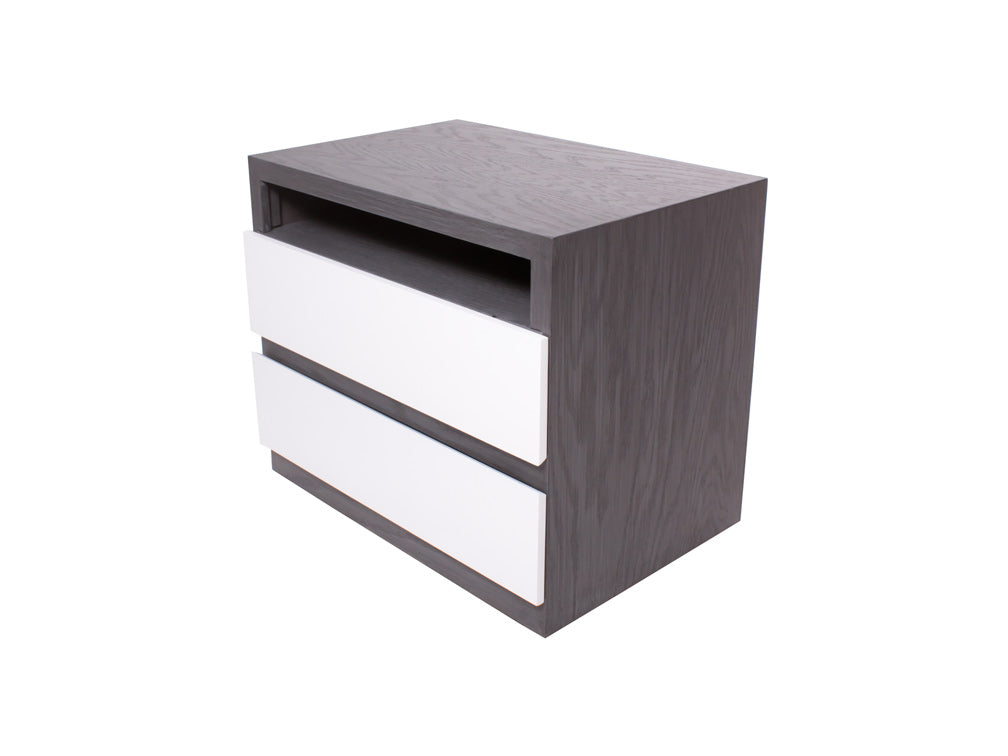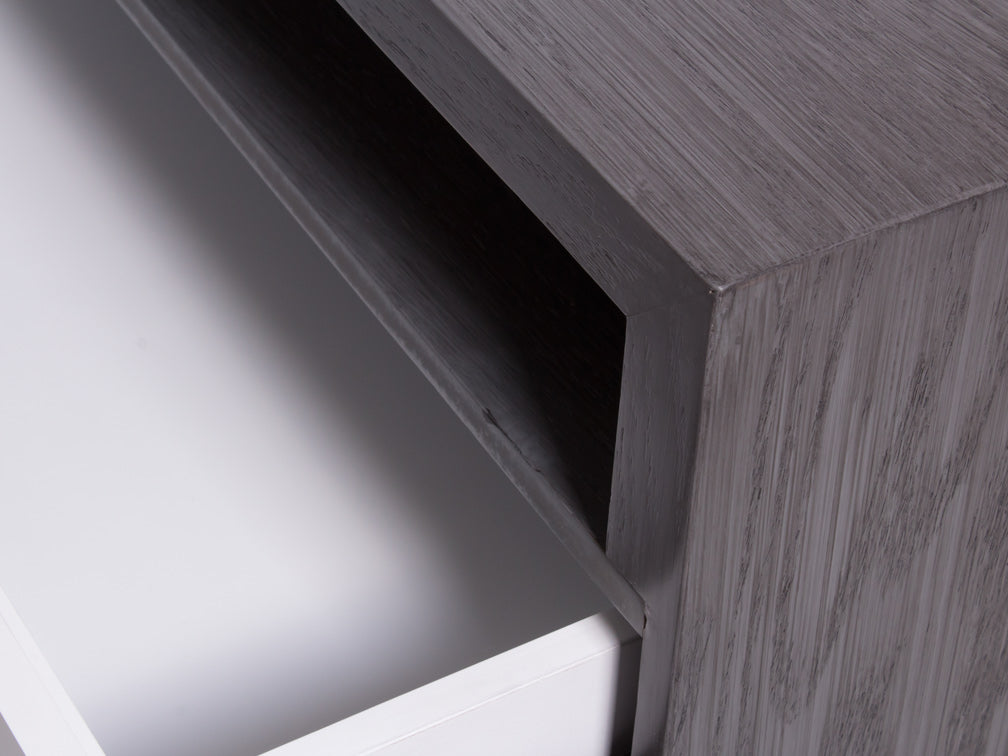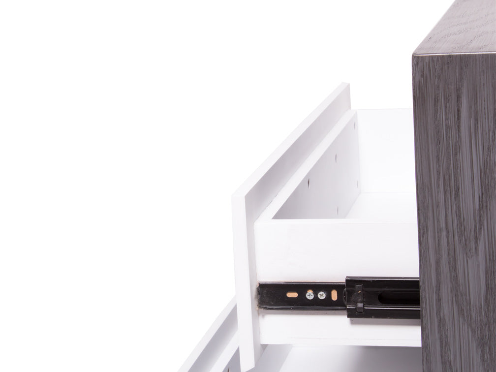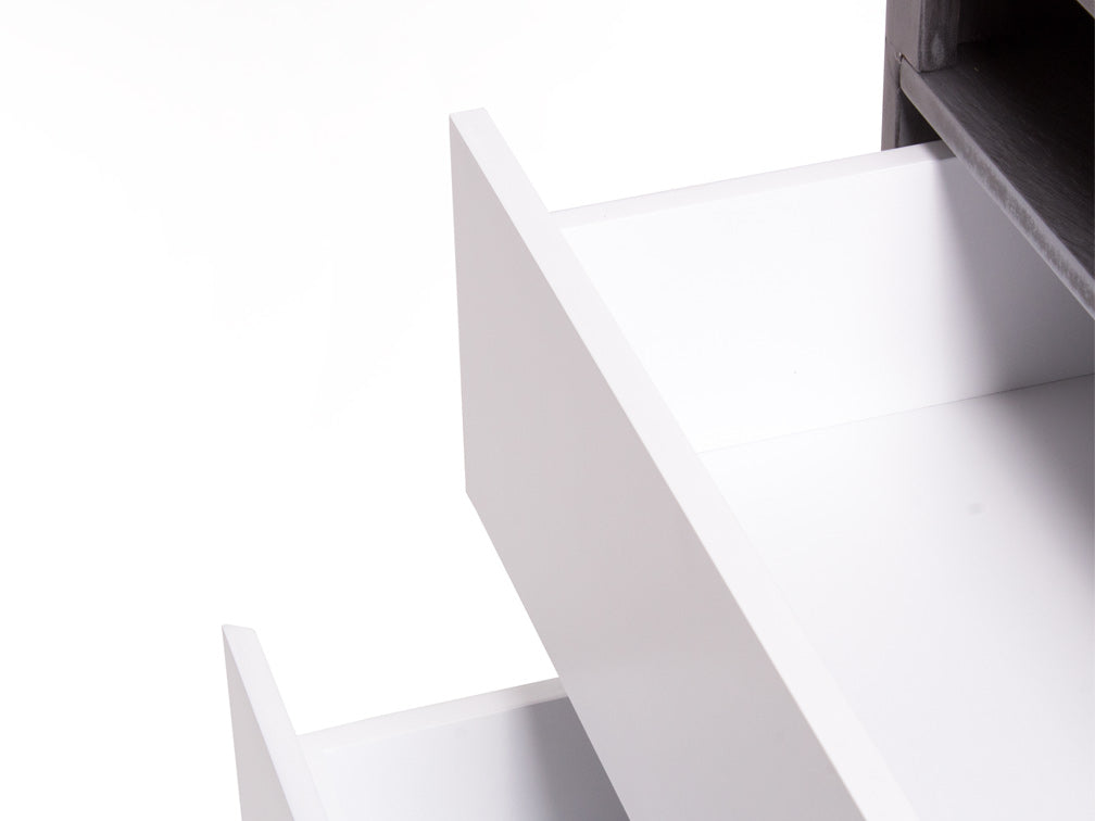 Además, para combinarlo con la decoración de su recámara, podrá escoger entre color grissy y miel en la estructura, en combinación con blanco en los cajones.