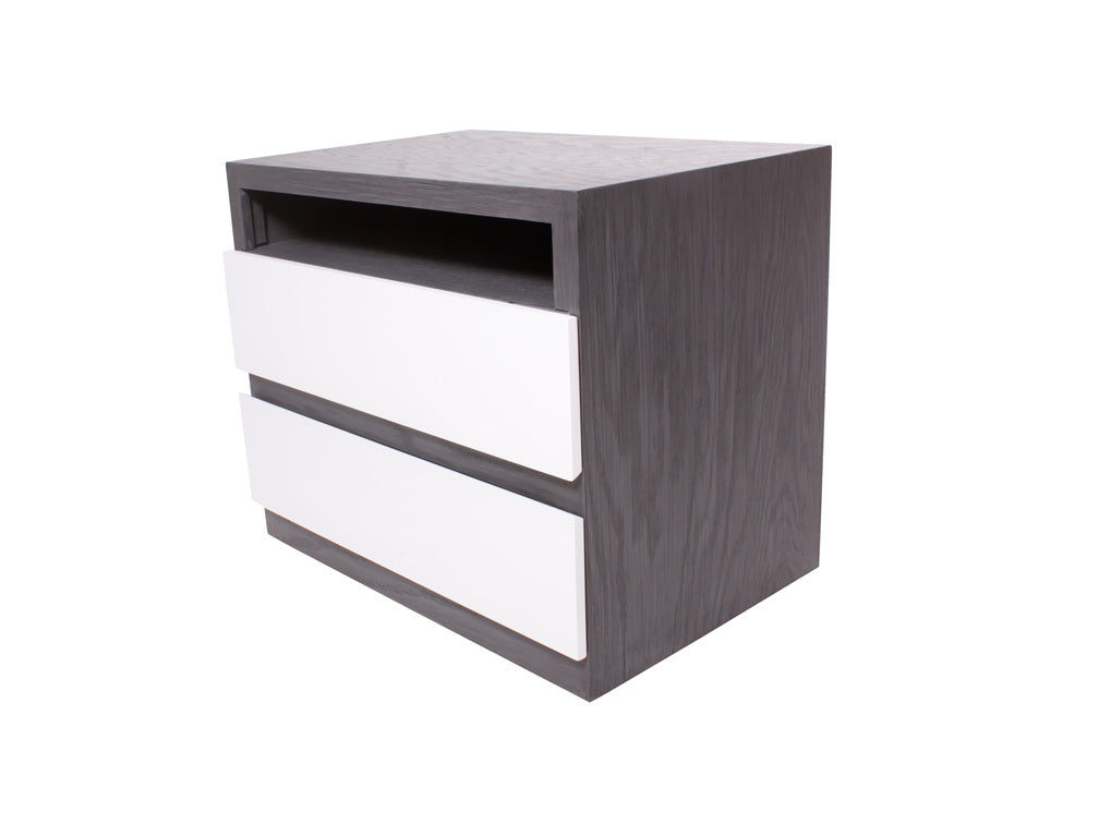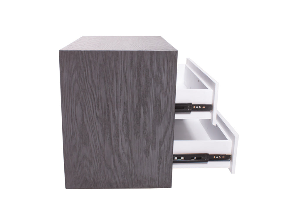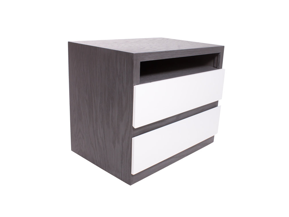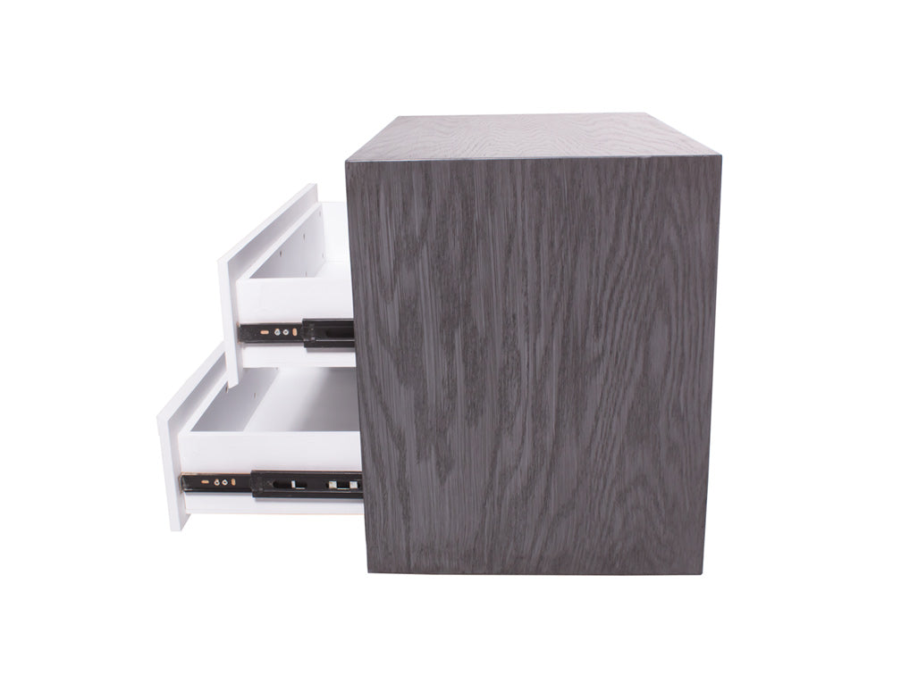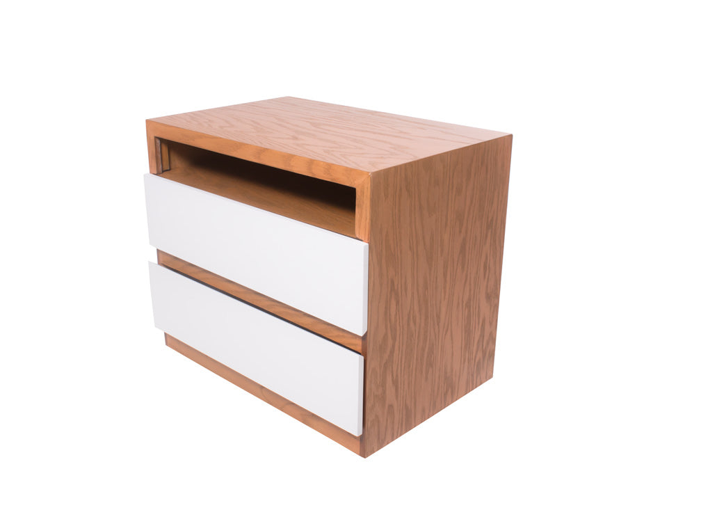 Además, para combinarlo con la decoración de su recámara, podrá escoger entre color grissy y miel en la estructura, en combinación con blanco en los cajones.