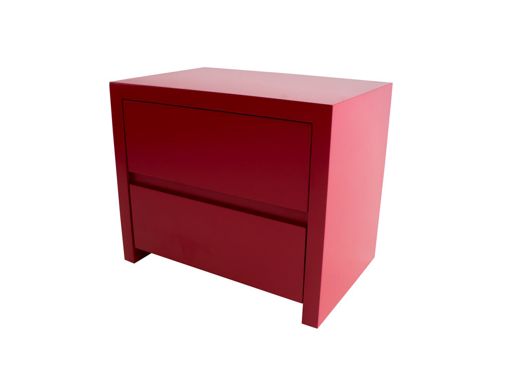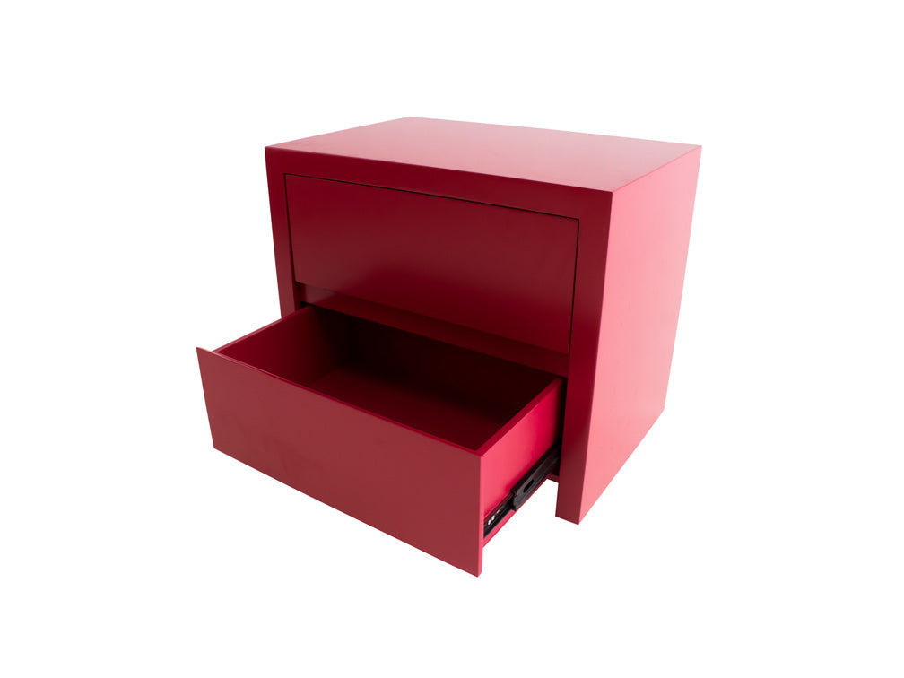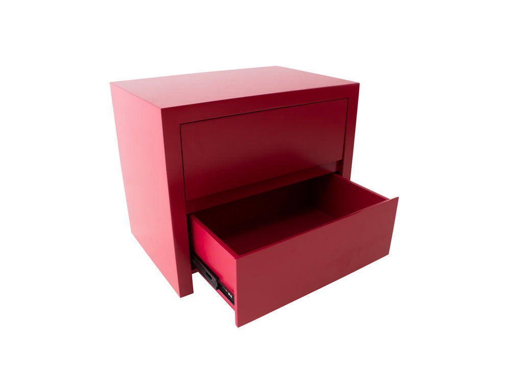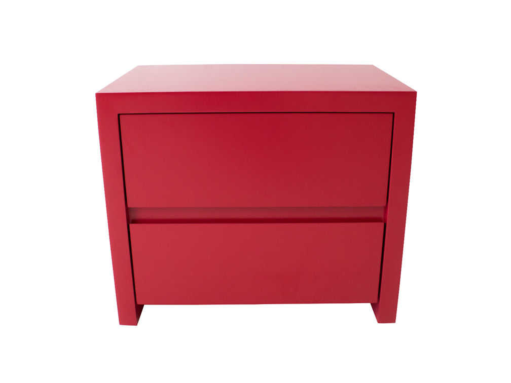 Este buró tiene un estilo minimalista puesto que no tiene jaladeras en los cajones. Su diseño es sencillo, con dos cajones amplios para guardar sus artículos personales.
