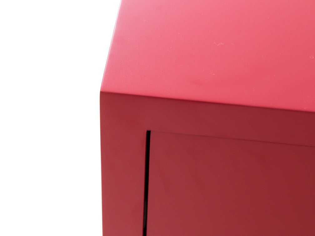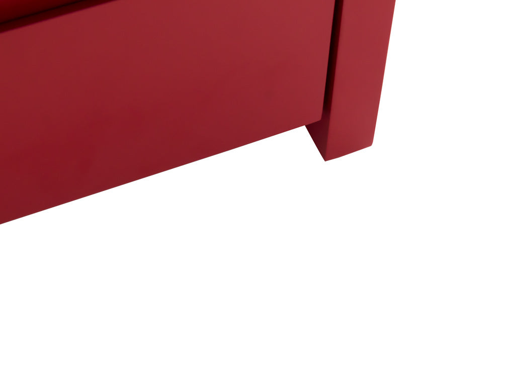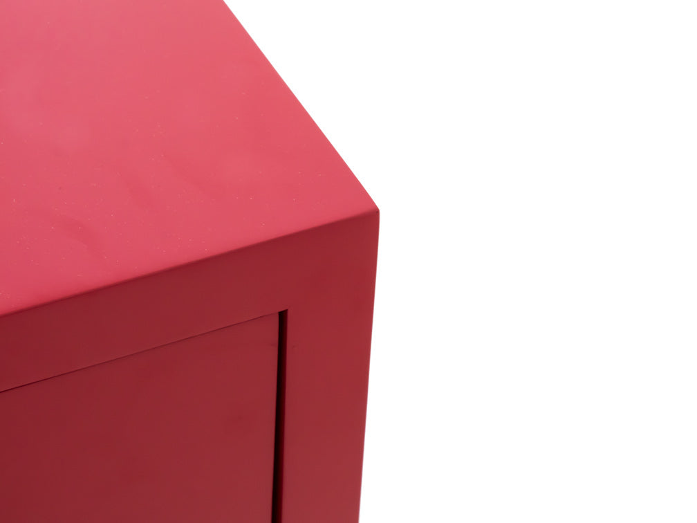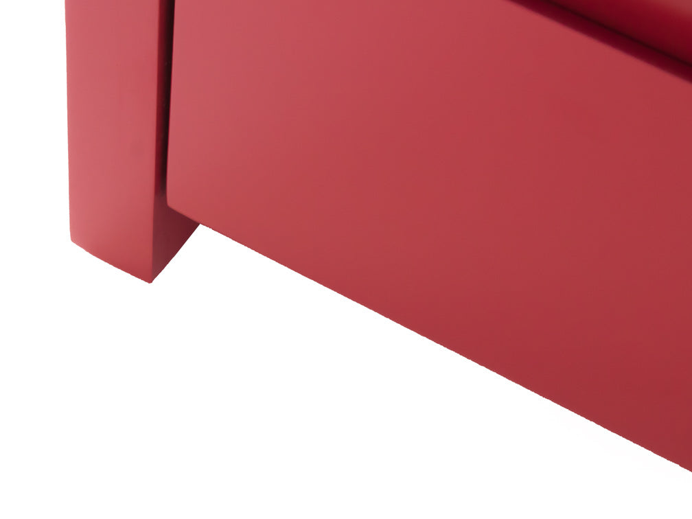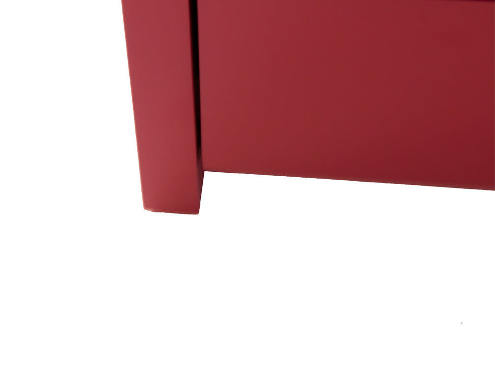 El buró que se ilustra, está fabricado en madera de mdf en color rojo, con unas medidas de 60 cm de largo x 45 cm de ancho x 41 cm de alto.