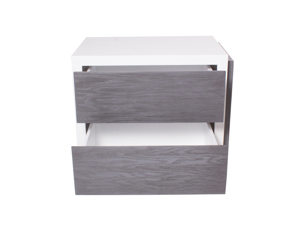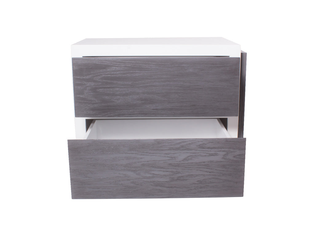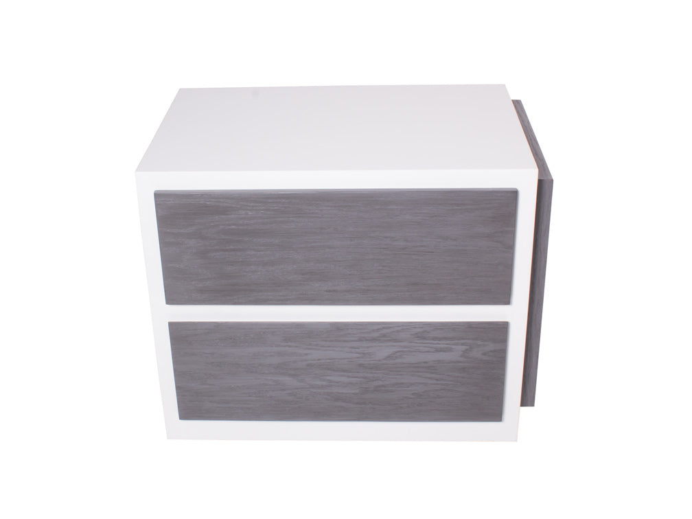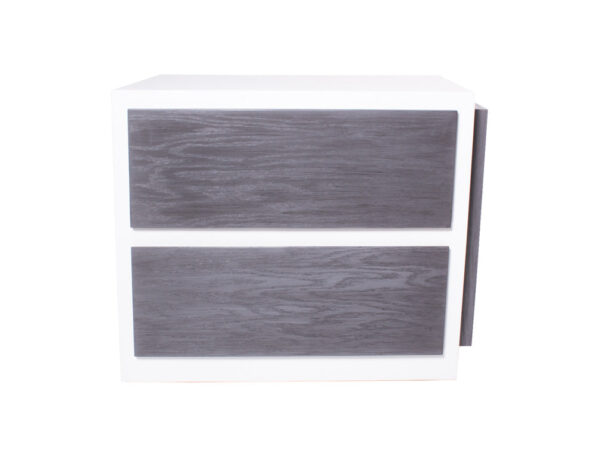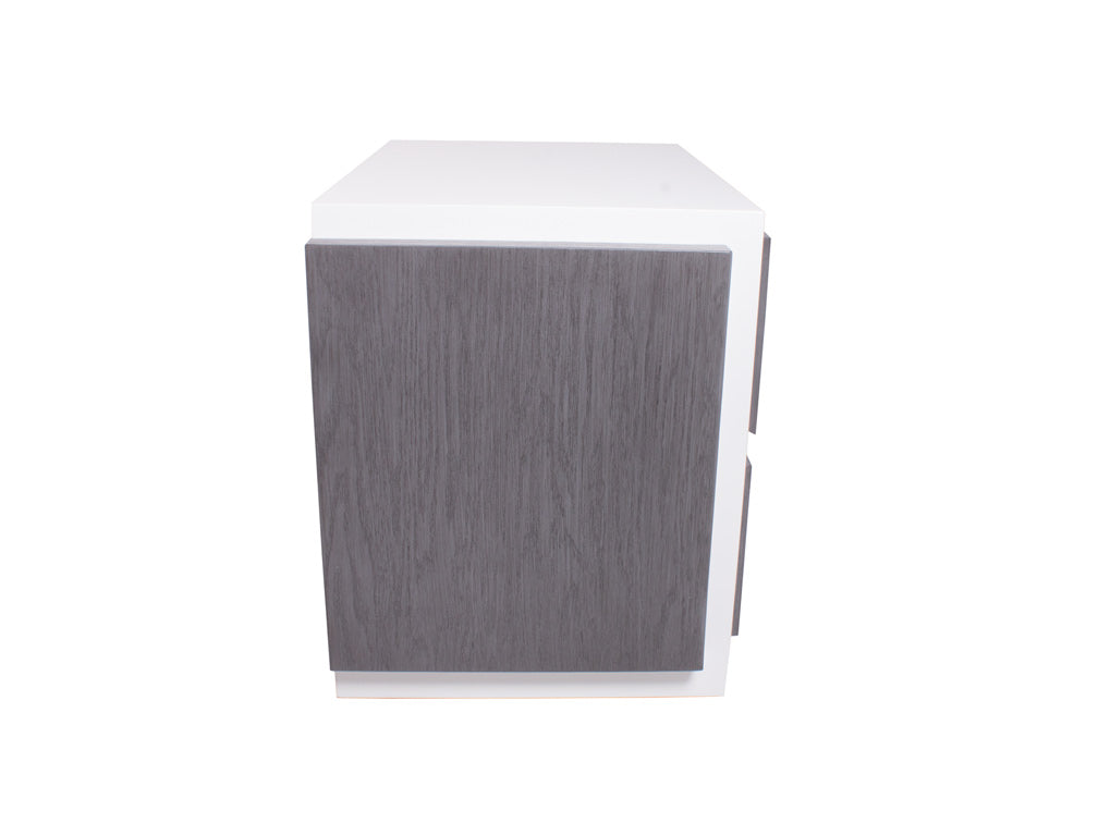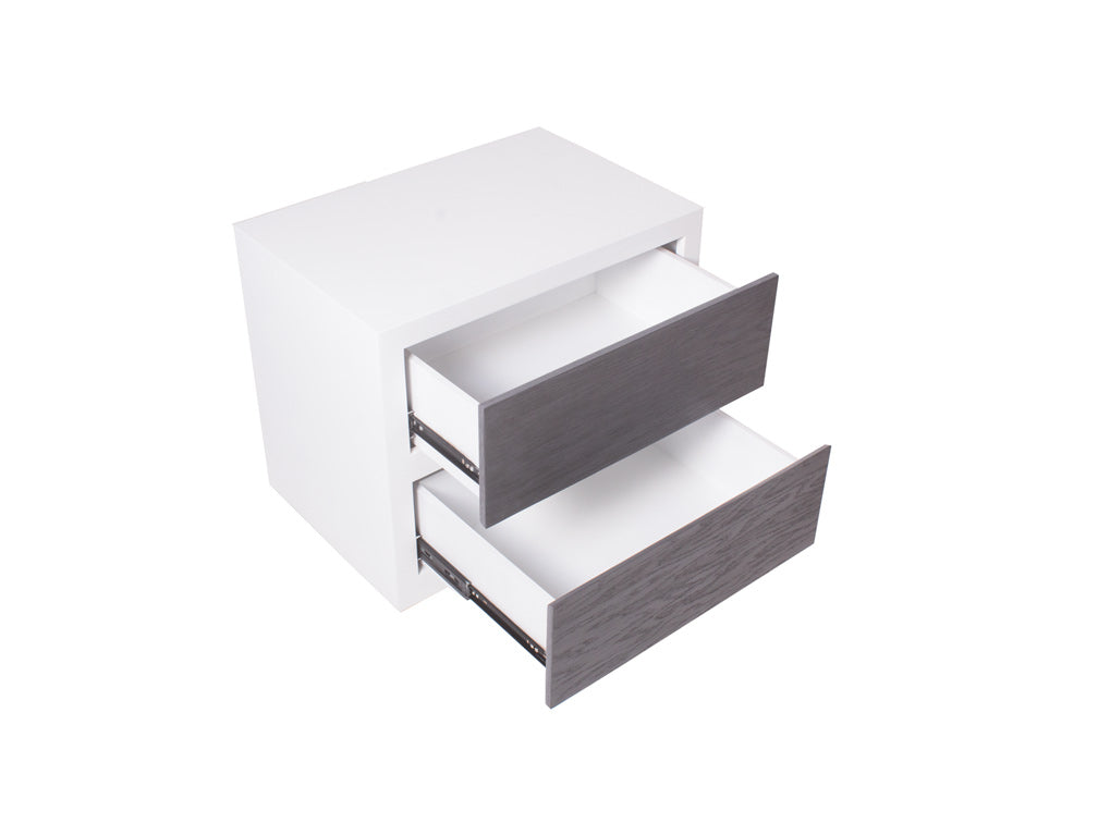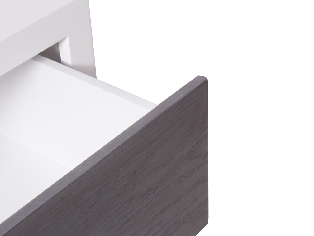 Podrá encontrar este moderno buró de mdf Kontempo en color blanco de la estructura, y los cajones en color grissy.