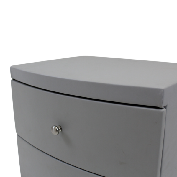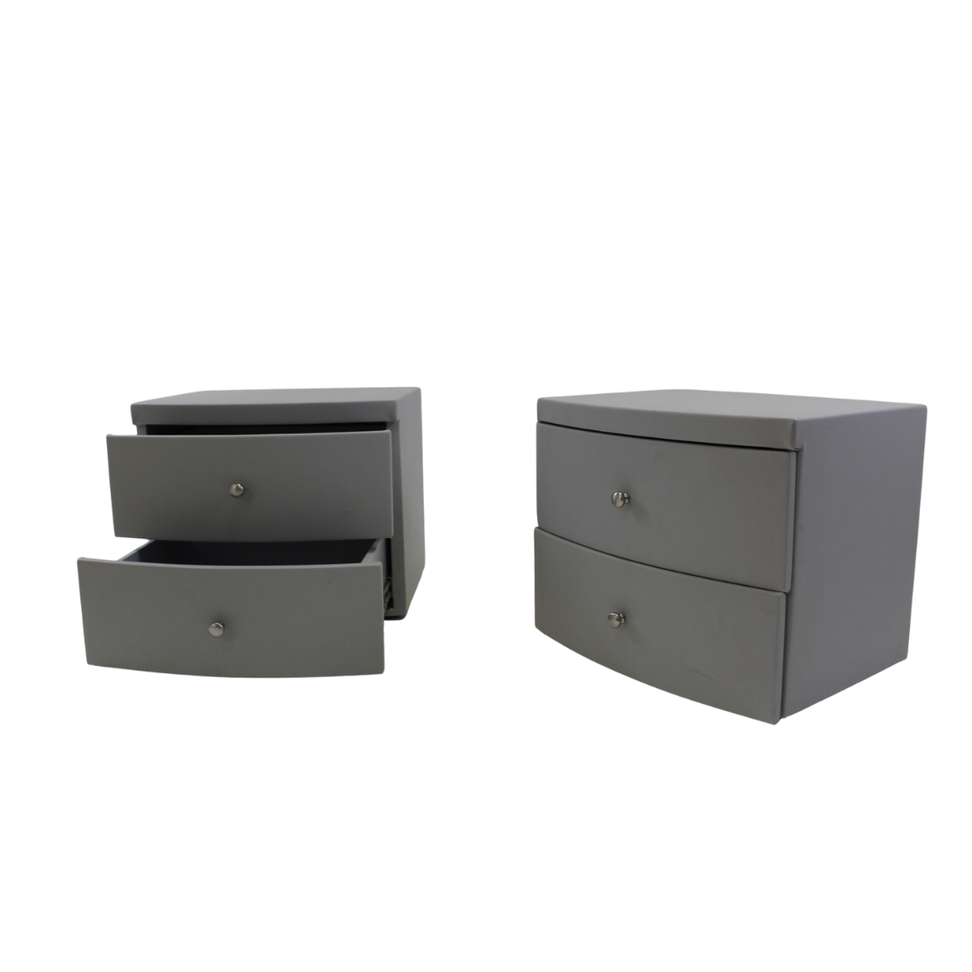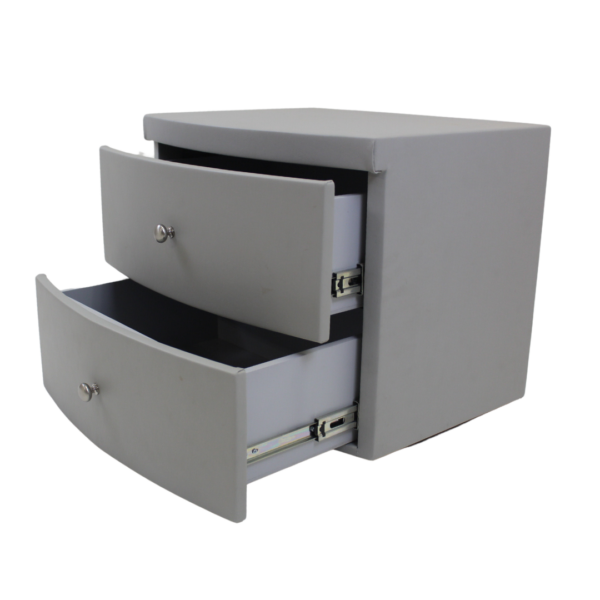 Buró moderno Kontempo fabricado con base de MDF y con acabado en tela vinilica lisa en color gris. Este buró cuenta con medidas de 56 cm de largo x 44 cm de ancho y 47 cm altura.