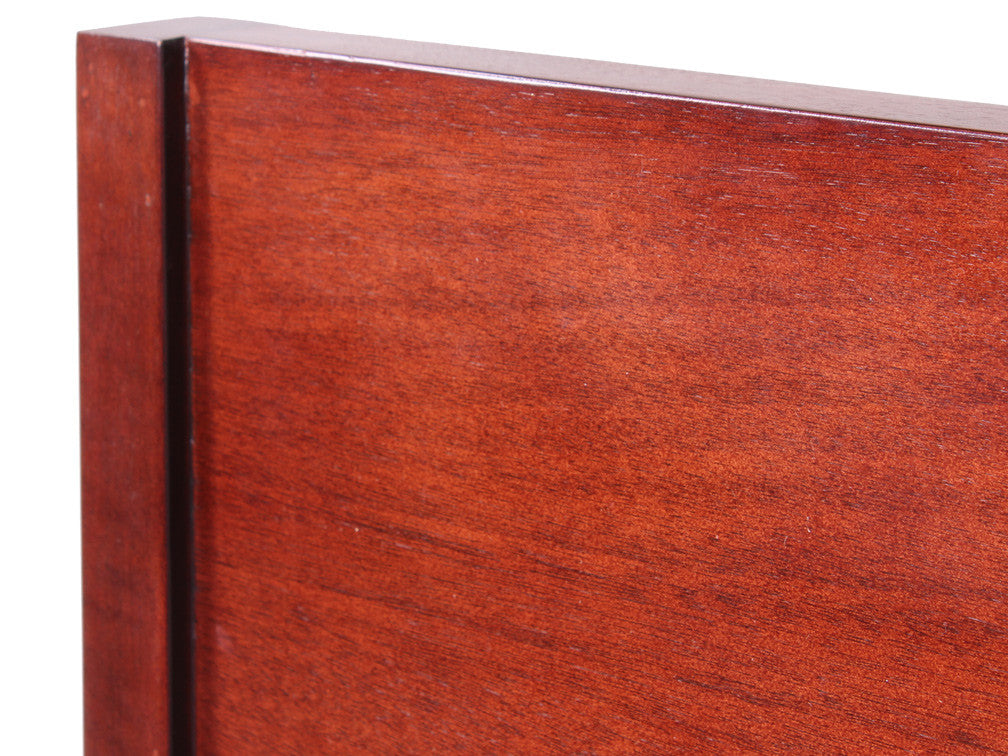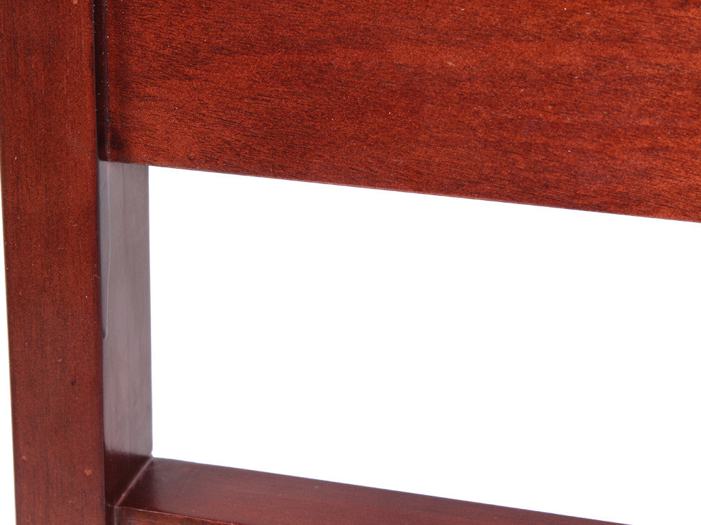 Podrá encontrar disponible esta rústica cabecera para cama en color caoba, que le dará un toque más cálido a su recámara.