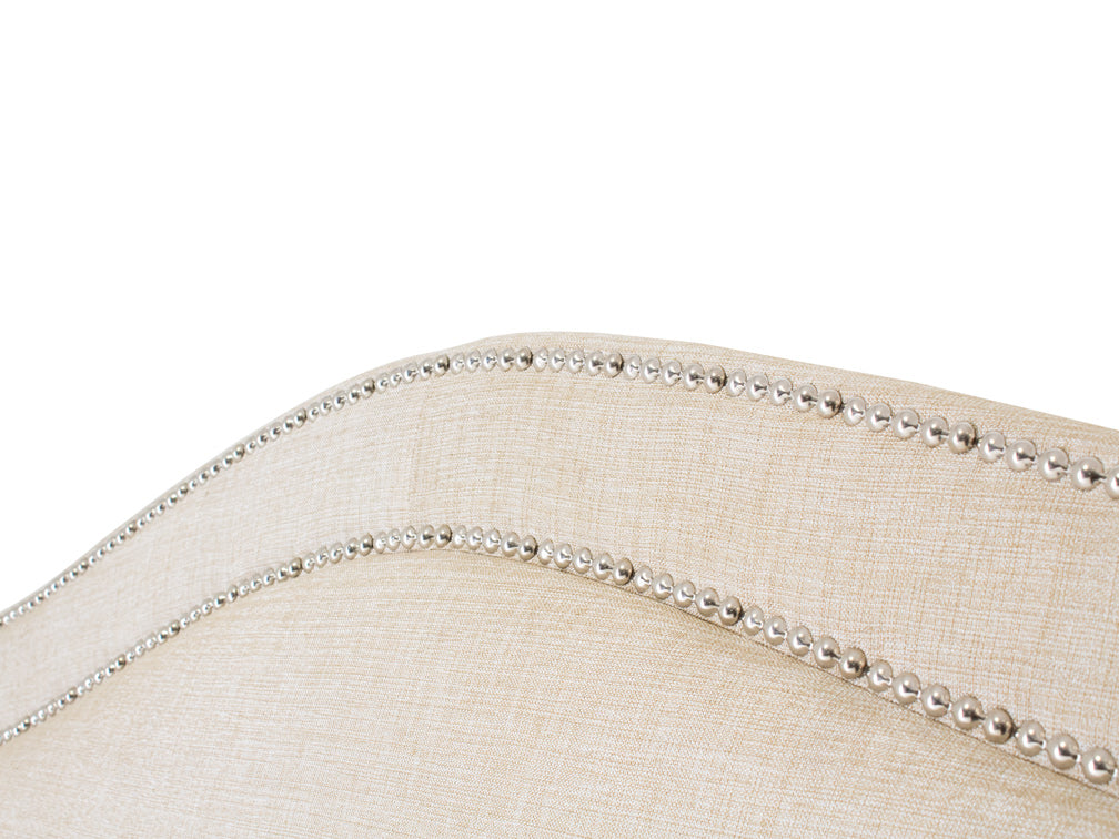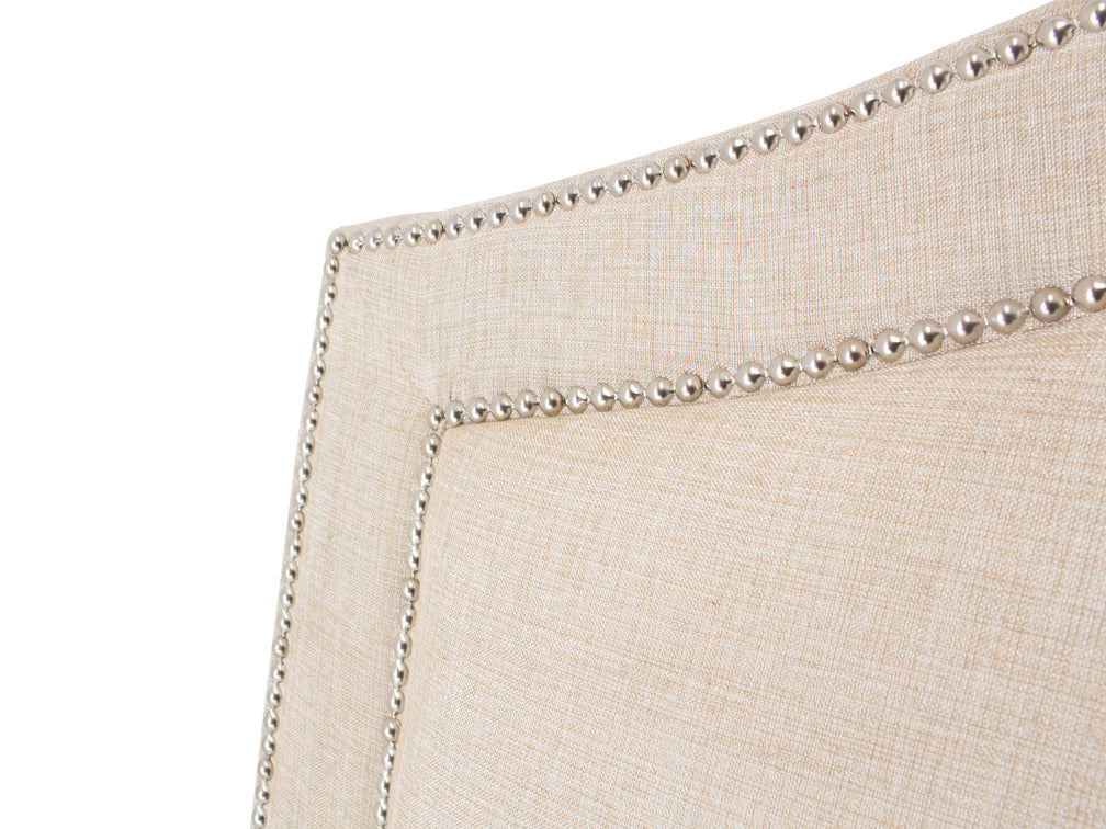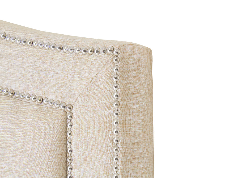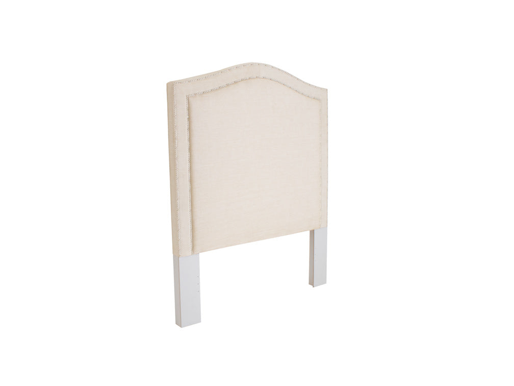 Esta cabecera ilustrada es de madera de mdf y tela alcaparra en color crema.