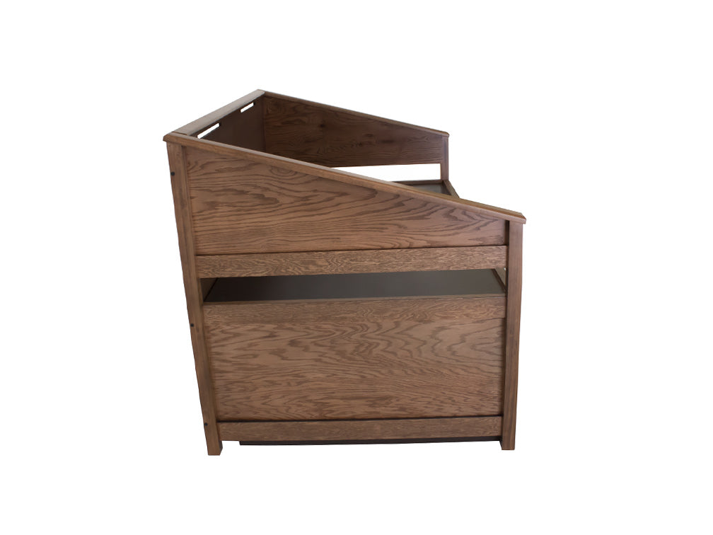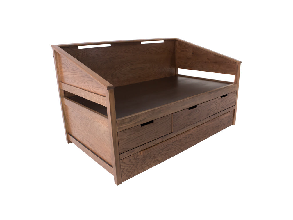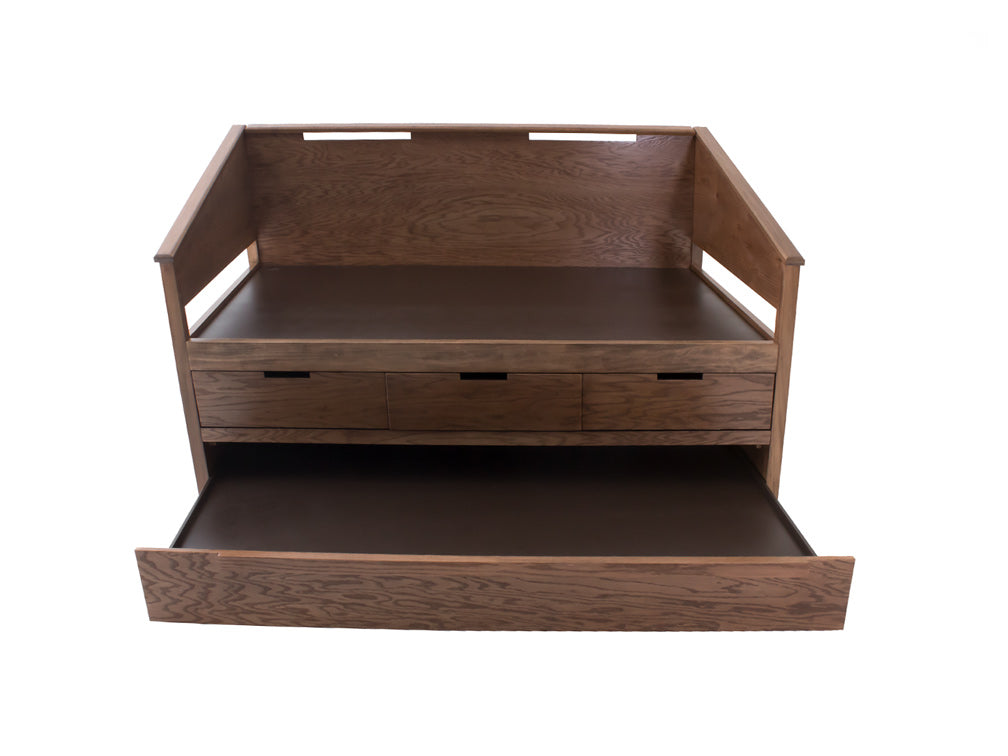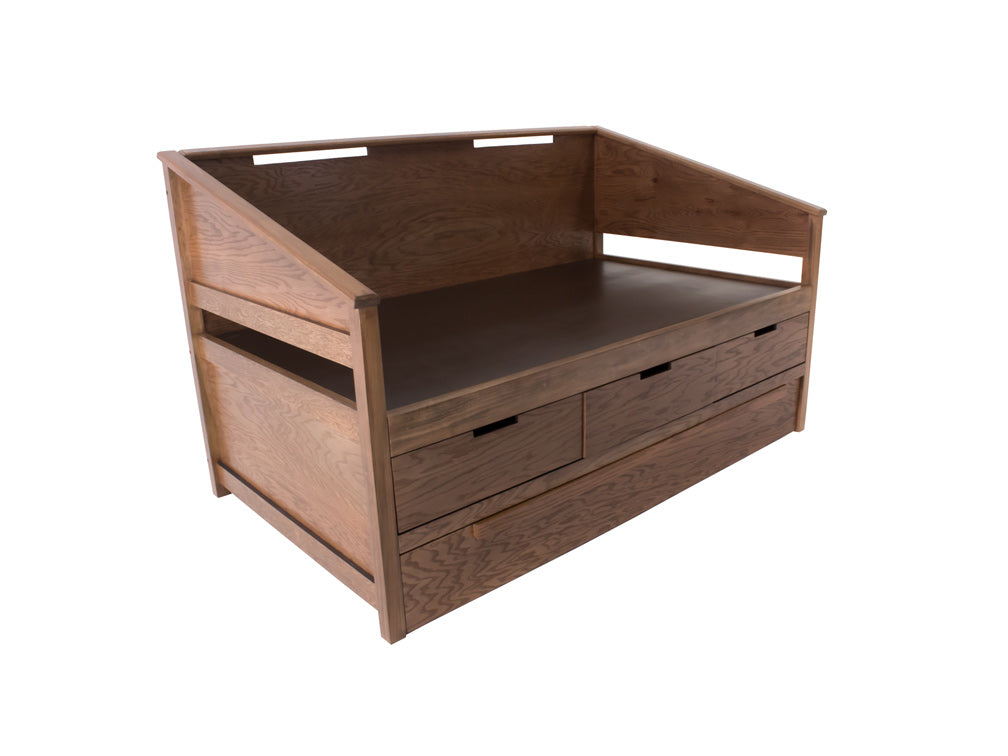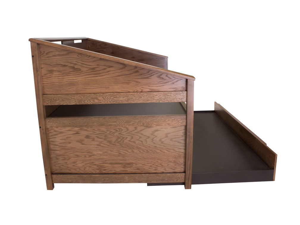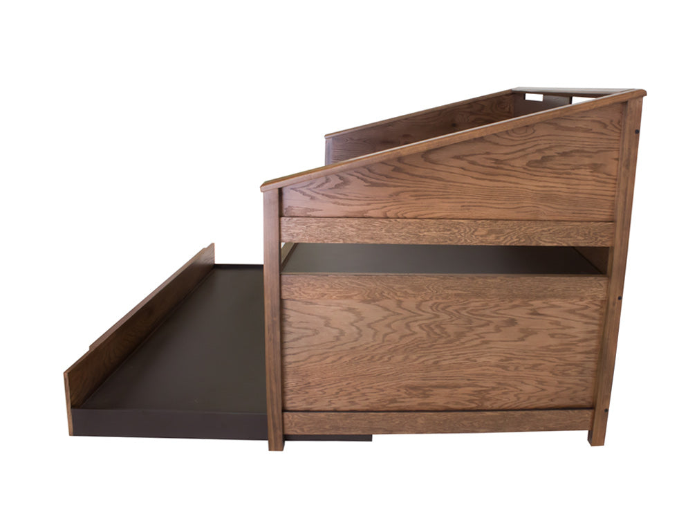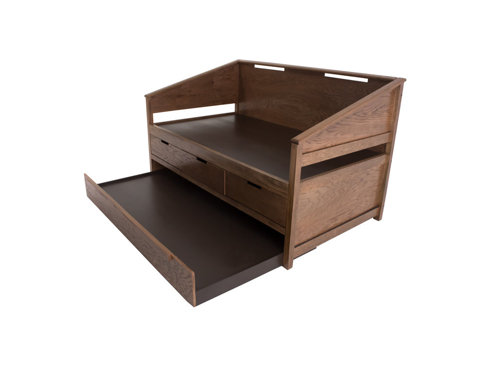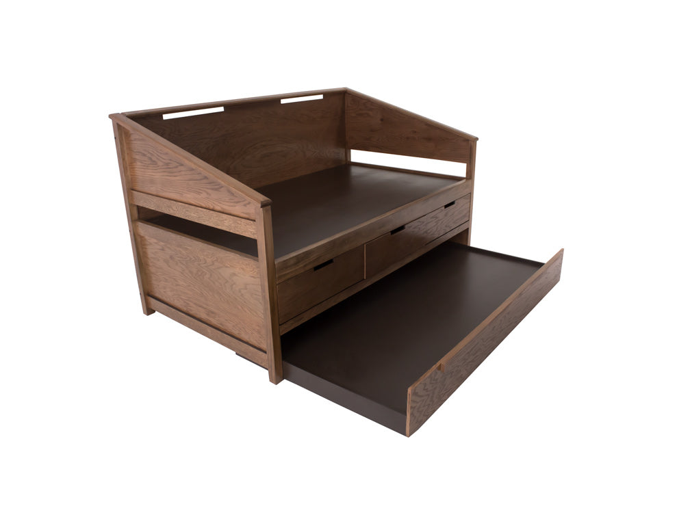 Esta práctica cama canguro Kontempo es fabricada en madera y enchapado de encino, por lo que es más resistente y duradera. Además de darle un estilo más rústico a su recámara.