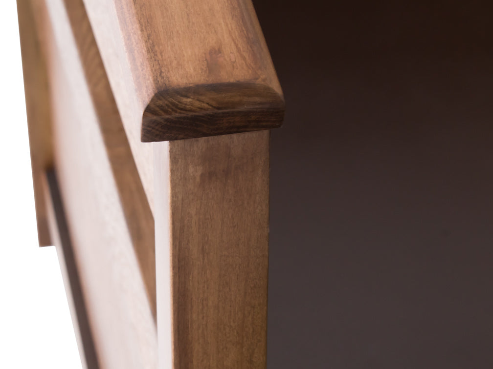 Los postes son de 5x 5; cuenta con un remate superior de 8 cm, y los 3 cajones son de 60 cm de profundidad.