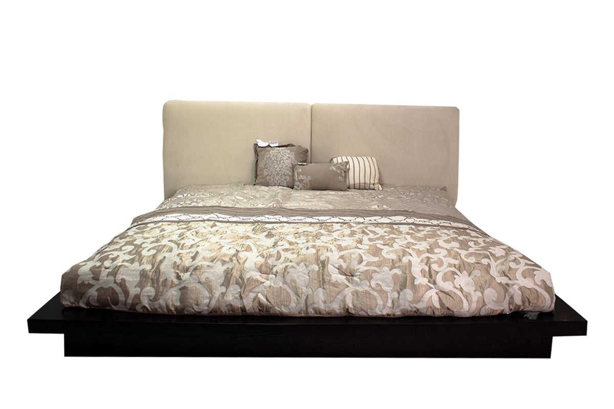 Cama Kontempo Glass K.S. Recamara con base y cabecera estilo clásico, su material de tapiz es terciopelo color ivory es suave al tacto de su piel, con una base fabricada de Nogal.