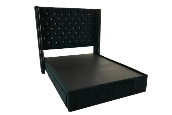 Su fabricación está hecha con madera de mdf, con tapiz de tela terciopelo en color negro.