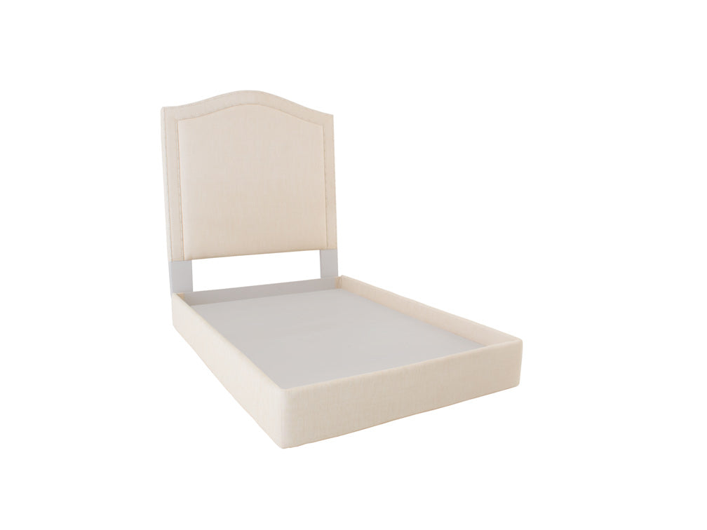 Esta Cama Kontempo ilustrada es de madera de mdf y tapiz de alcaparra en color crema.