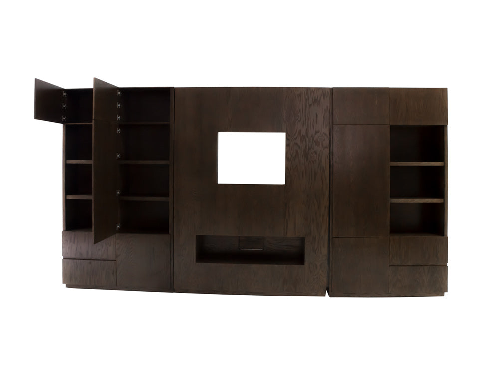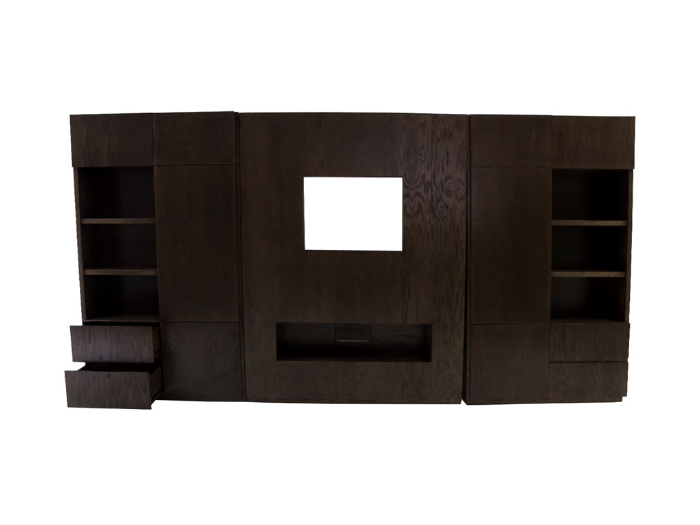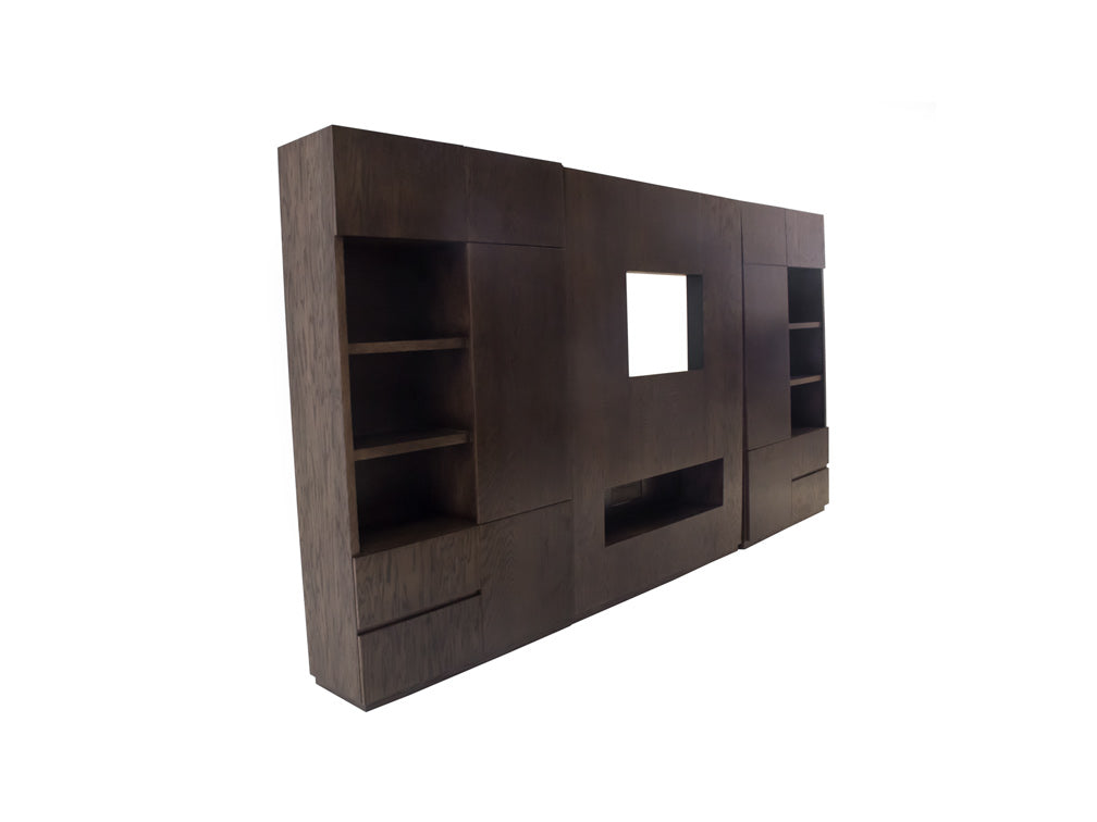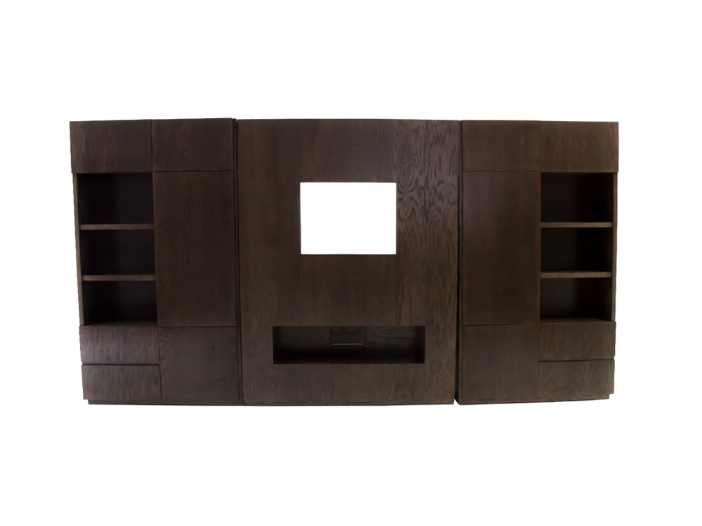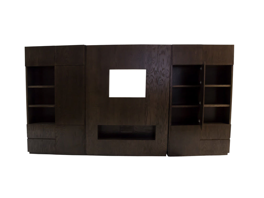 La estructura de este moderno centro de TV es fabricado en madera de encino, la cual es resistente y duradera.