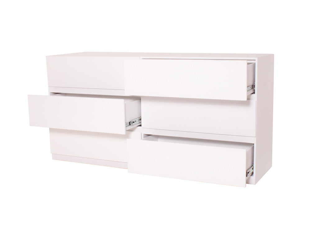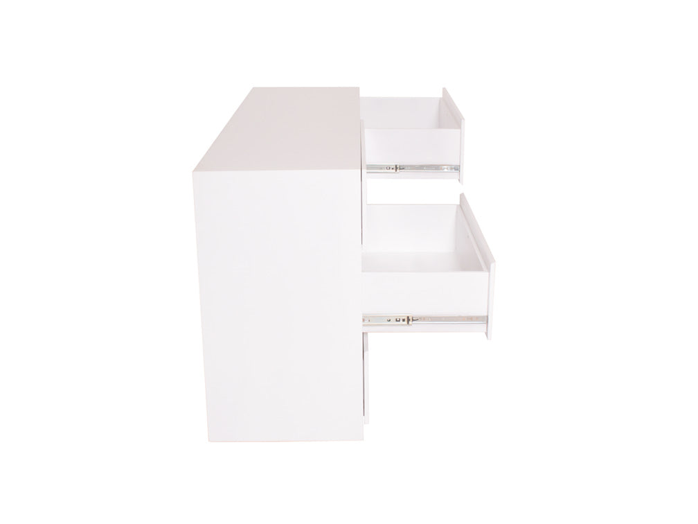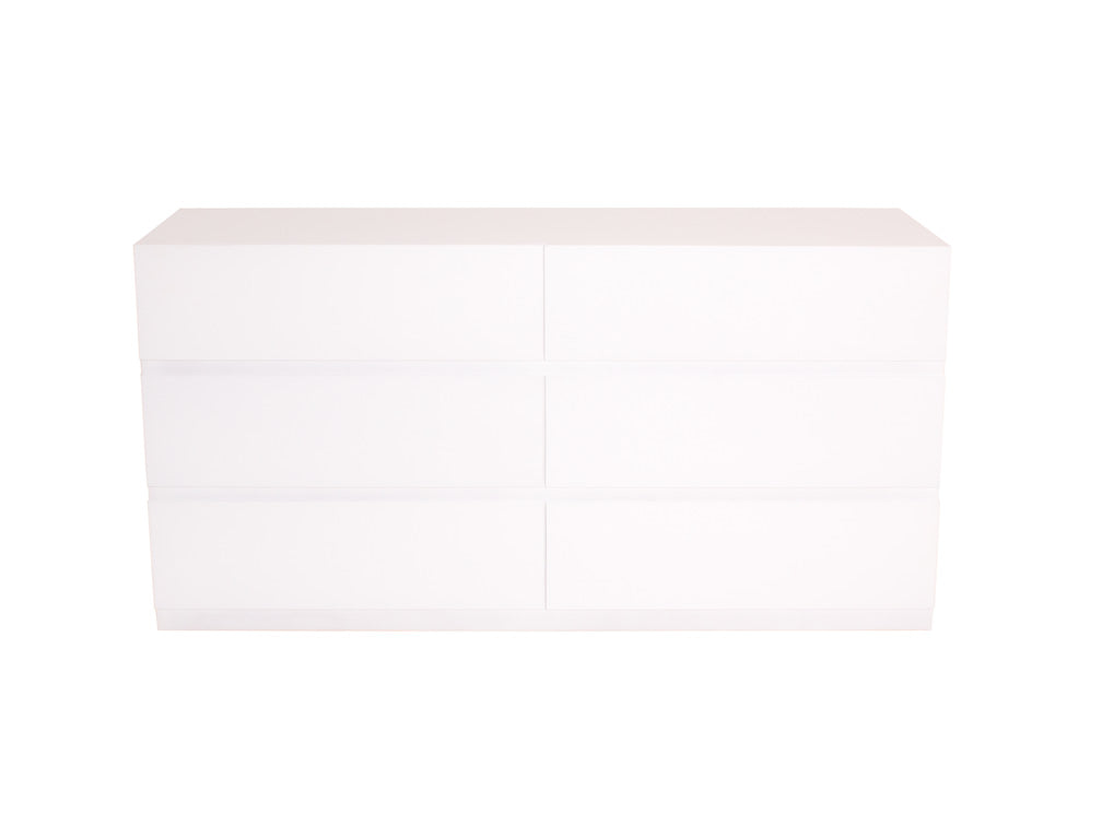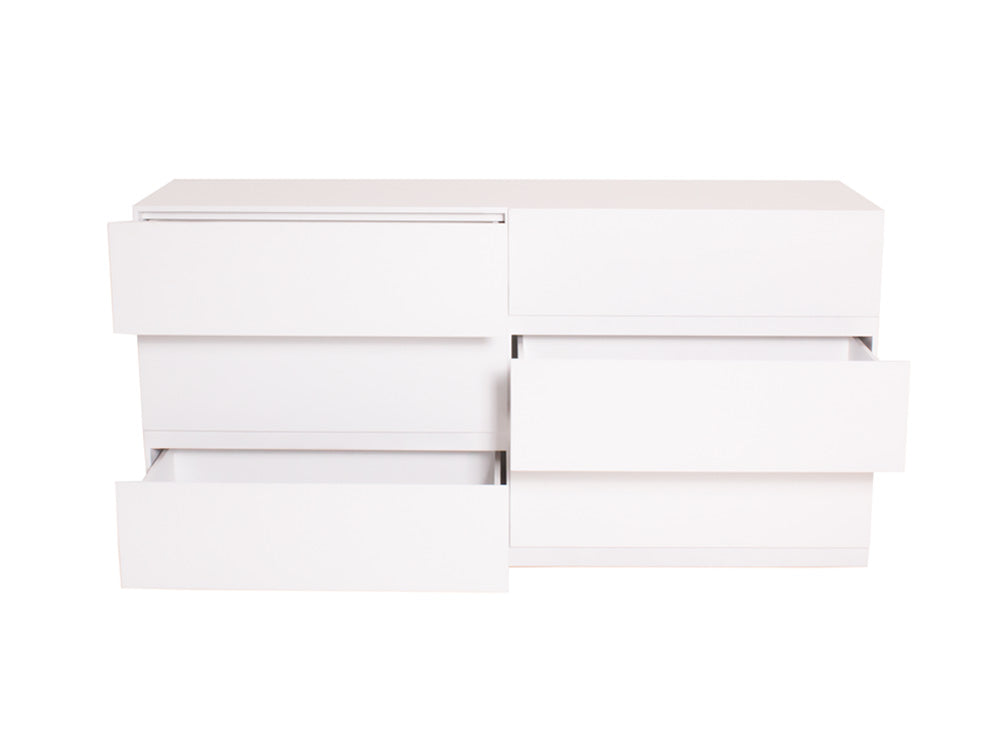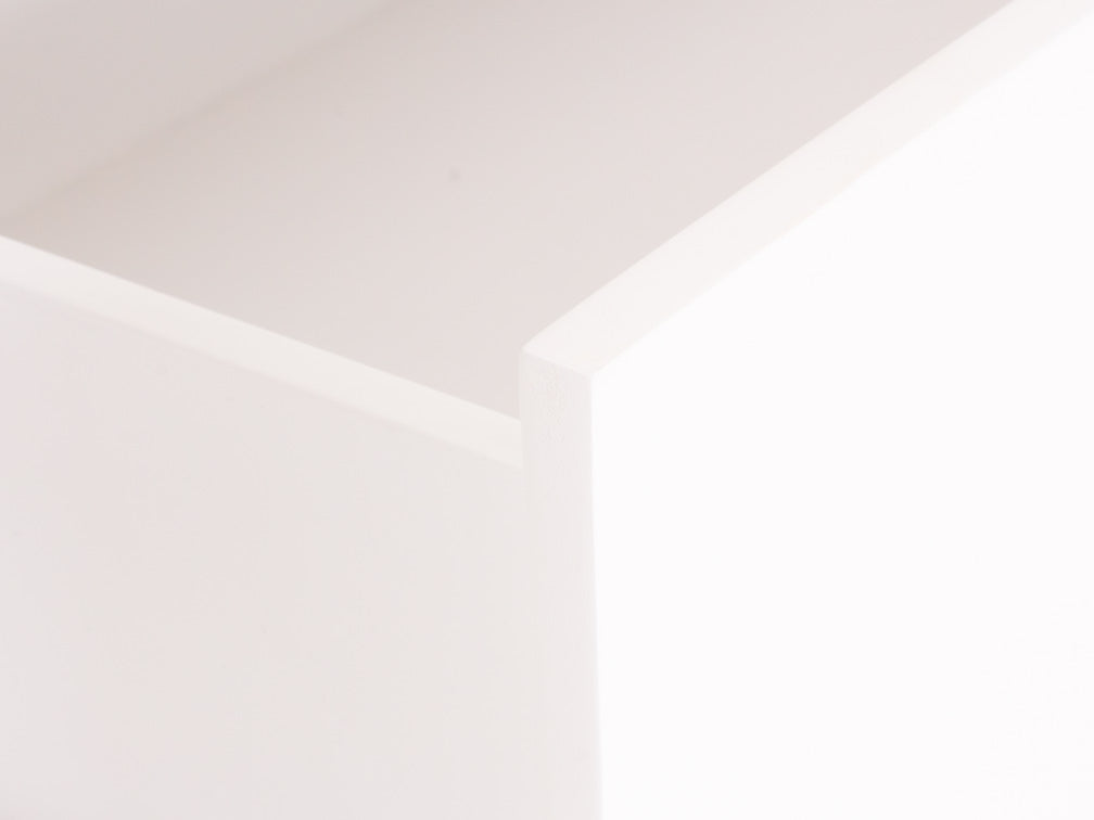 La Cómoda Minimalista kontempo Jaspe ilustrada es de madera de mdf con enchapado de encino en color blanco mate.