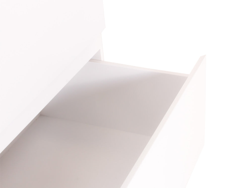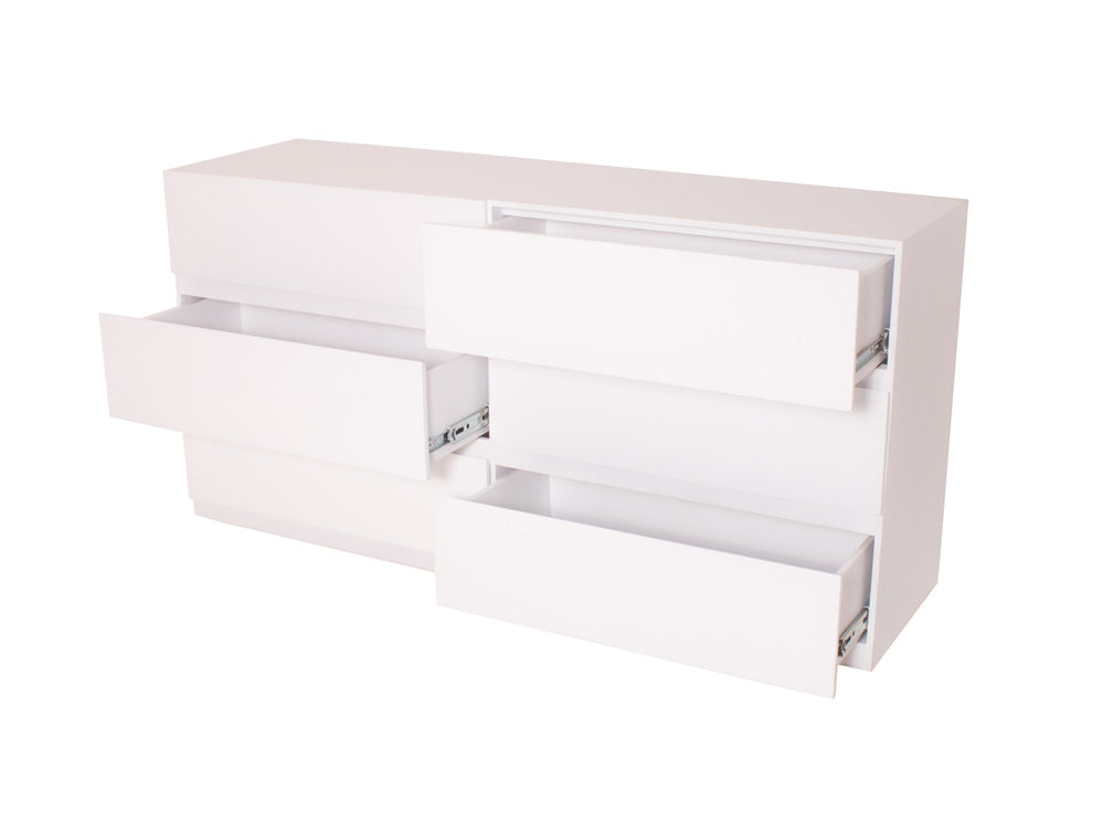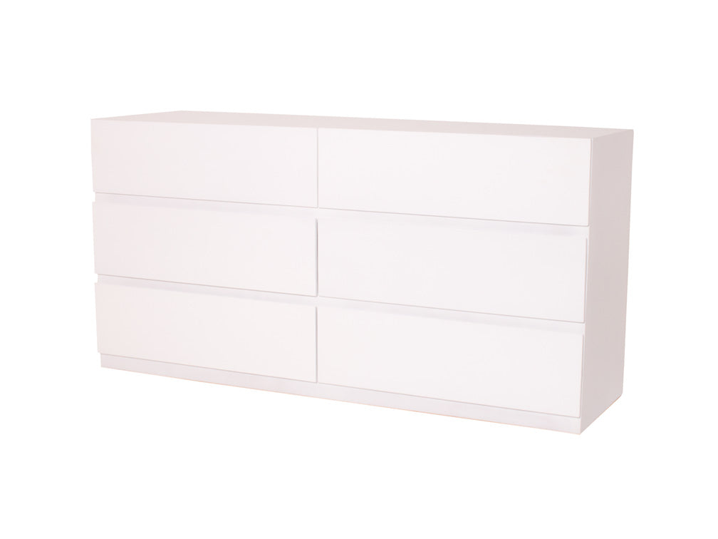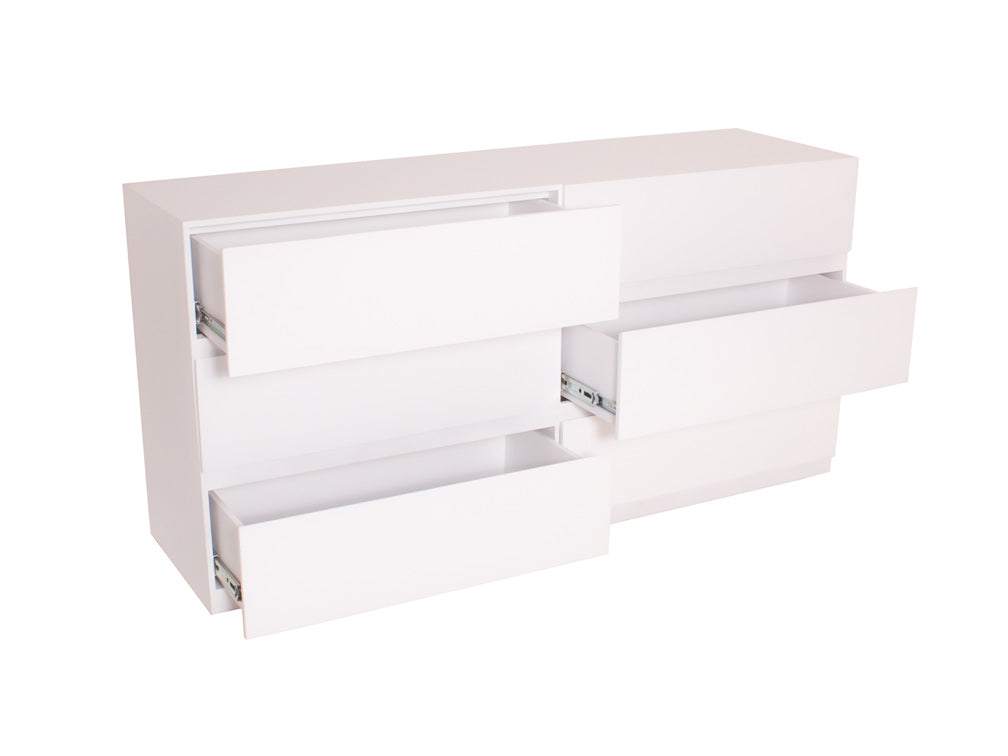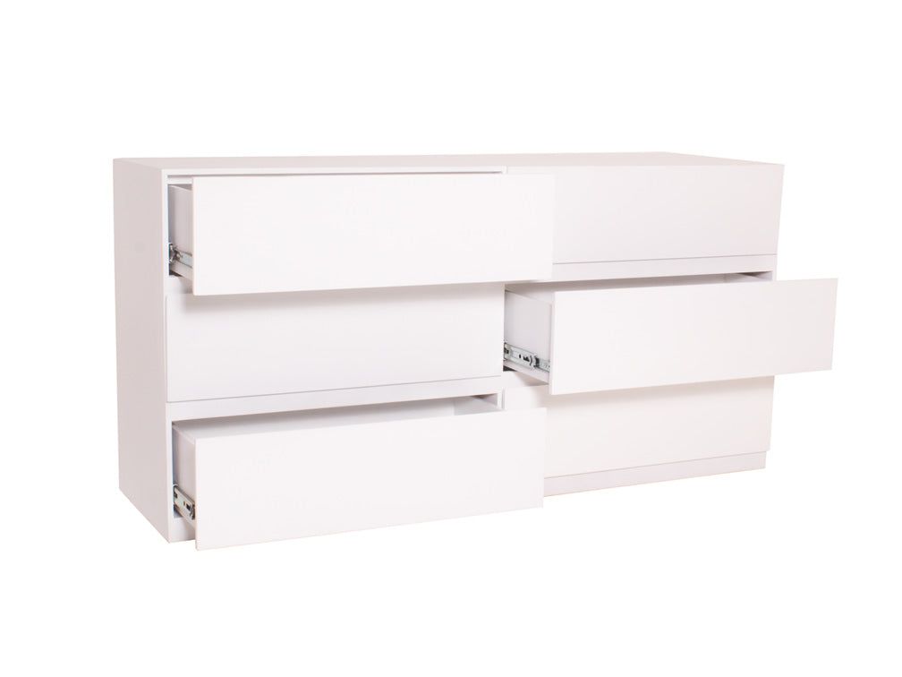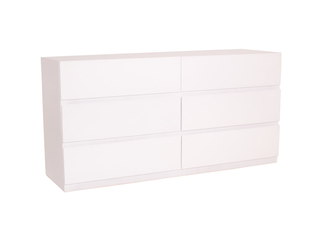 La Cómoda Minimalista kontempo Jaspe ilustrada es de madera de mdf con enchapado de encino en color blanco mate.
