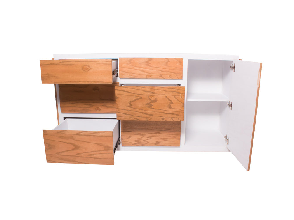 Así mismo, podrá modificar las medidas, color, material y acabado de esta cómoda moderna para darle su estilo personal y adecuarla a sus necesidades.