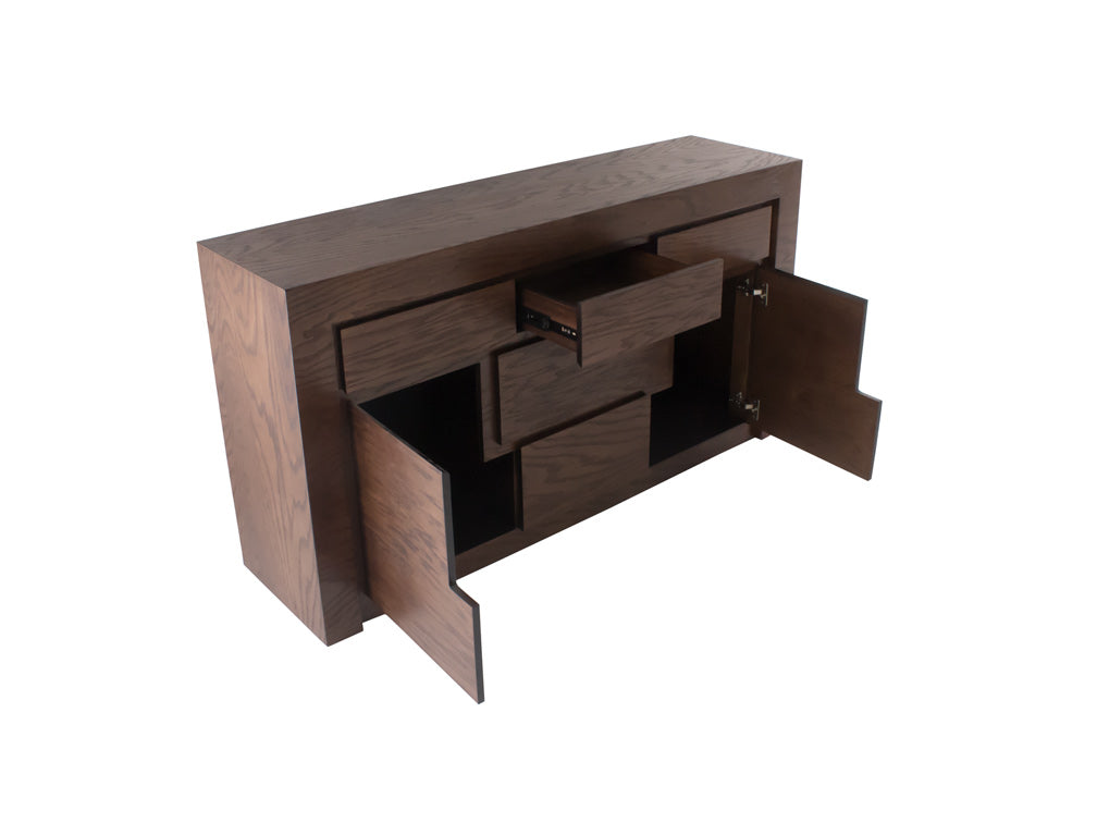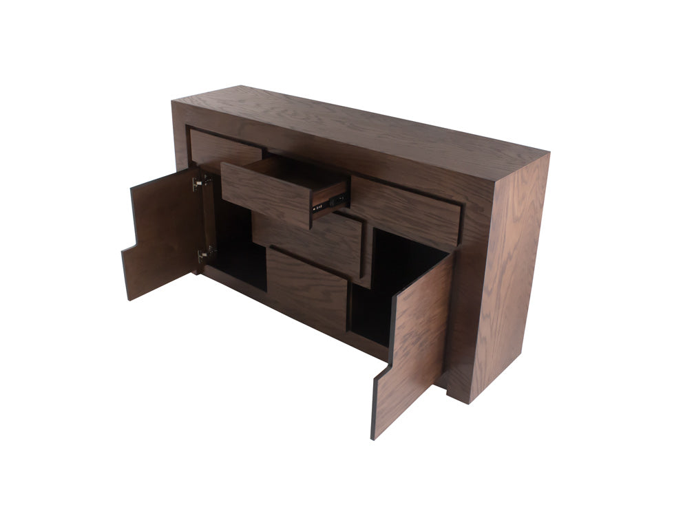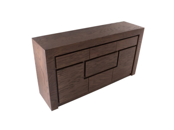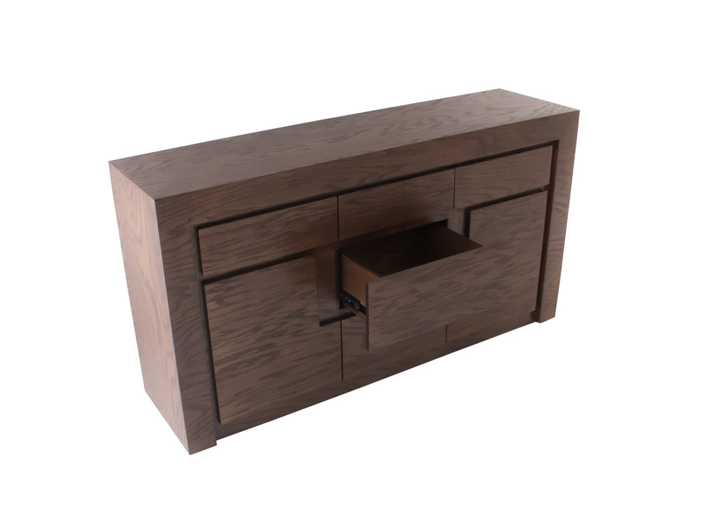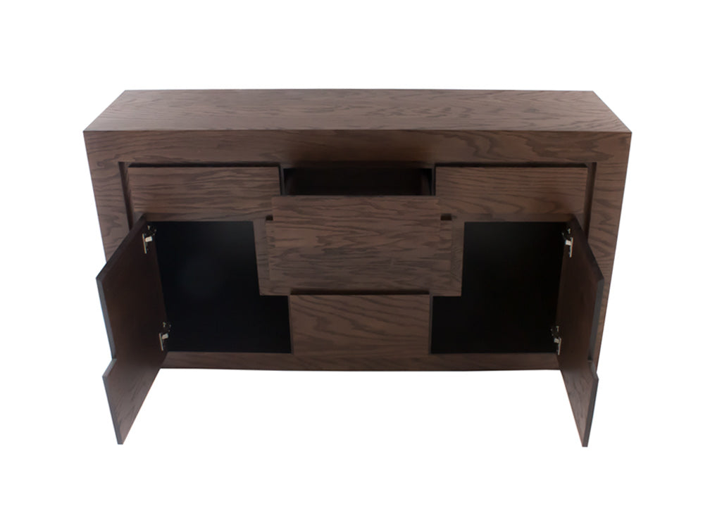 Y en los laterales inferiores tiene dos puertas para objetos más voluminosos. Además que los cajones cuentan con corredera de extensión.