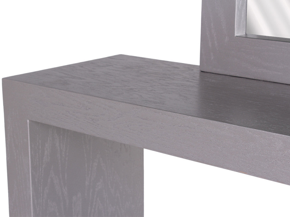 Podrá encontrar disponible esta moderna consola en un neutro color gris claro, que será muy fácil de combinar con su decoración.