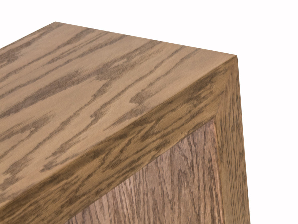 Esta consola elegante ilustrada Kontempo LC -71 está fabricada en madera de mdf con enchapado de encino en color miel.