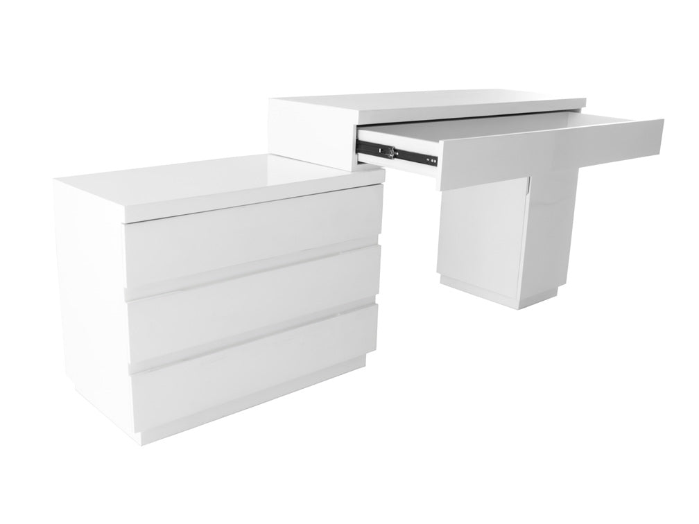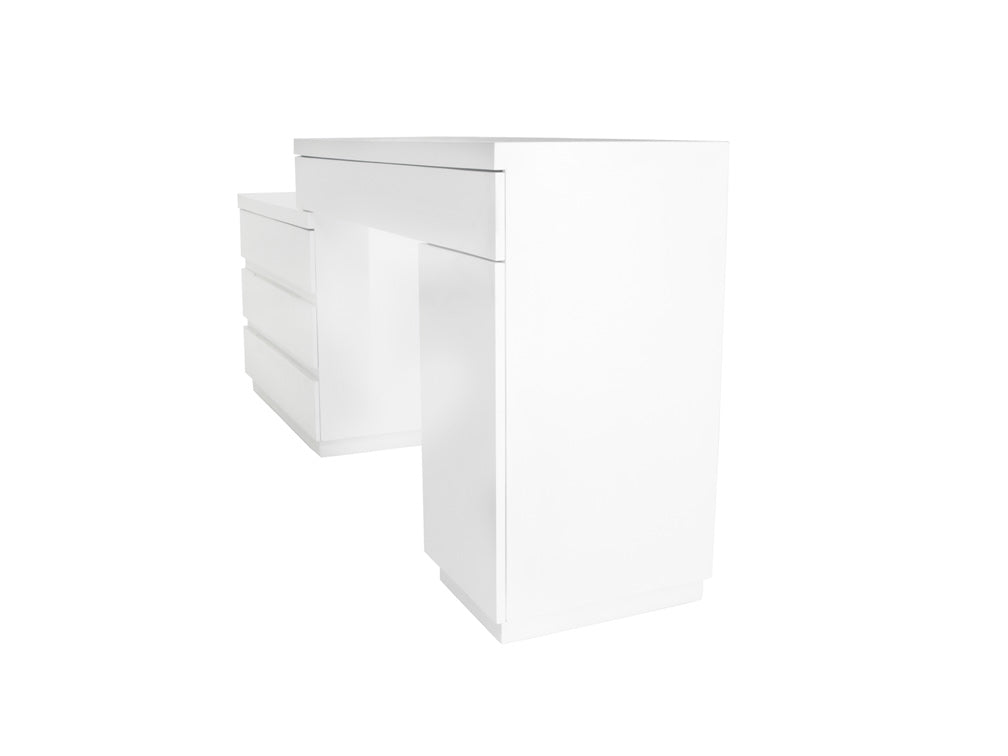 En el lateral izquierdo tiene tres amplios cajones donde podrá almacenar sus objetos personales. Y ya que no tienen jaladeras, les da un estilo más moderno.