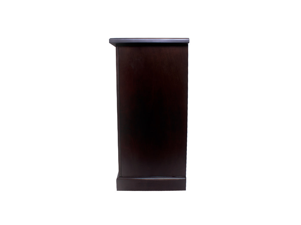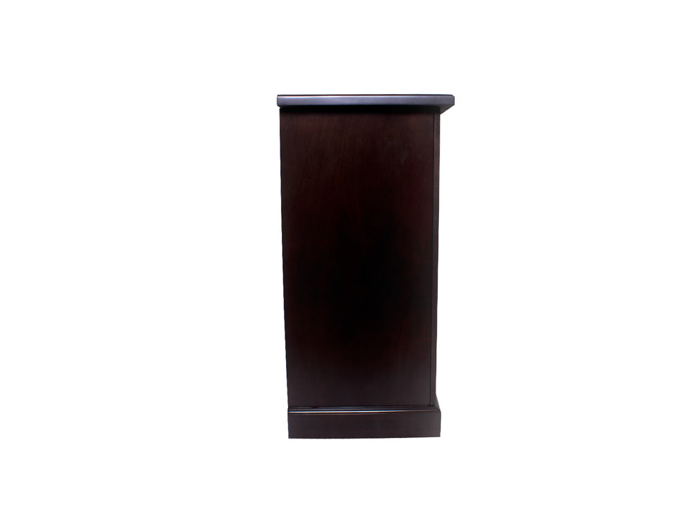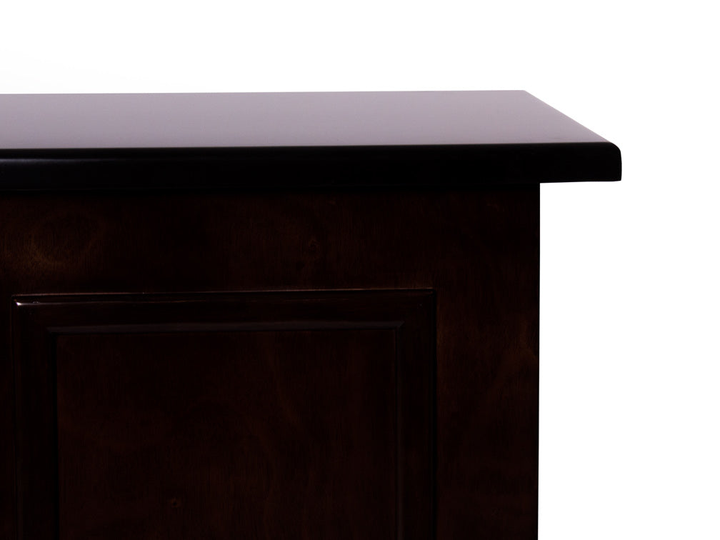 La Credenza Clásica Kontempo Yeshad ilustrada es de madera de okume en color nogal obscuro.