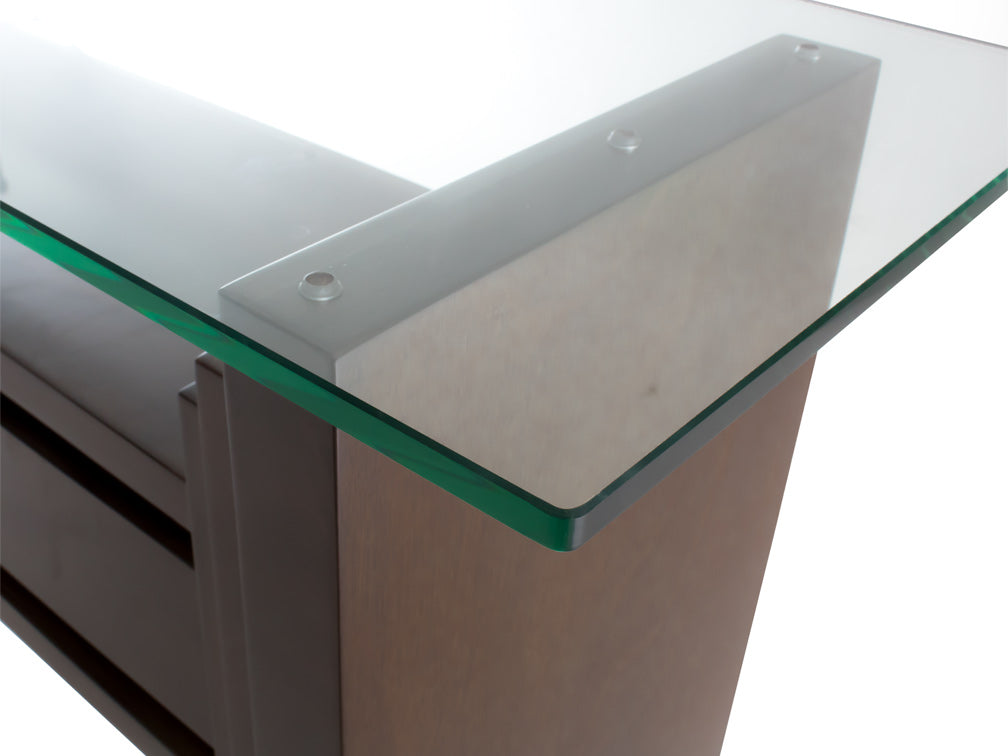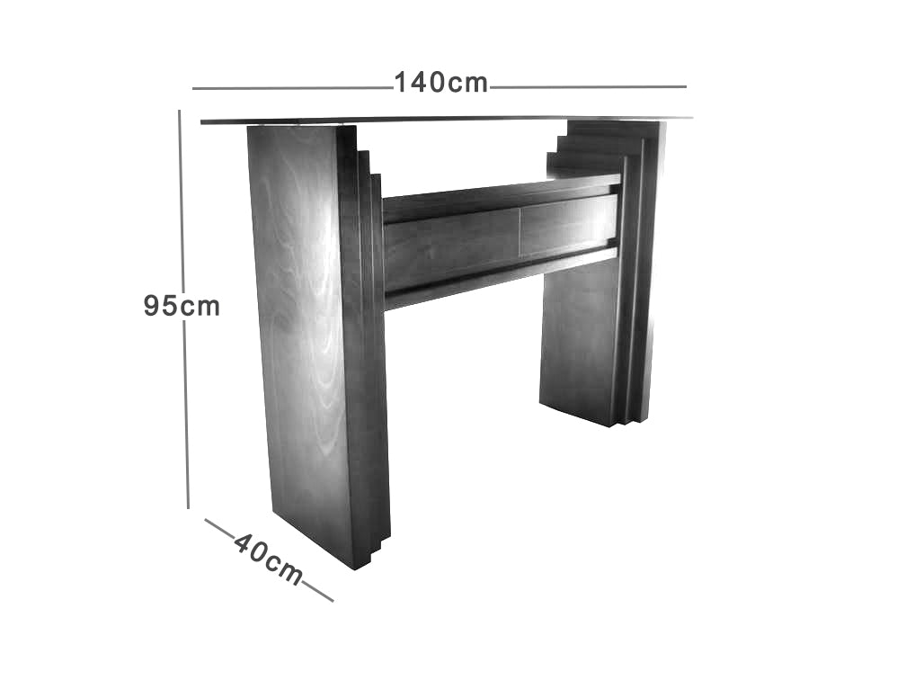 Esta elegante consola Kontempo Jazmín tiene unas medidas de 140cm x 40cm x 95cm de altura con cristal de 12mm.