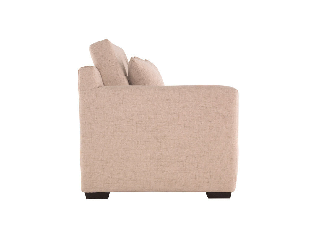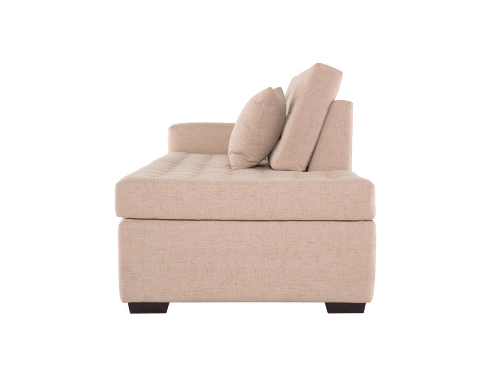 El Diván para Sala Kontempo Belisa ilustrado es de madera de poplar en color nogal y tapiz en color beige.