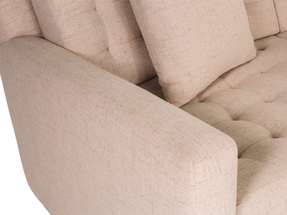 También tiene un diseño capitoneado que lo hace más vistoso y que contrasta con lo liso de la base y los cojines.