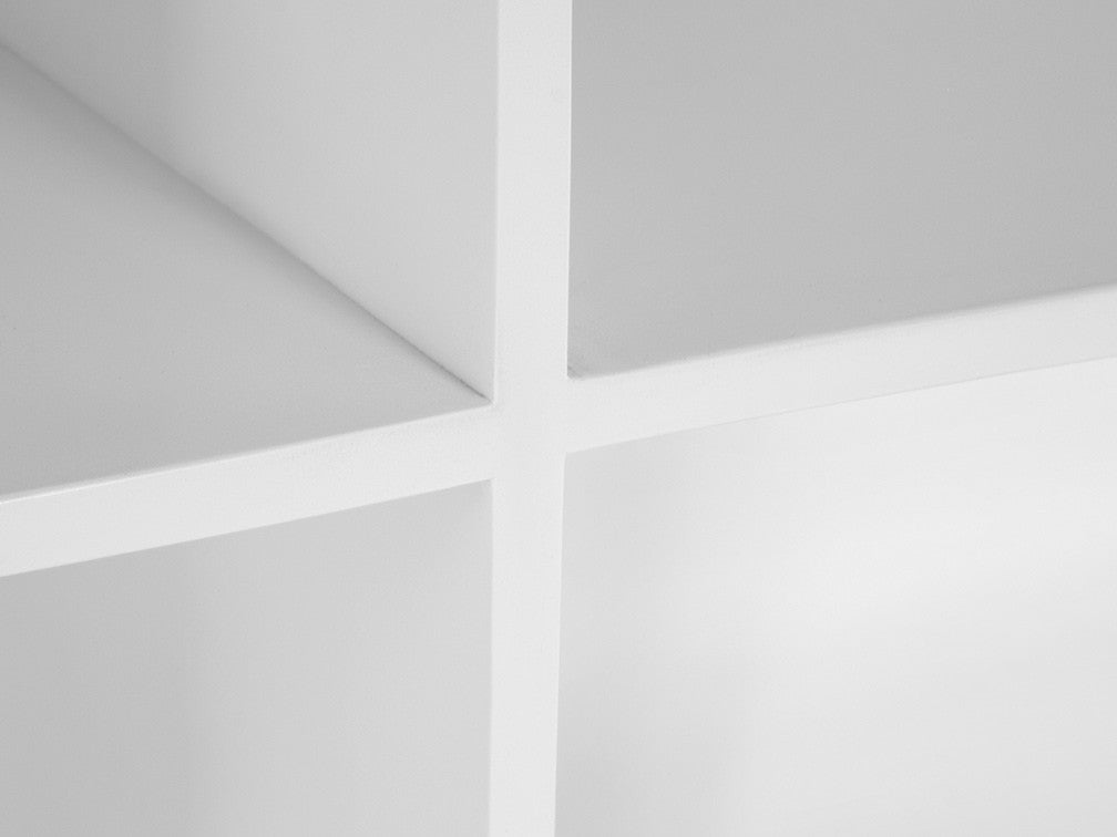 Tiene tres entrepaños en horizontal y cuatro en vertical, lo que lo hace práctico para acomodar sus objetos y ser creativo con el orden.