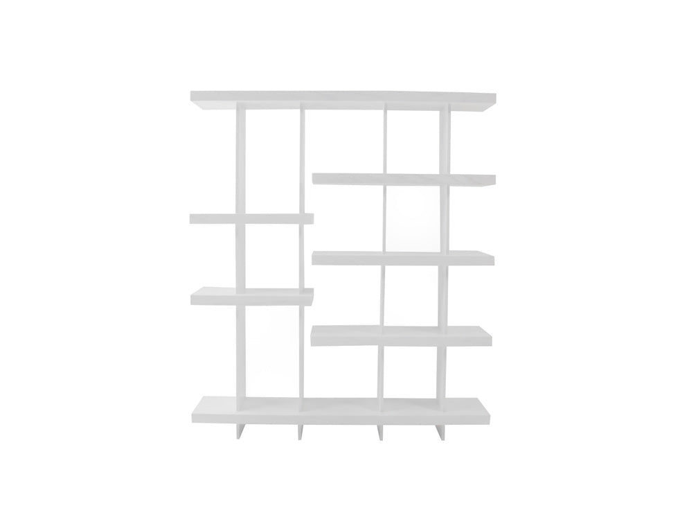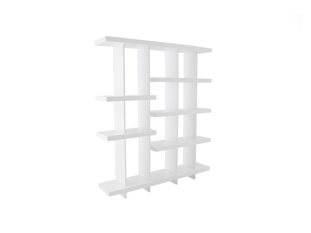Este moderno librero está fabricado con 4 paredes verticales y 7 entrepaños en donde podrá colocar sus libros u objetos decorativos.