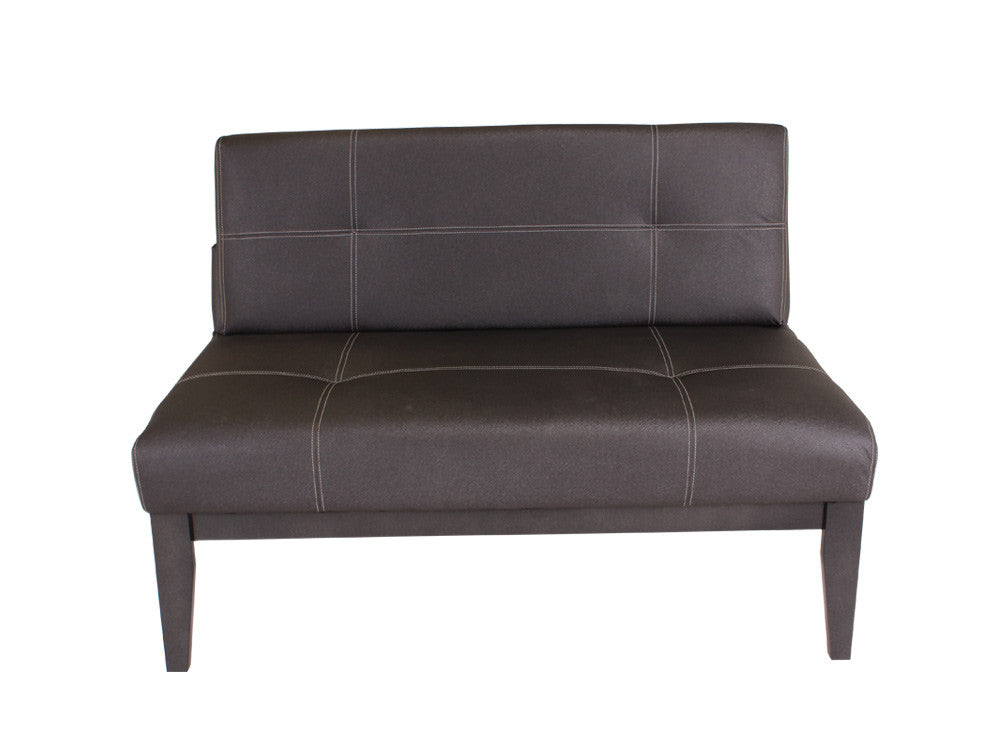 El Love Seat Kontempo Foruli es de madera de poplar y tapiz de tacto piel en color chocolate con detalles en color blanco.