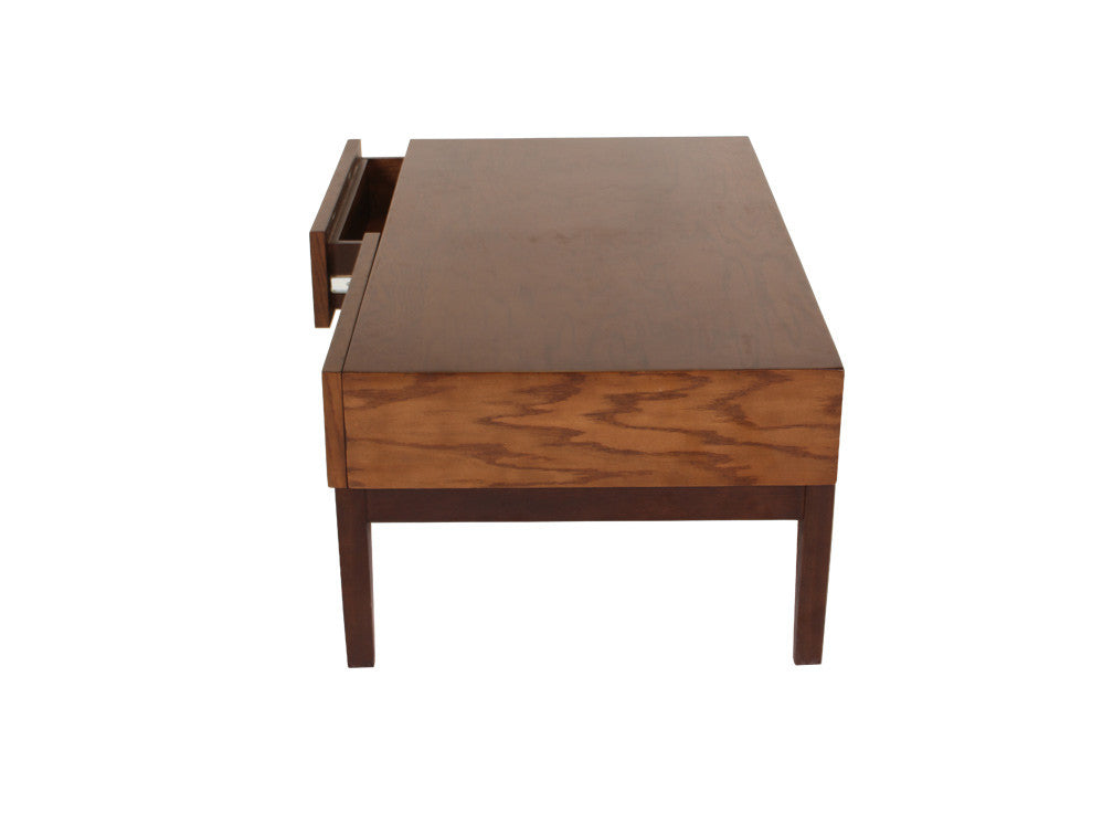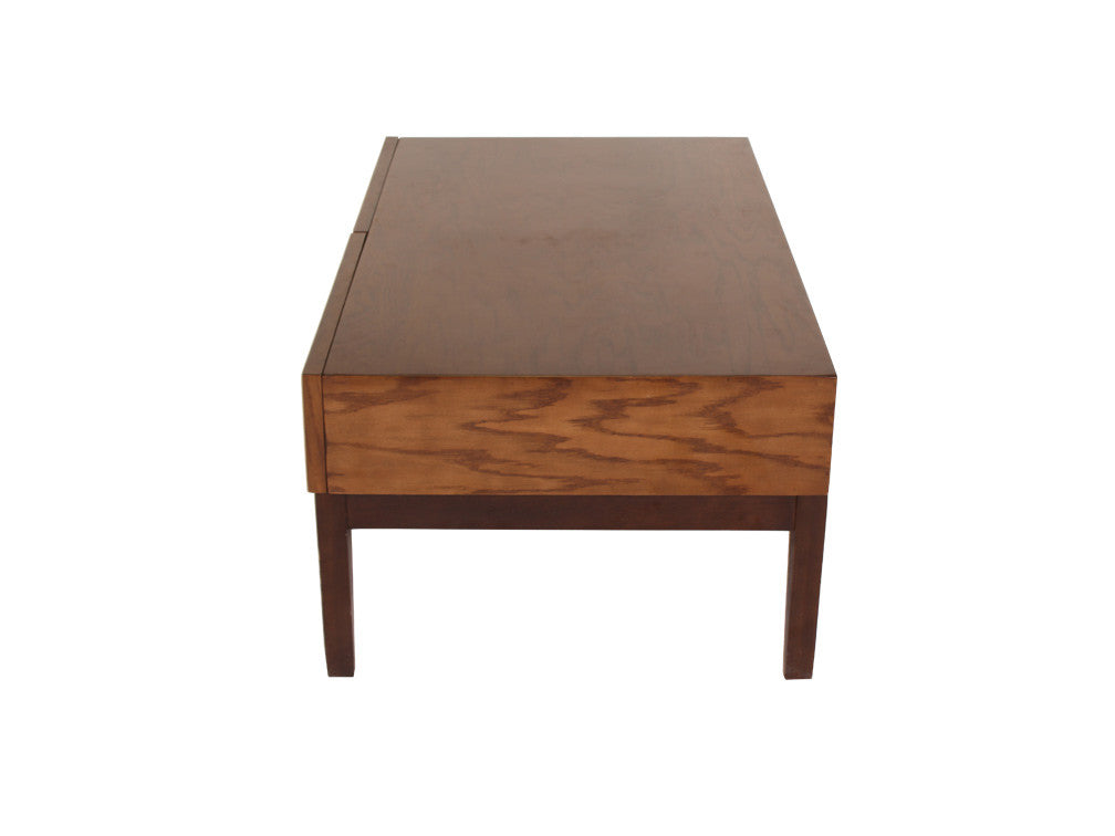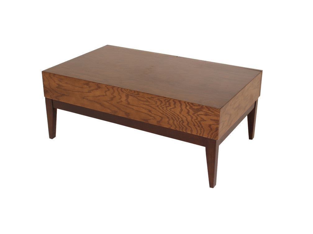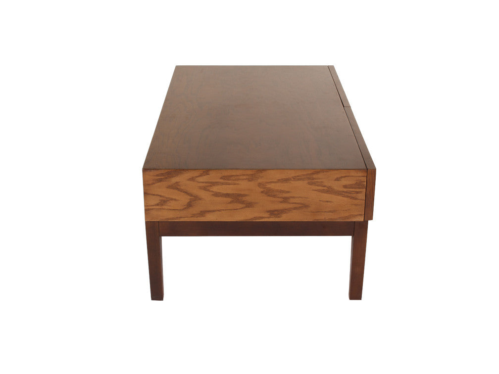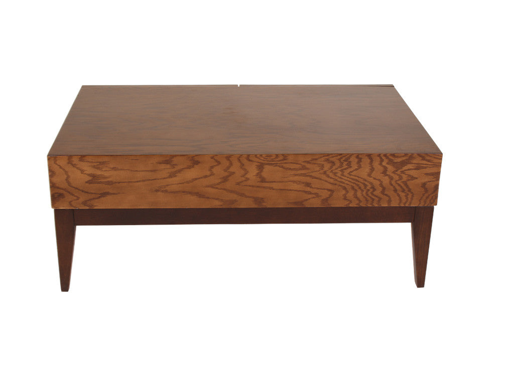 Mesa de centro moderna con diseño de relieve en poliuretano. Fabricada en MDF con enchapado de encino y madera poplar.