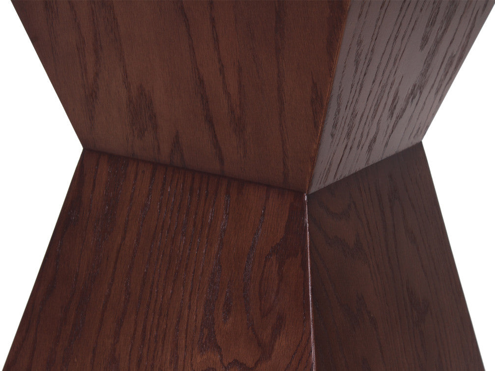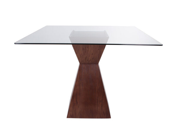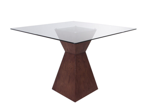 La Mesa de Comedor Kontempo Trapeze Cuadrada es de madera de mdf con enchapado de encino en color nogal, y cubierta de cristal 9mm.