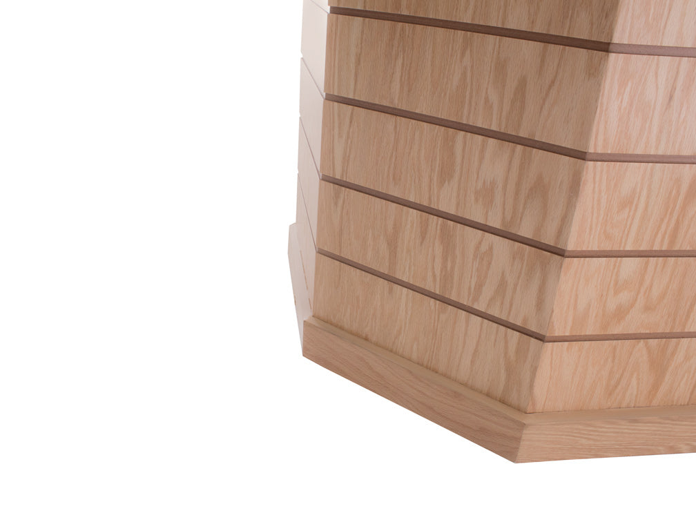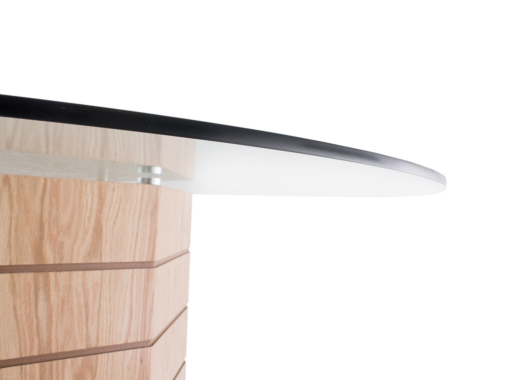 Su cubierta es de cristal de 12 mm y la base es de madera de encino, es resistente y duradera.