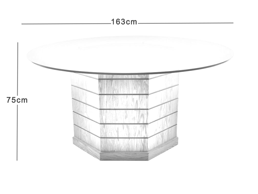 La elegante mesa de comedor Kontempo Faraday tiene unas medidas de 163 cm de diámetro x 75 cm de alto.