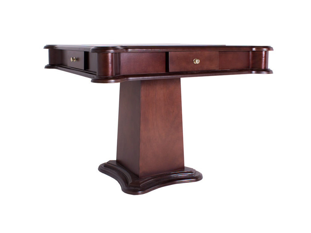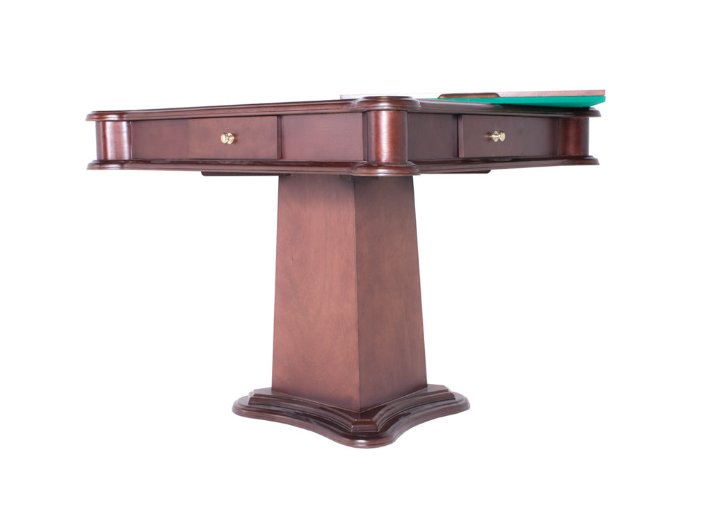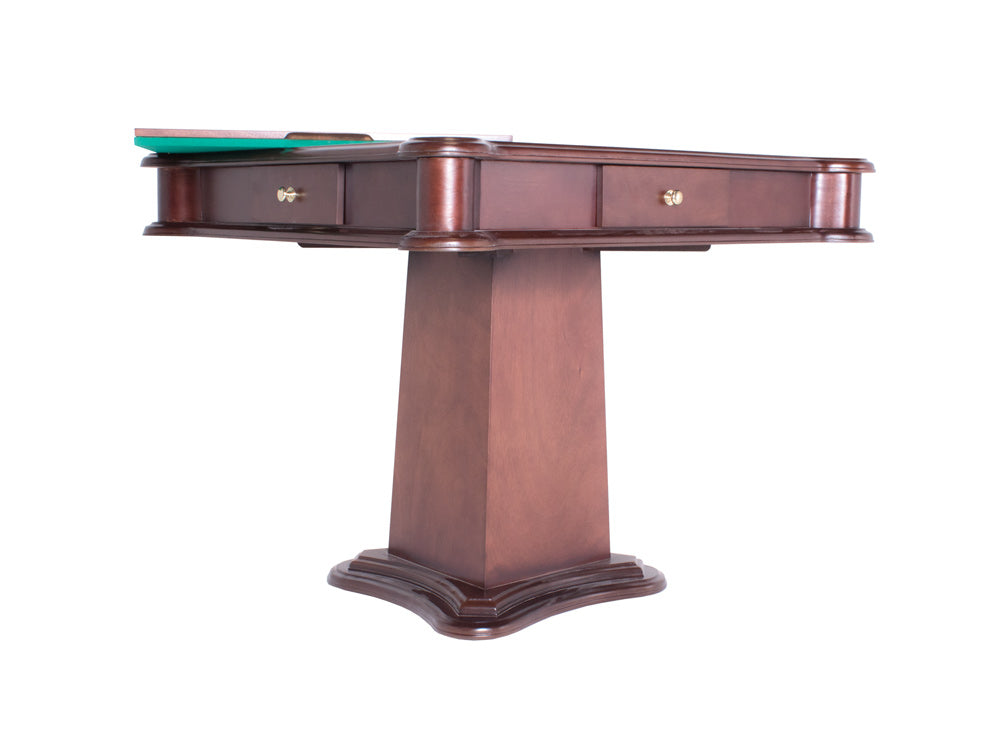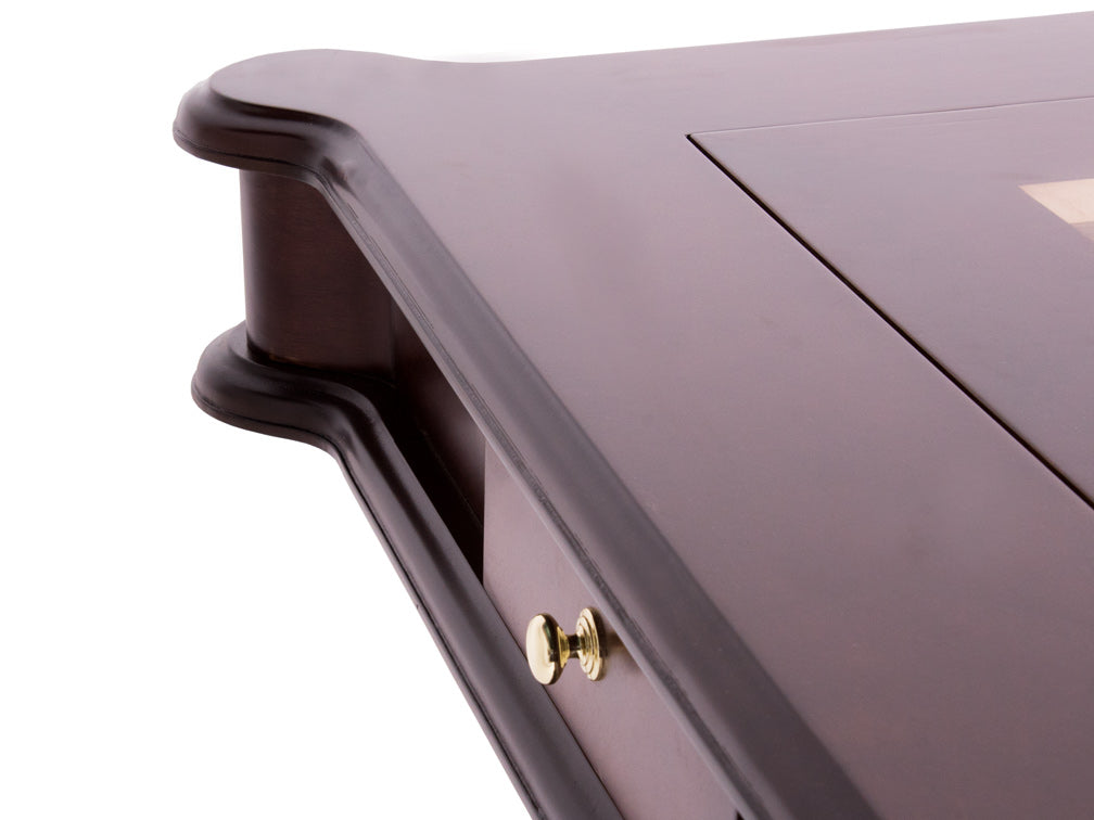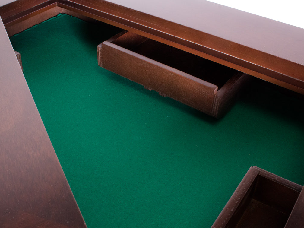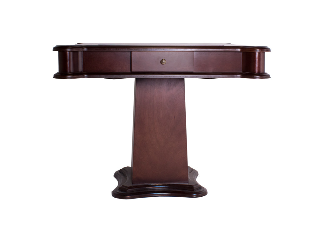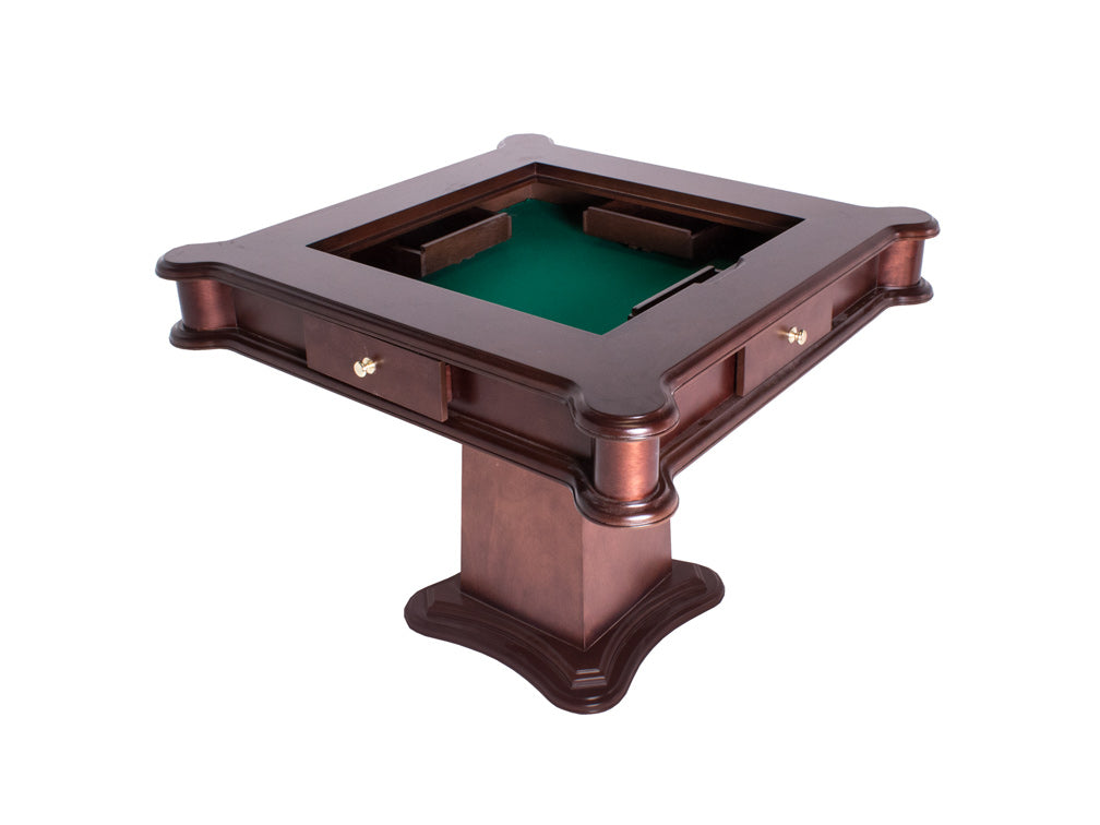 Mesa de juego de ajedrez rematada en las esquinas.Fabricada en MDF chapa encino o caoba color nogal.También se puede fabricar en el color a elegir.Cuenta con paño verde en el centro y archivo.Así como también cuenta con una tapa que cubre la parte central y es reversible.Cuenta con unas medidas de 98 centímetros de largo, por 98 centímetros de ancho y 78 centímetros de altura.