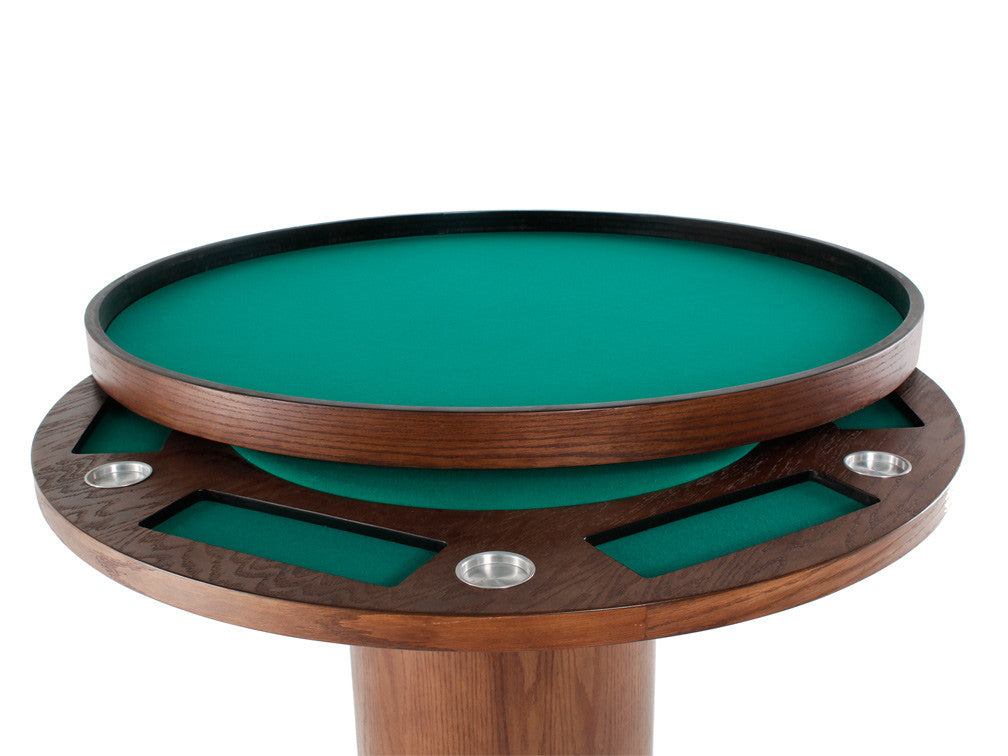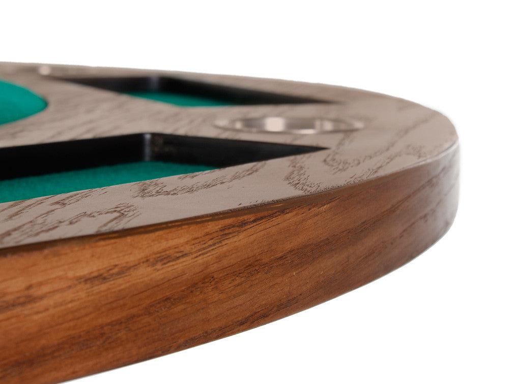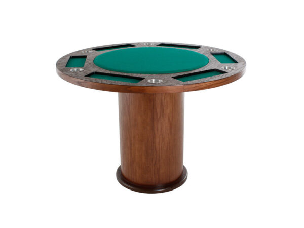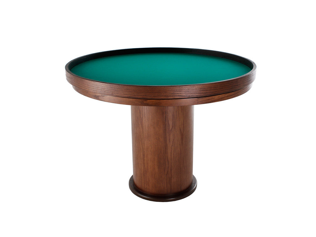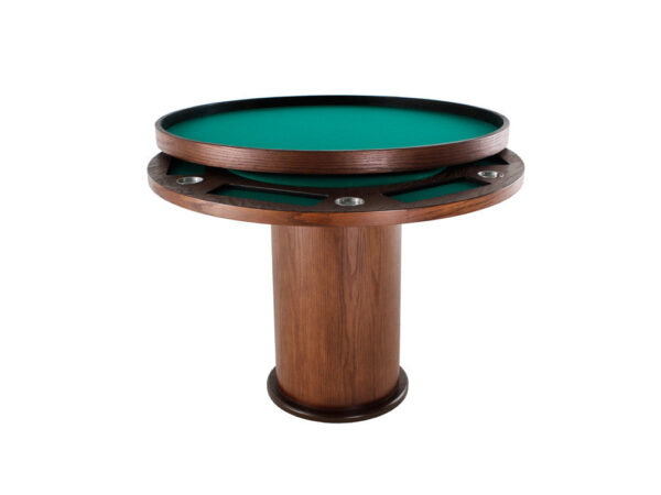 La estructura de esta elegante mesa de juego redonda está fabricada en madera de mdf, el cual puede ser liso o con enchapado de encino.