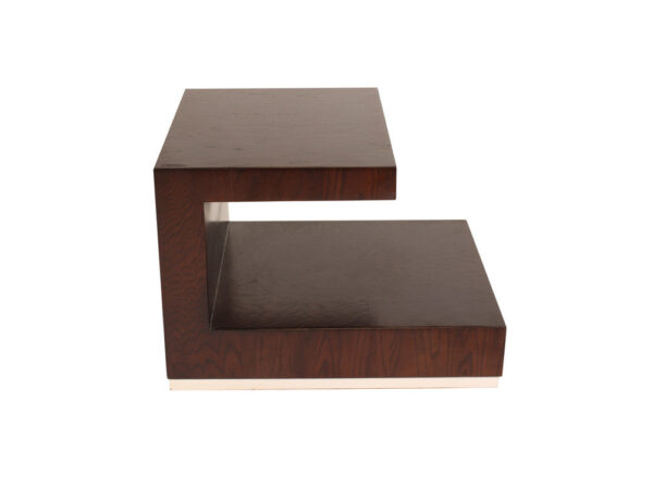 La Mesa Lateral De Madera Kontempo LC-25 tiene un estilo moderno por su diseño de grapa, que además de ser más llamativa, también es práctica.