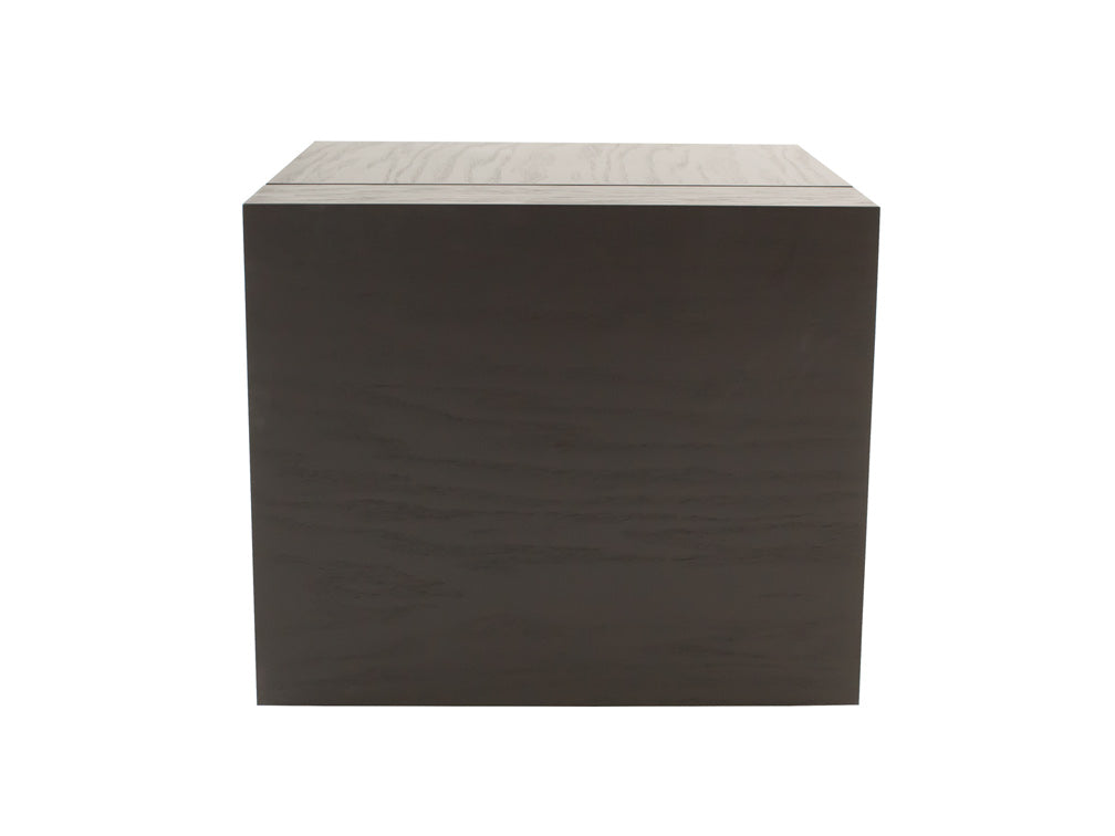 Esta mesa lateral cuadrada Kontempo Royal ilustrada es de madera de mdf con enchapado de encino en color gris.