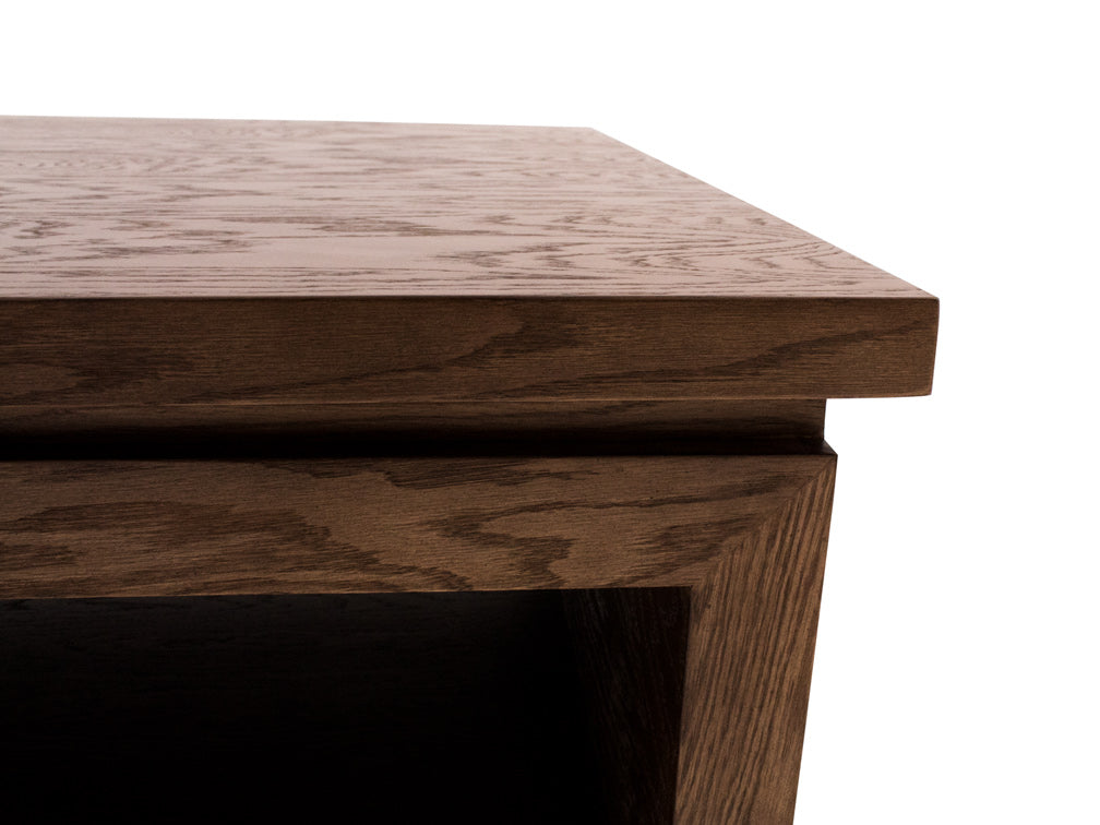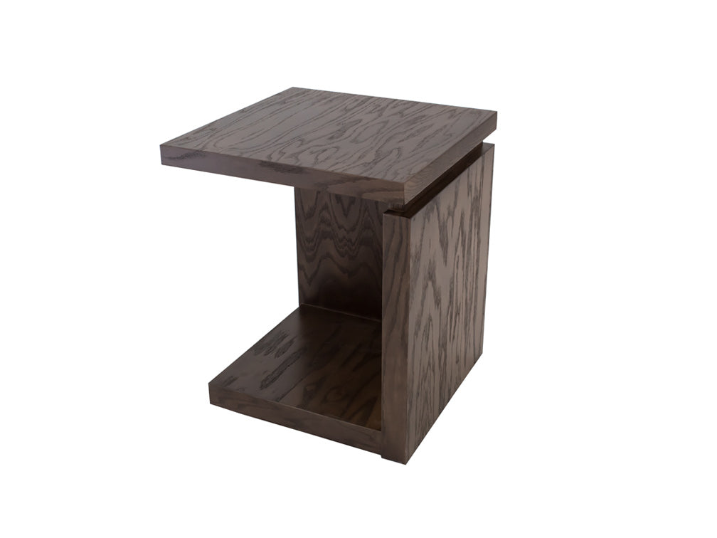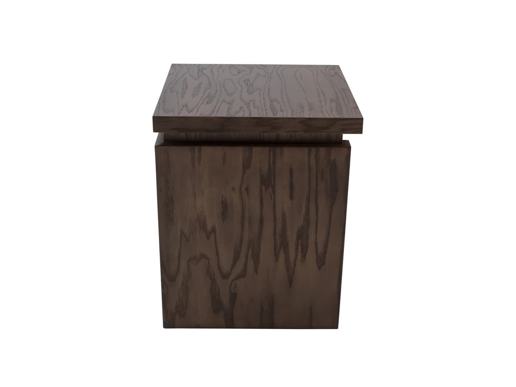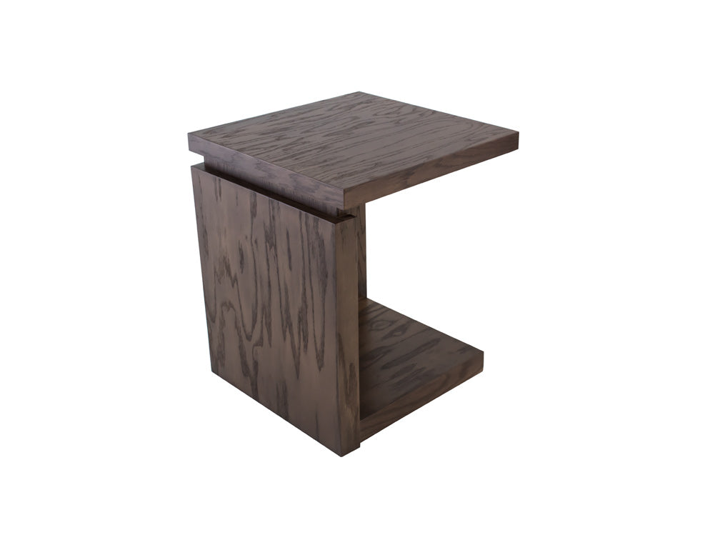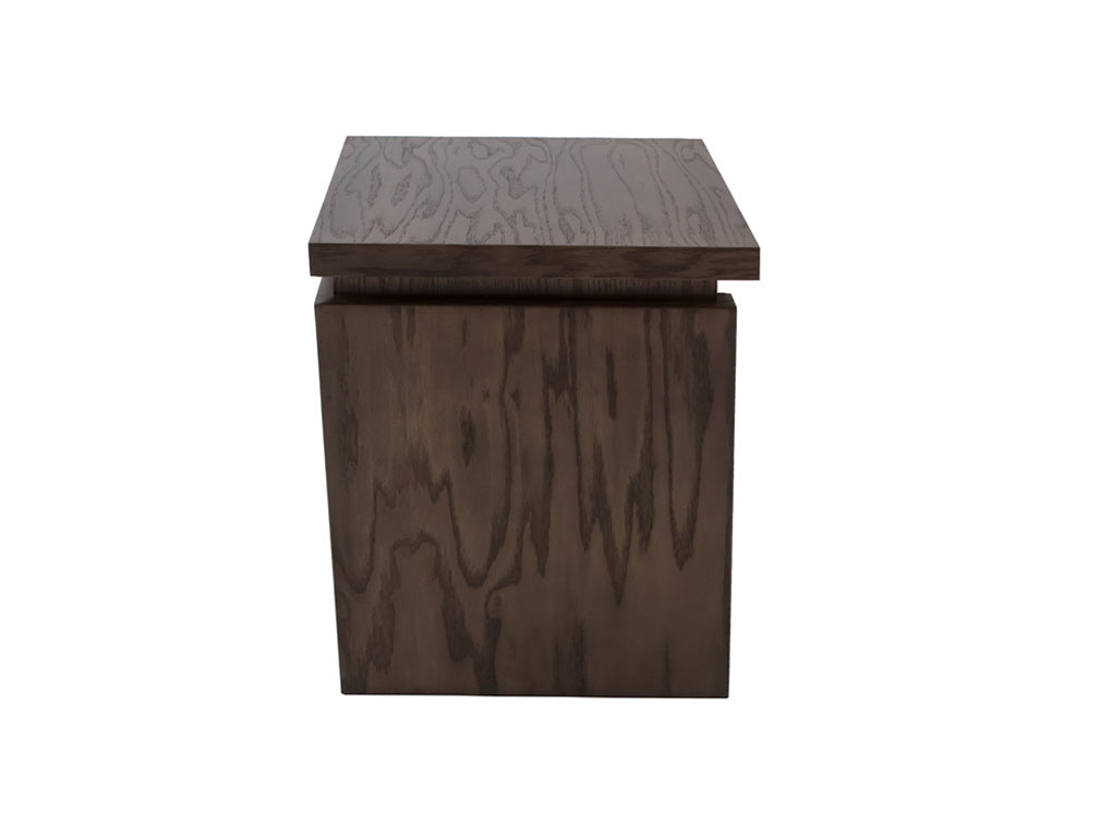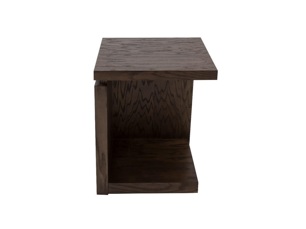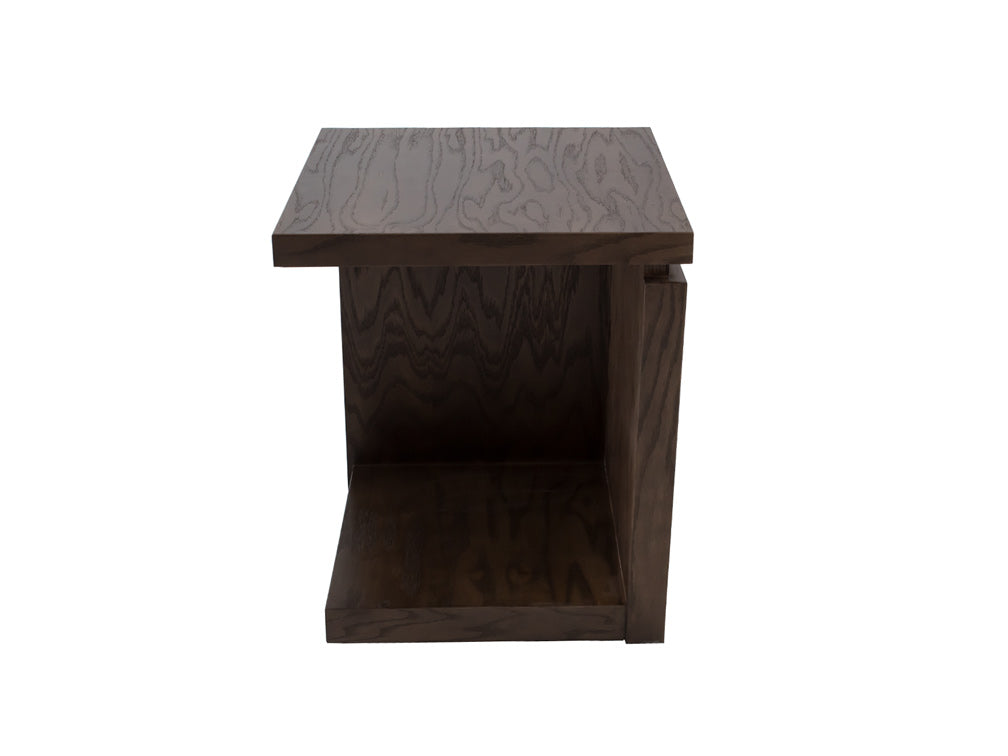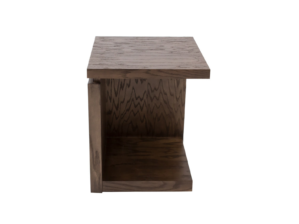 Esta mesa lateral ilustrada Kontempo Sora es de madera de mdf con enchapado de encino en color nogal claro.