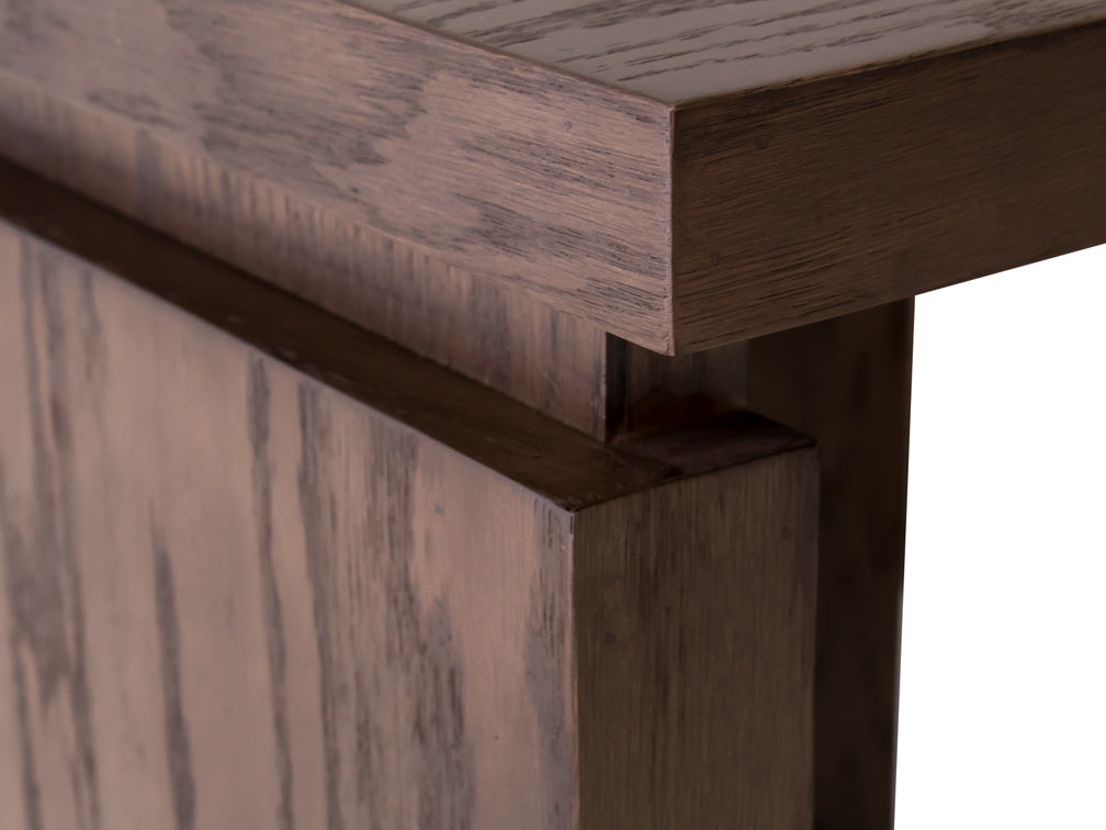 La forma de esta mesa única, pues en la cubierta tiene un resaque que le da un estilo diferente. Y en la parte frontal tiene un espacio abierto que también puede ser funcional.