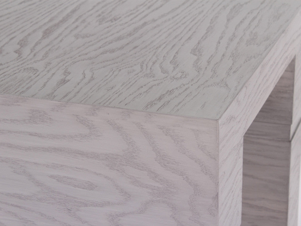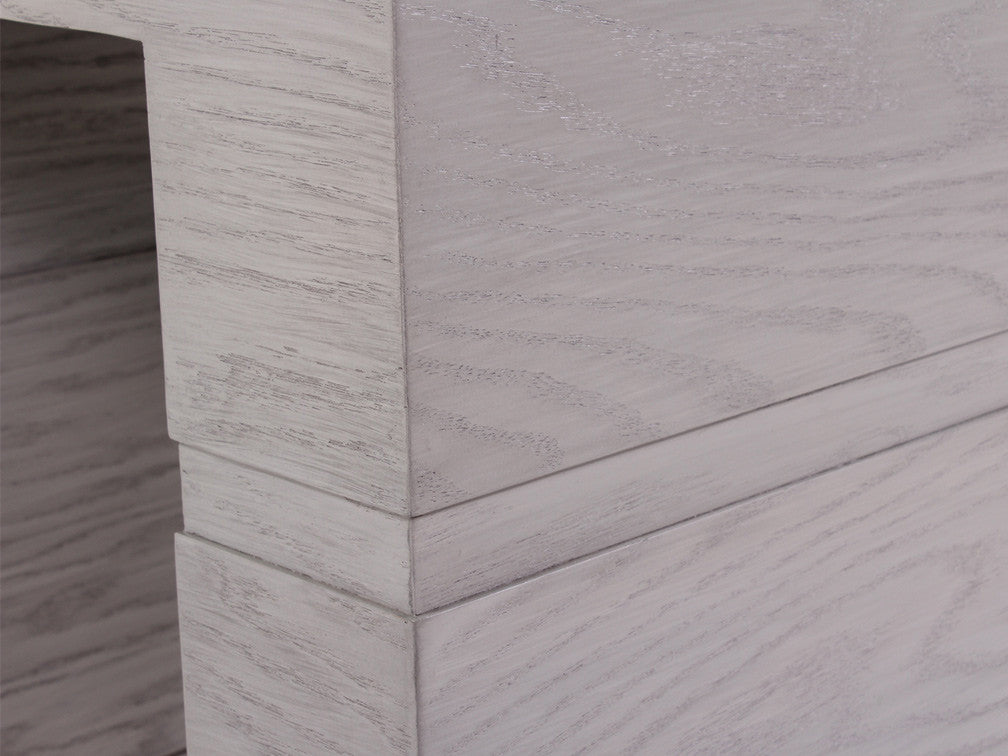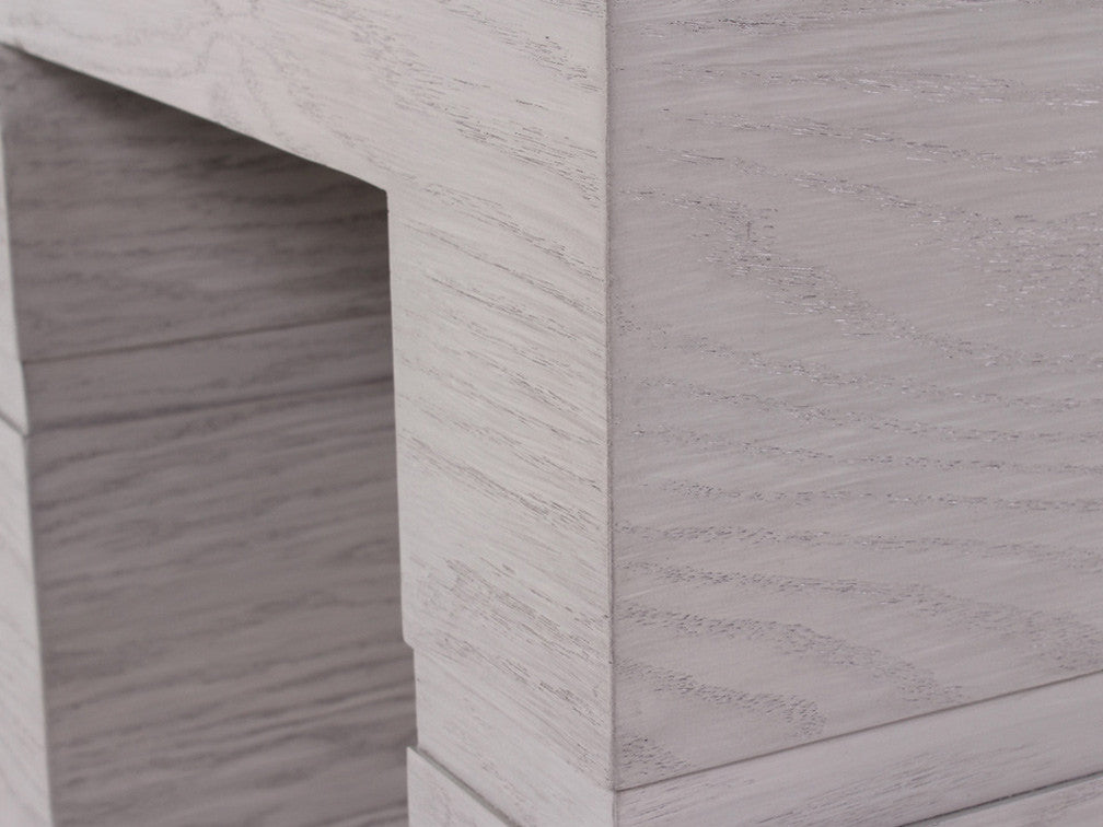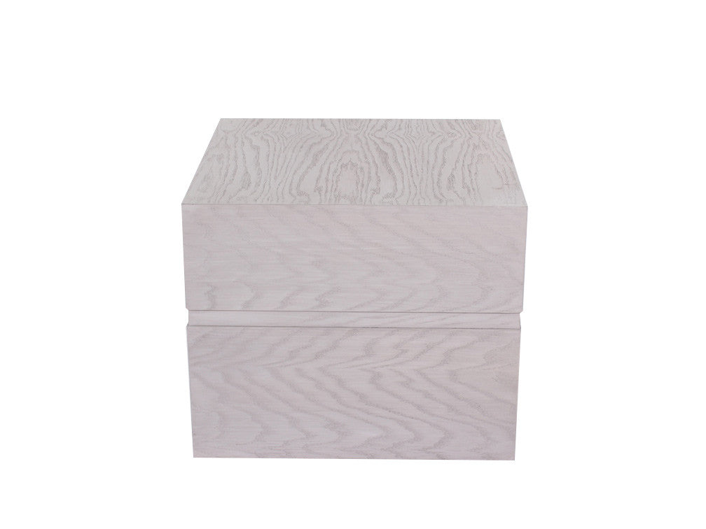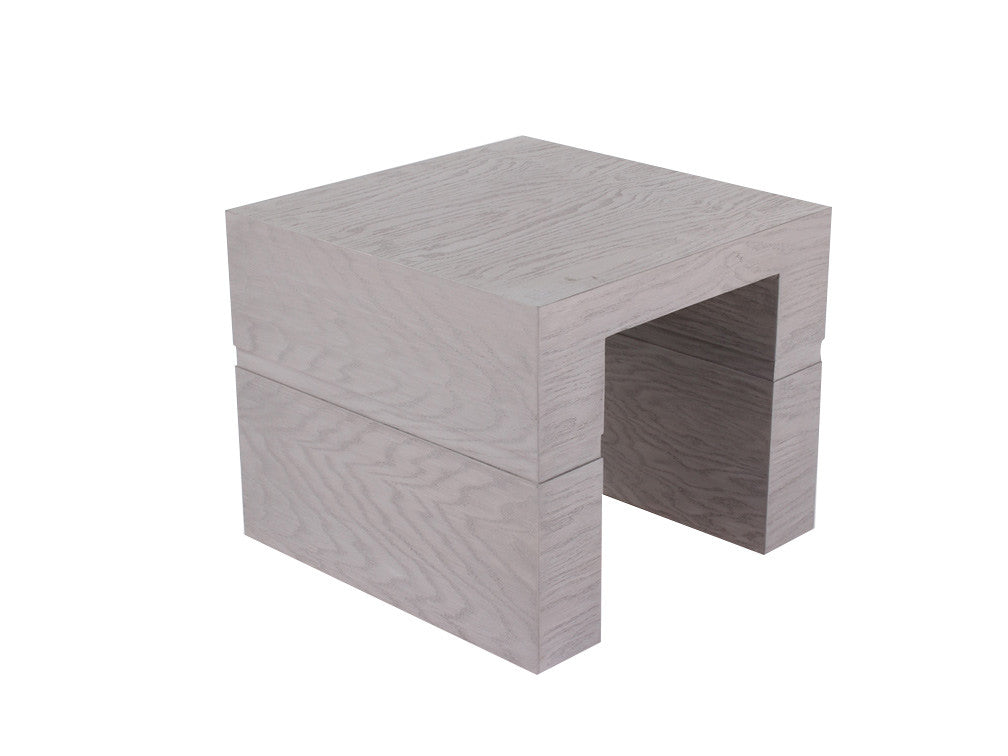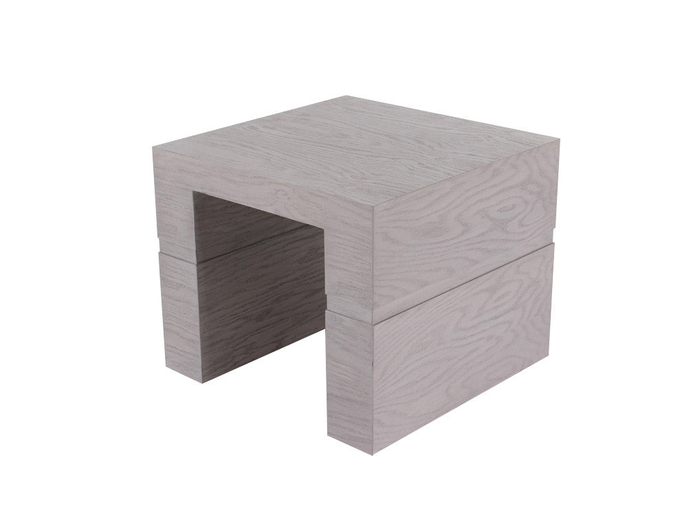 La Mesa Lateral Minimalista Kontempo LC 66 es de madera de mdf con enchapado de encino en color gris.